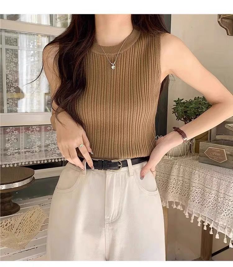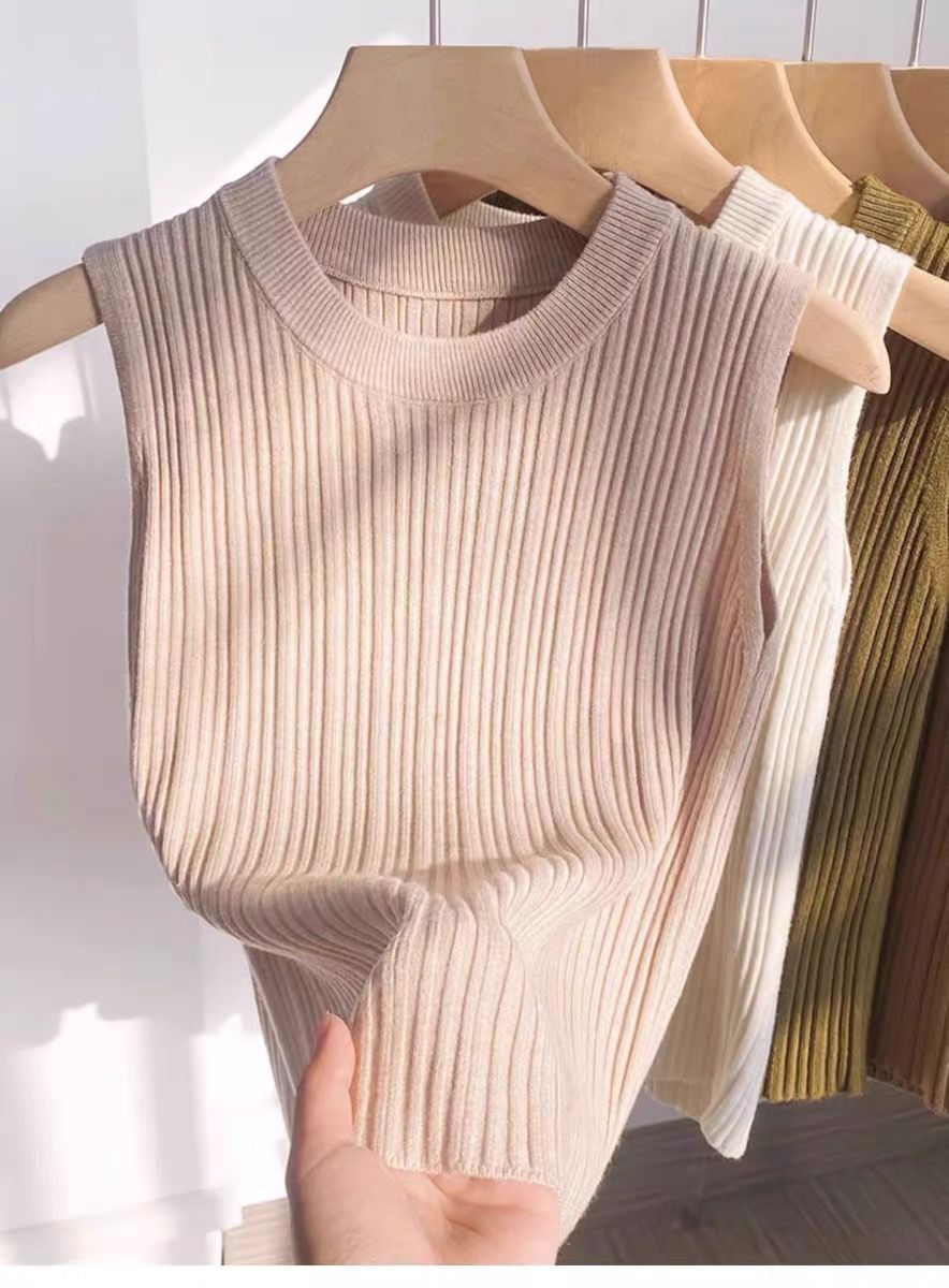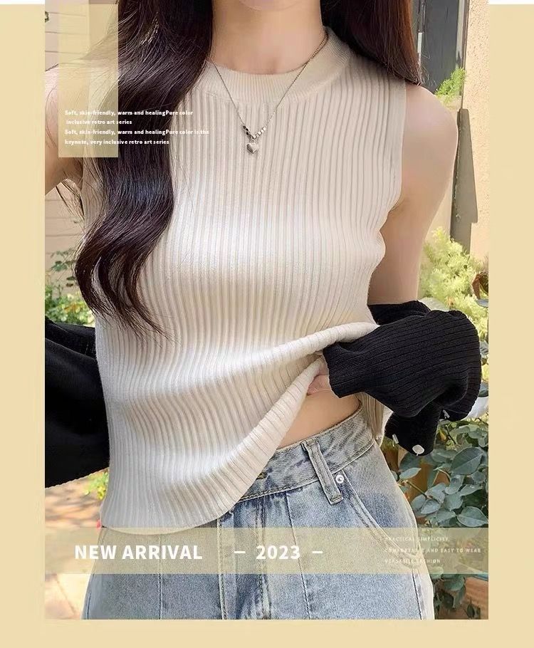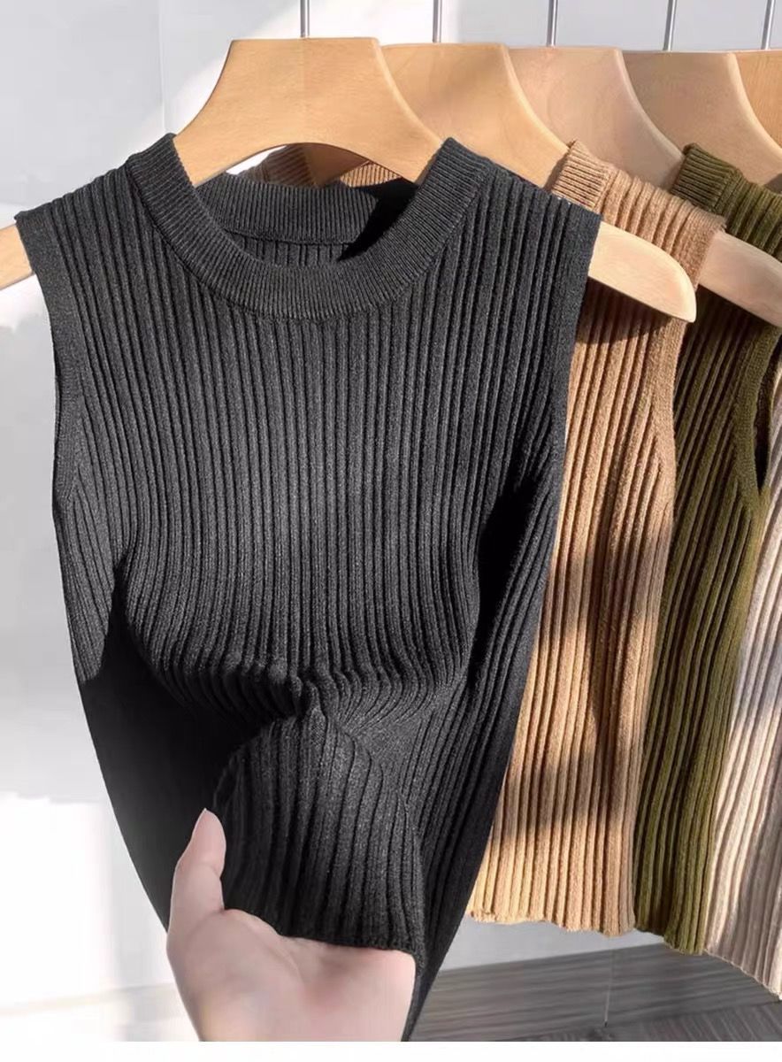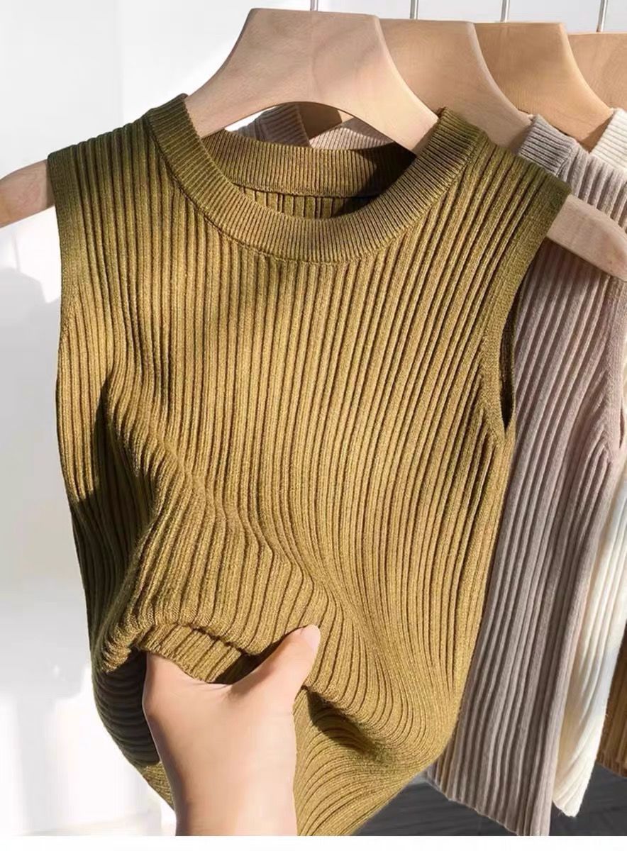 니트 조끼 여성 내부 착용 새로운 세련된 디자인 라운드 넥 가을과 겨울 내복 커버 가슴베이스 겉옷 탑스토어 가기