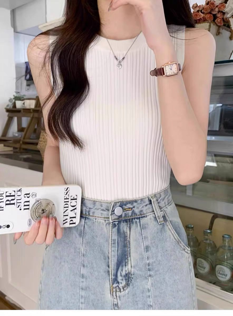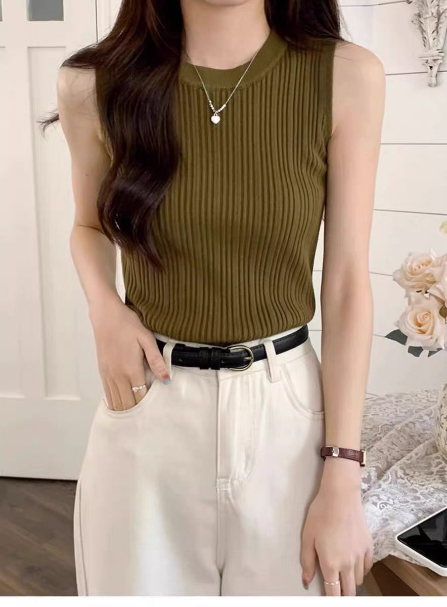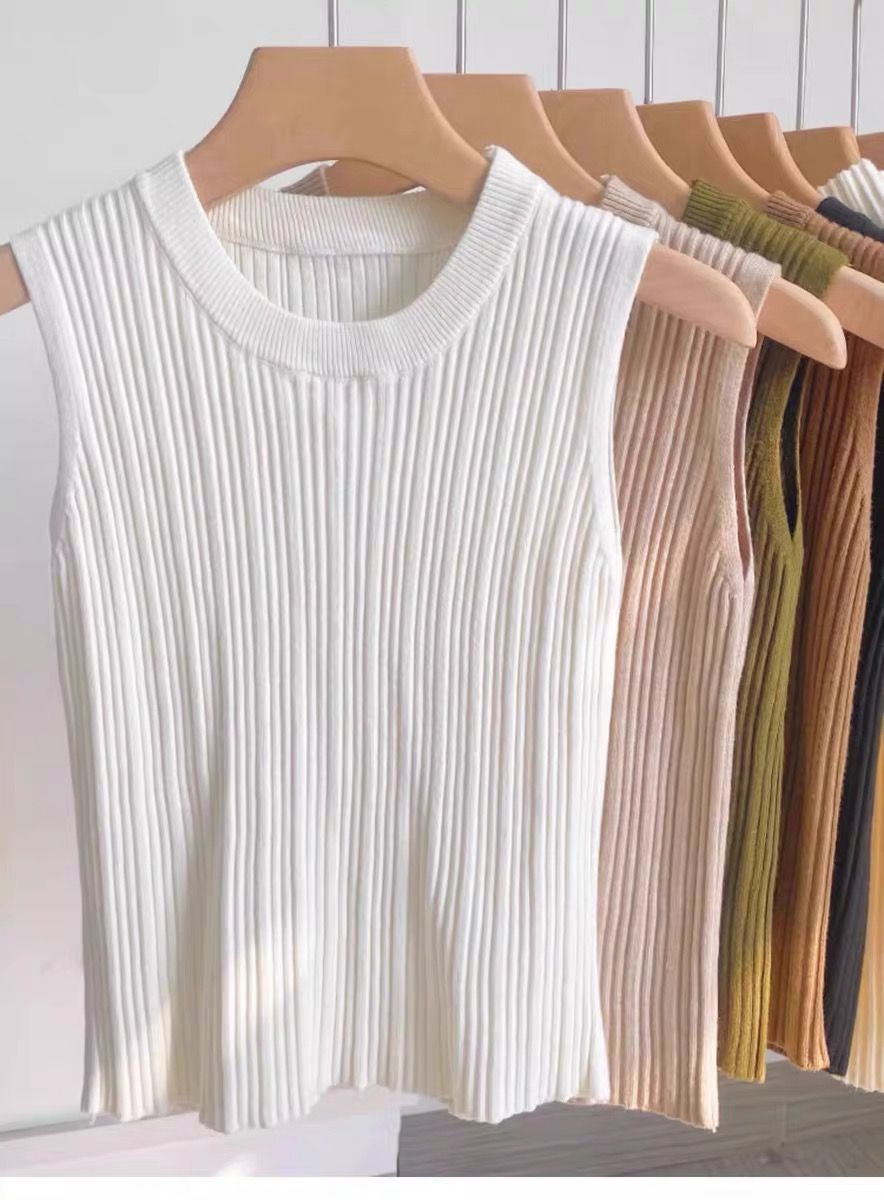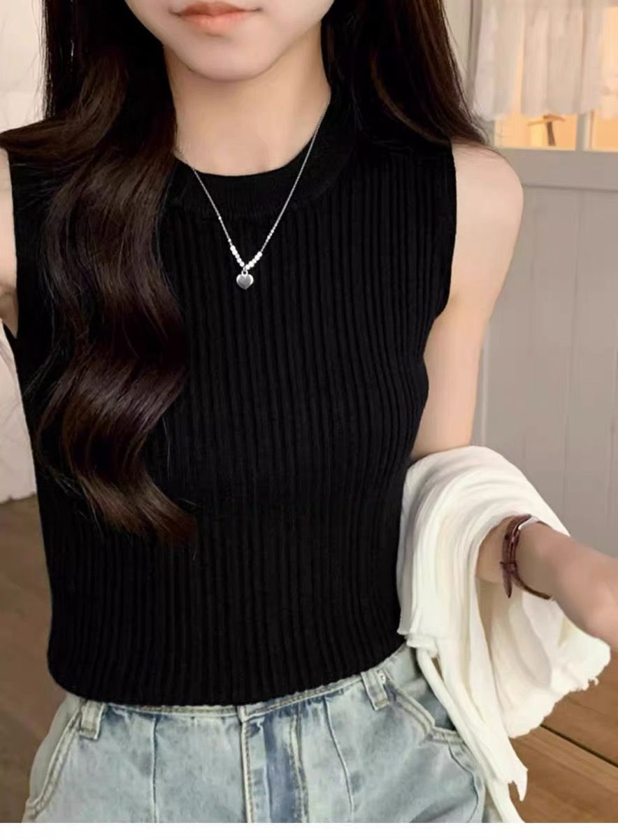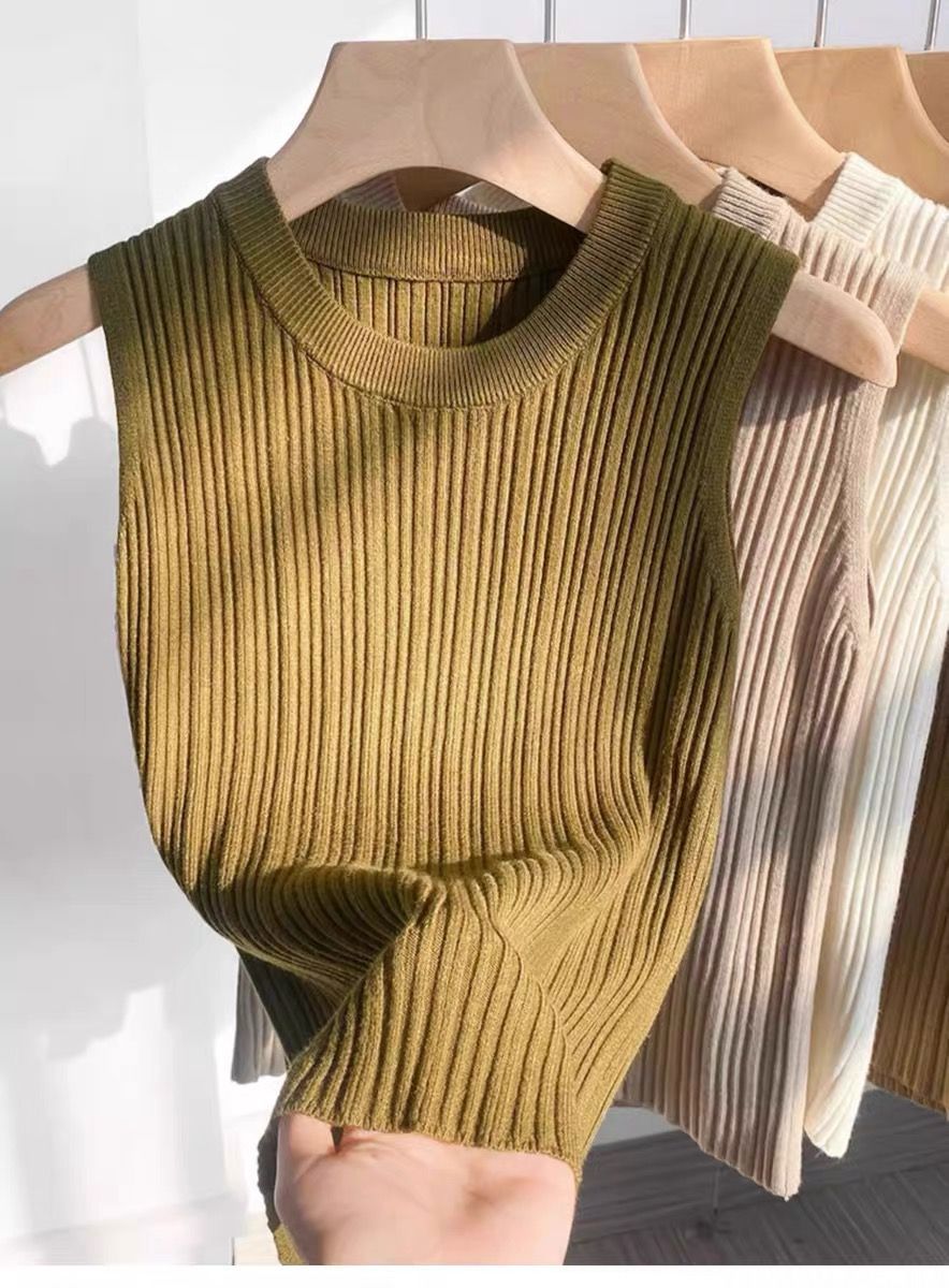 니트 조끼 여성 내부 착용 새로운 세련된 디자인 라운드 넥 가을과 겨울 내복 커버 가슴베이스 겉옷 탑스토어 가기
