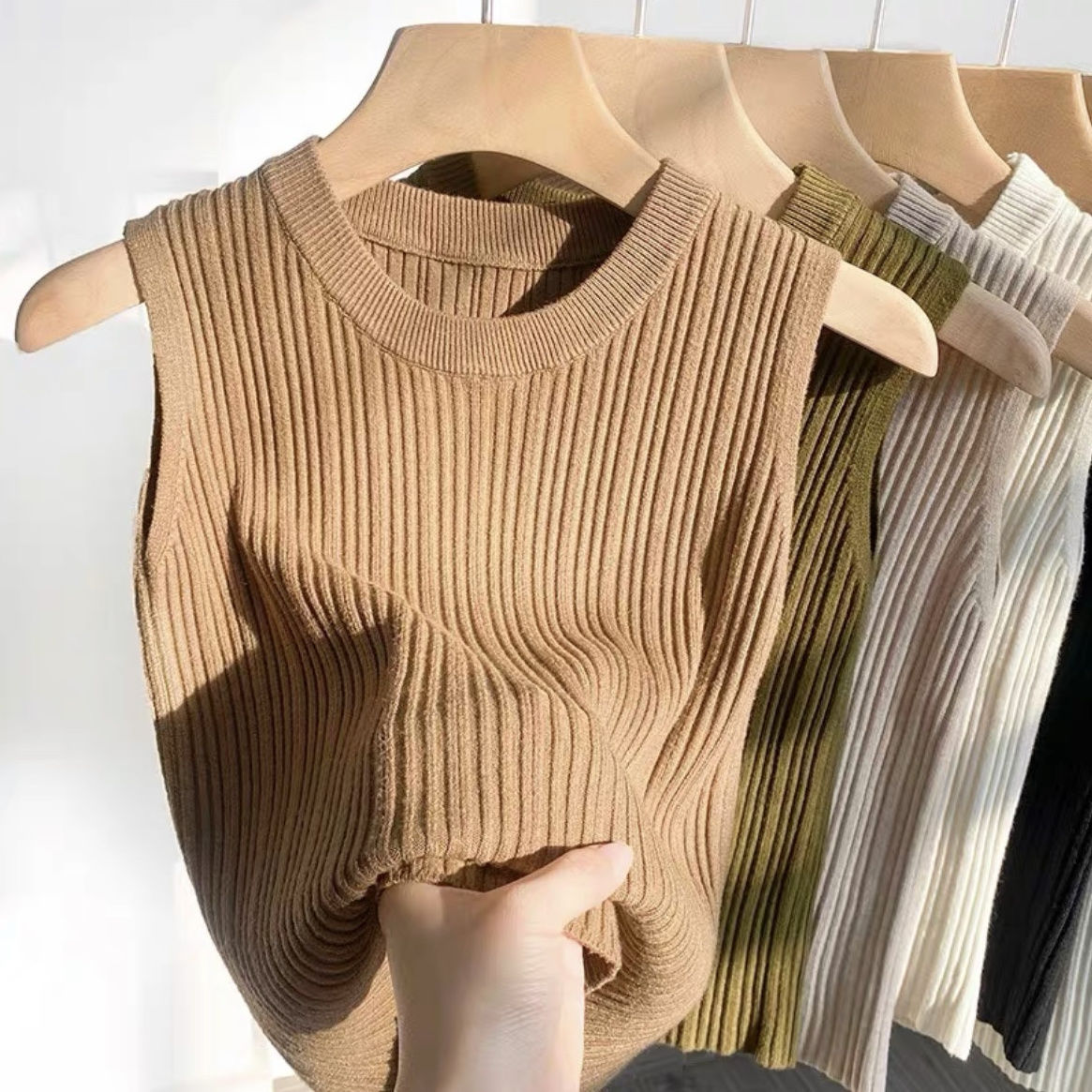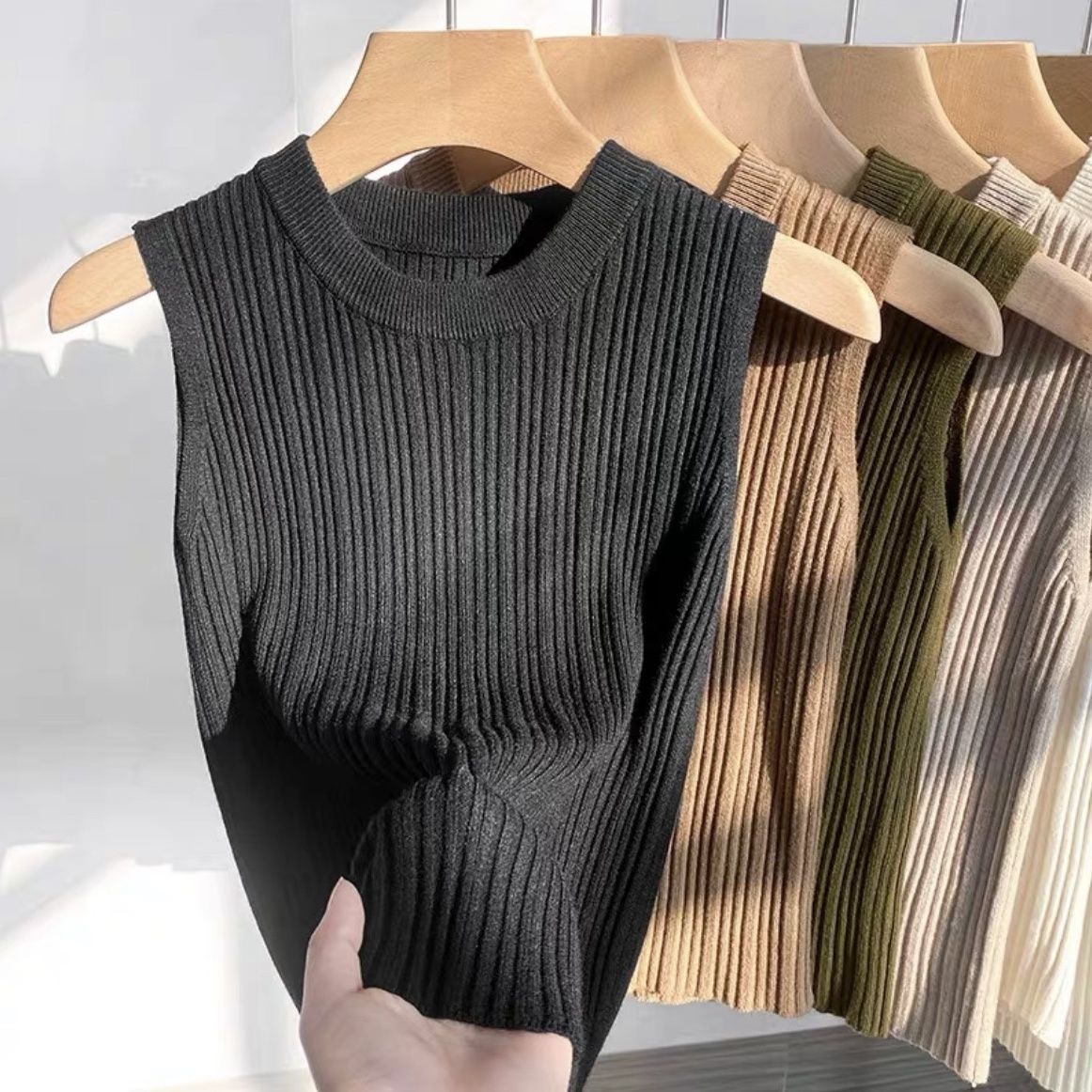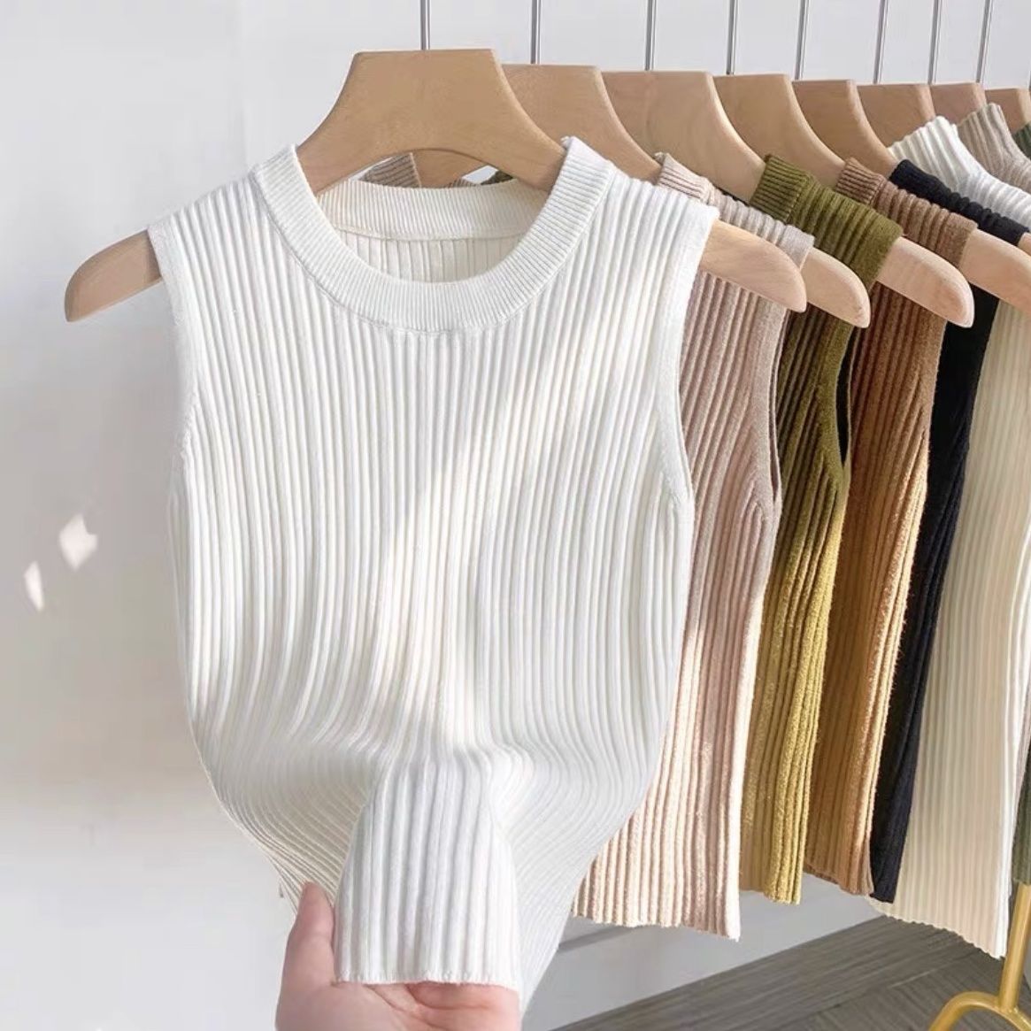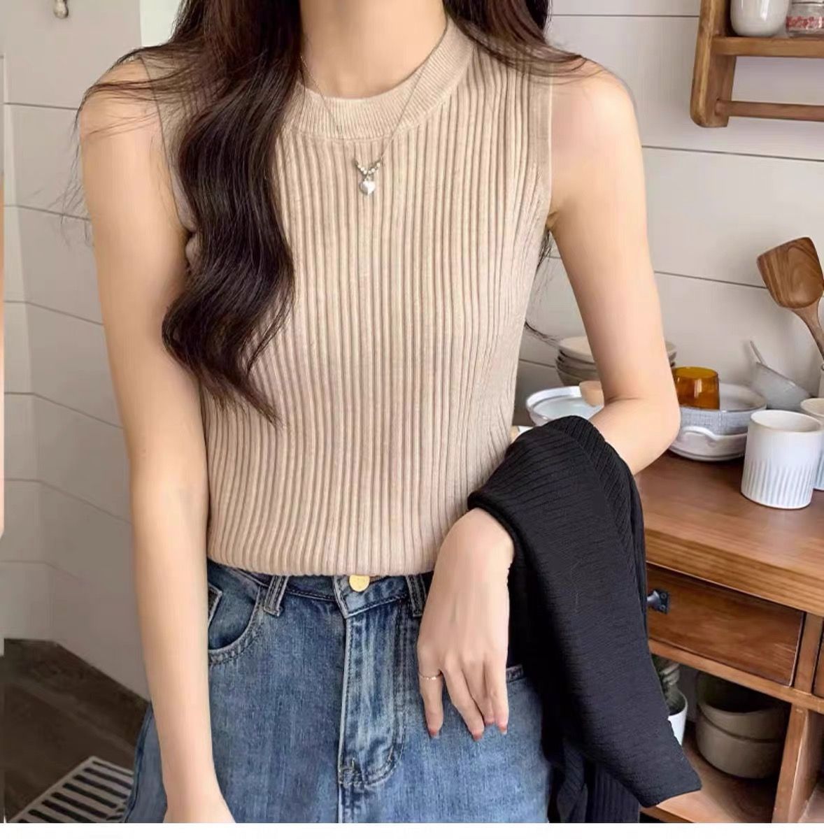 니트 조끼 여성 내부 착용 새로운 세련된 디자인 라운드 넥 가을과 겨울 내복 커버 가슴베이스 겉옷 탑스토어 가기