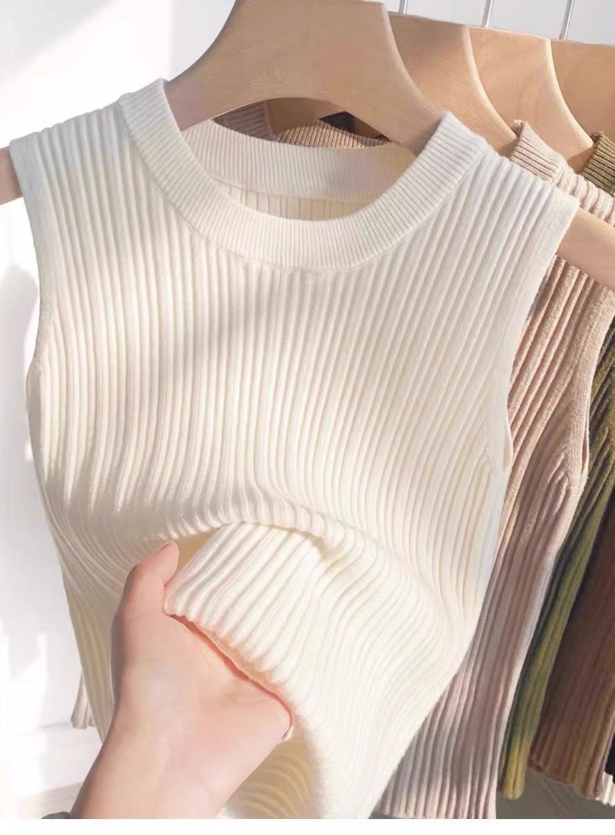 니트 조끼 여성 내부 착용 새로운 세련된 디자인 라운드 넥 가을과 겨울 내복 커버 가슴베이스 겉옷 탑