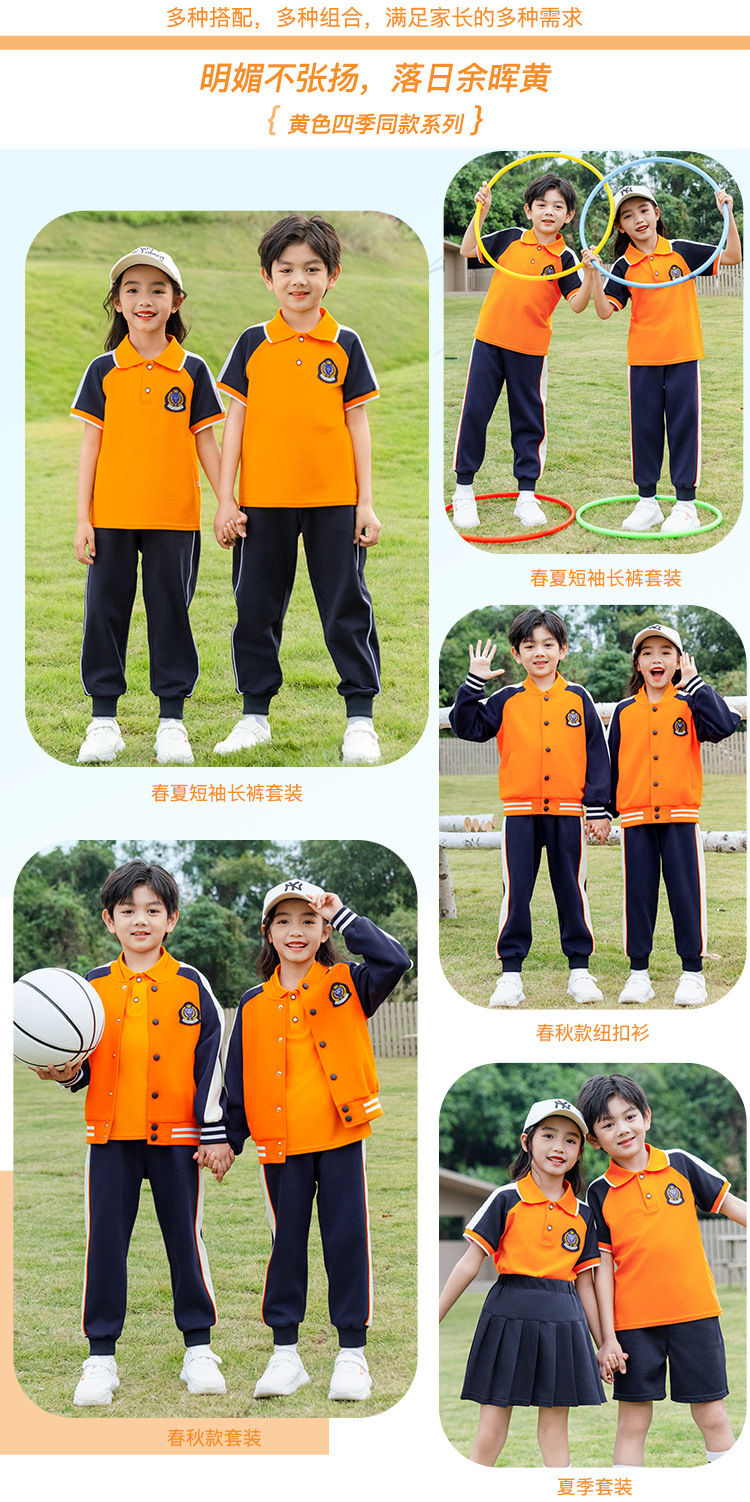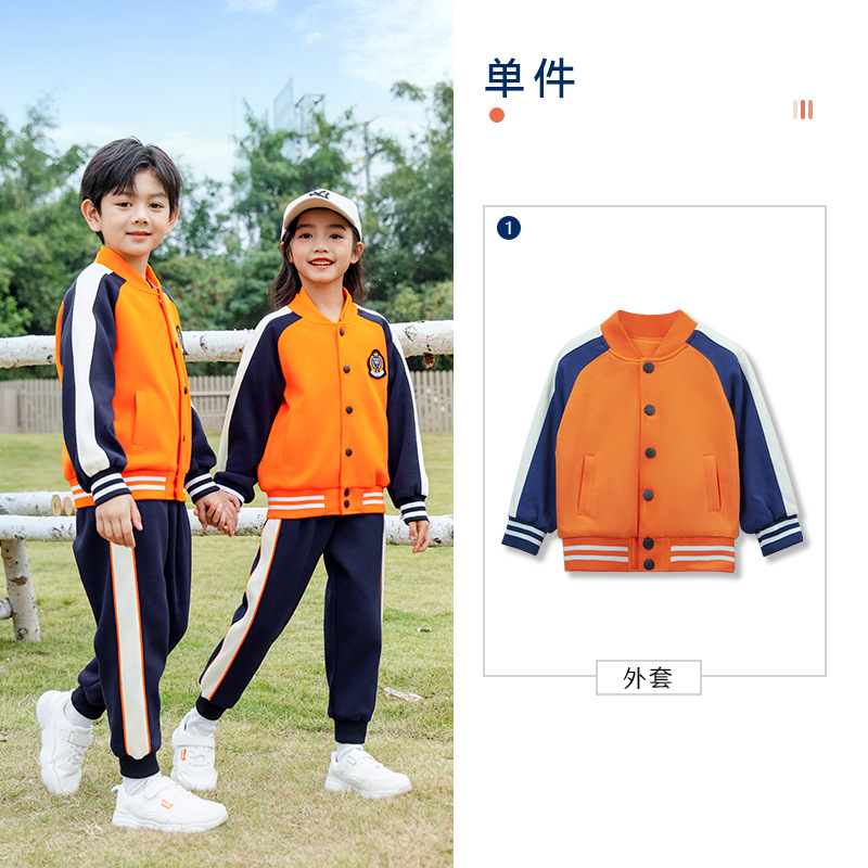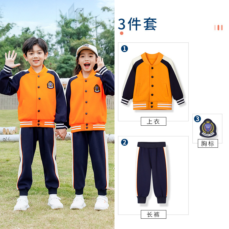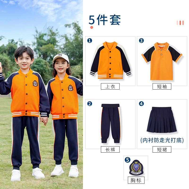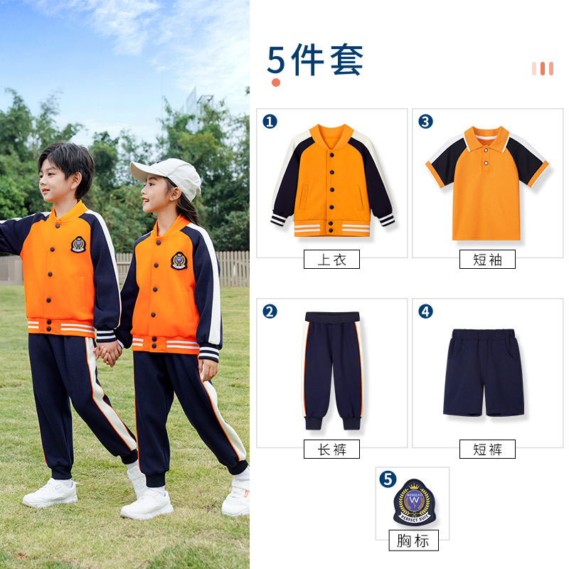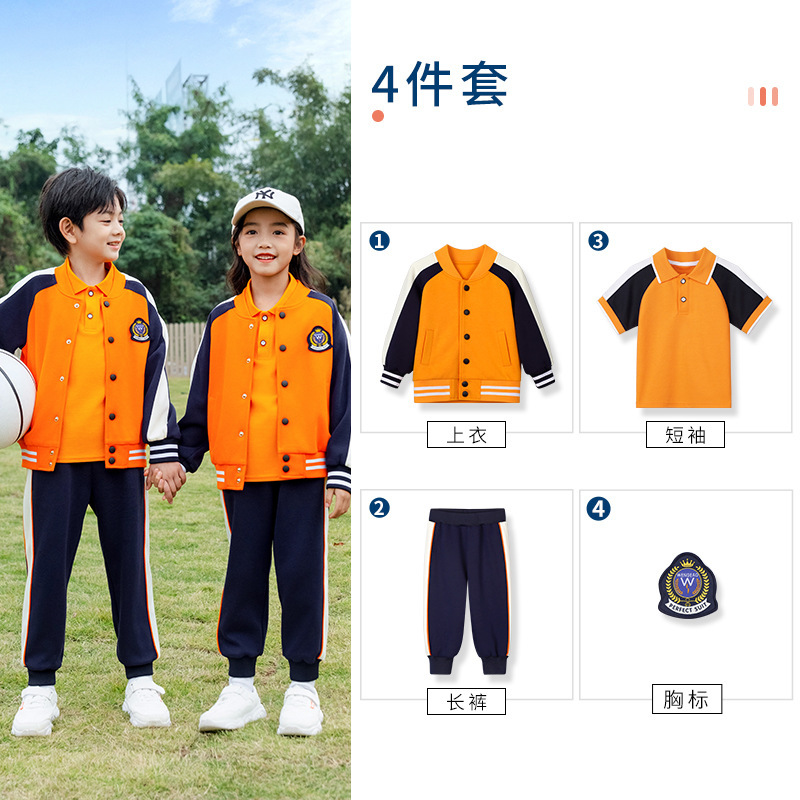 학교 유니폼 대학 스타일 오렌지 세트 봄과 가을 옷 새로운 소년 소녀 클래스 옷 4 피스 유치원 정원 옷스토어 가기