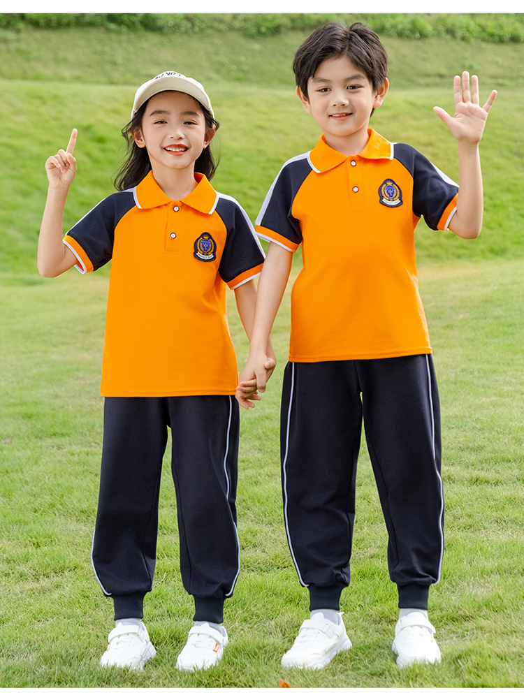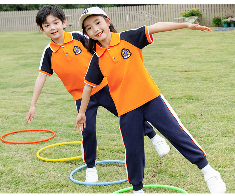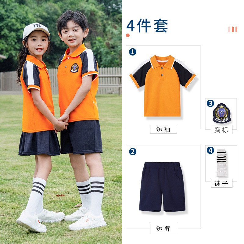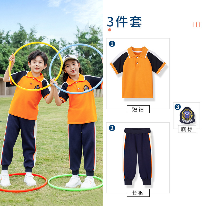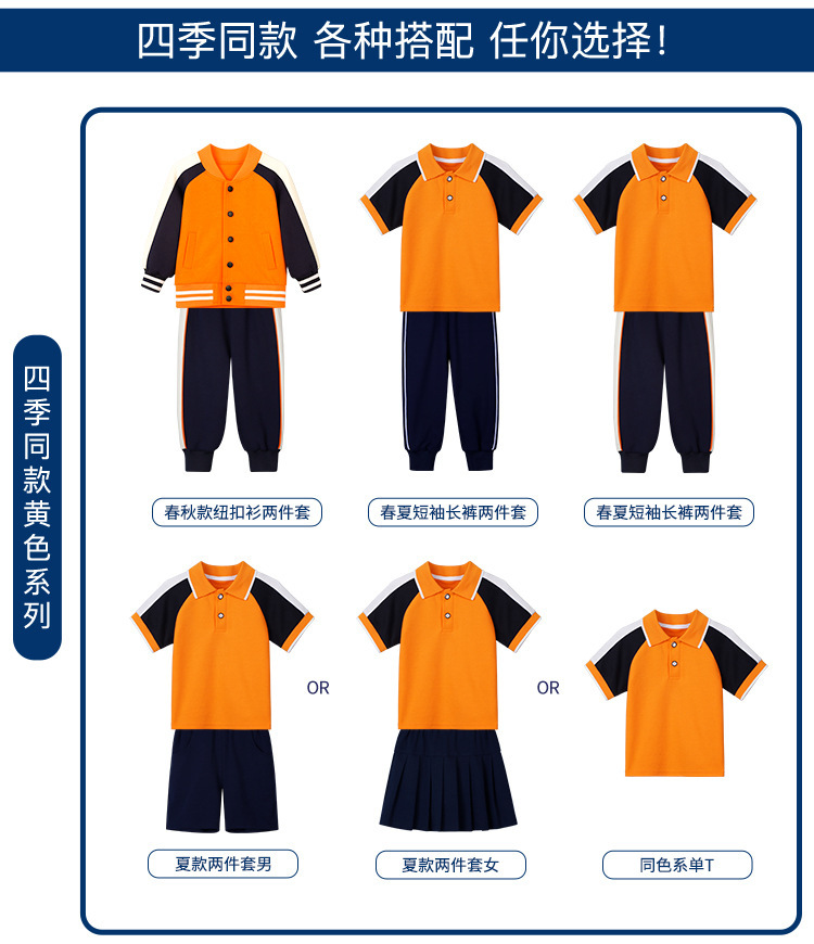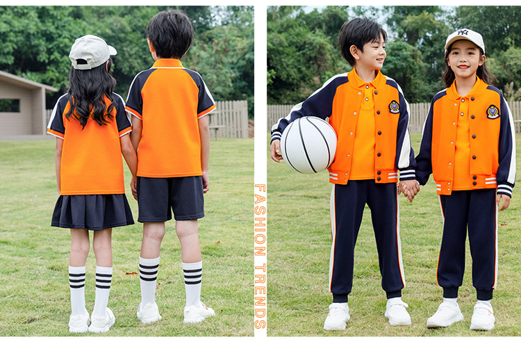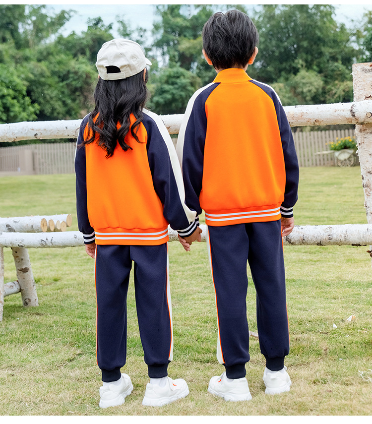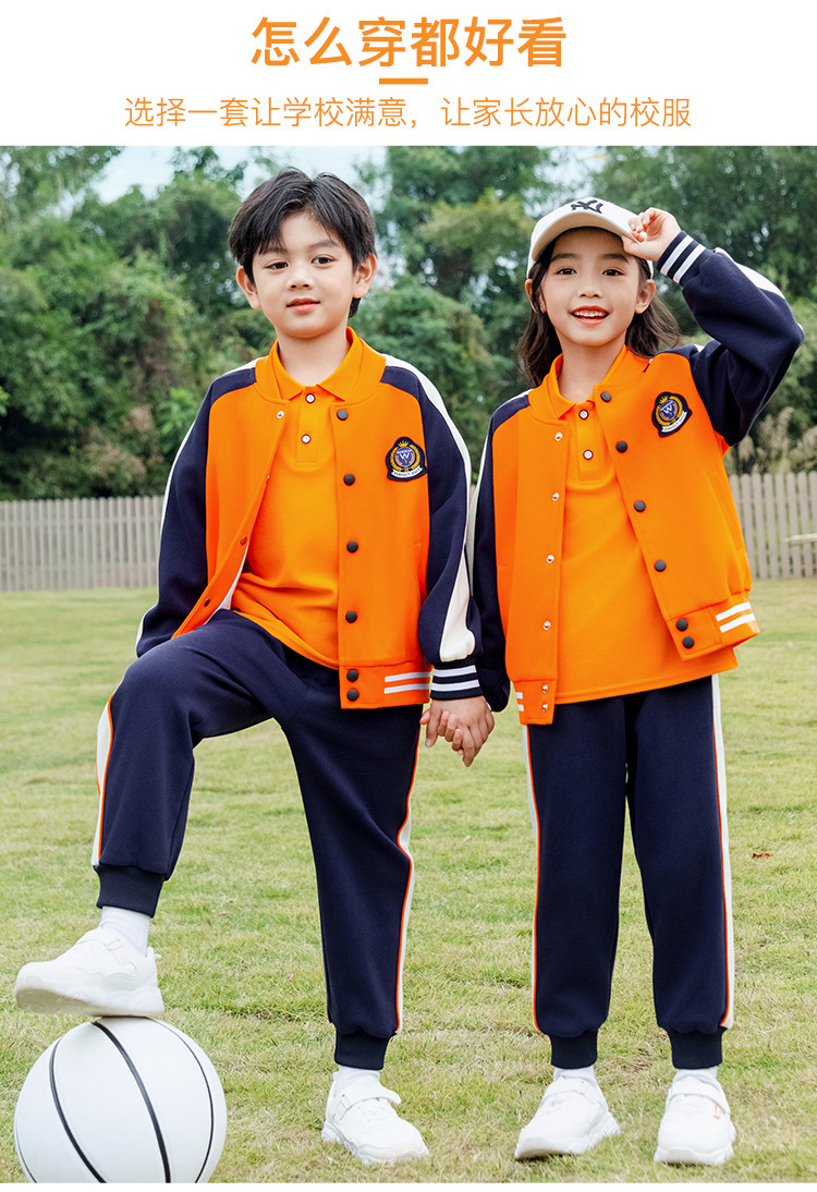 학교 유니폼 대학 스타일 오렌지 세트 봄과 가을 옷 새로운 소년 소녀 클래스 옷 4 피스 유치원 정원 옷스토어 가기