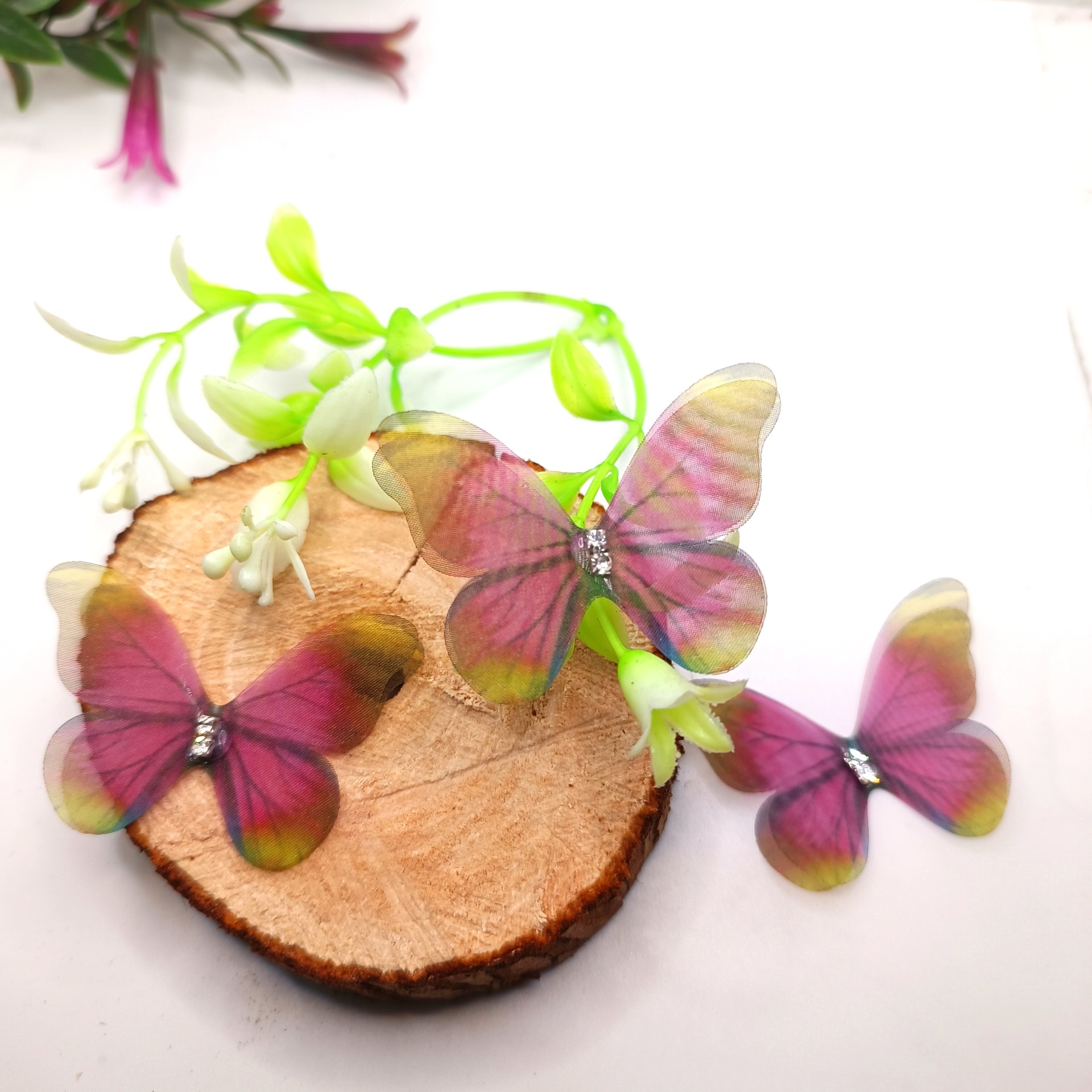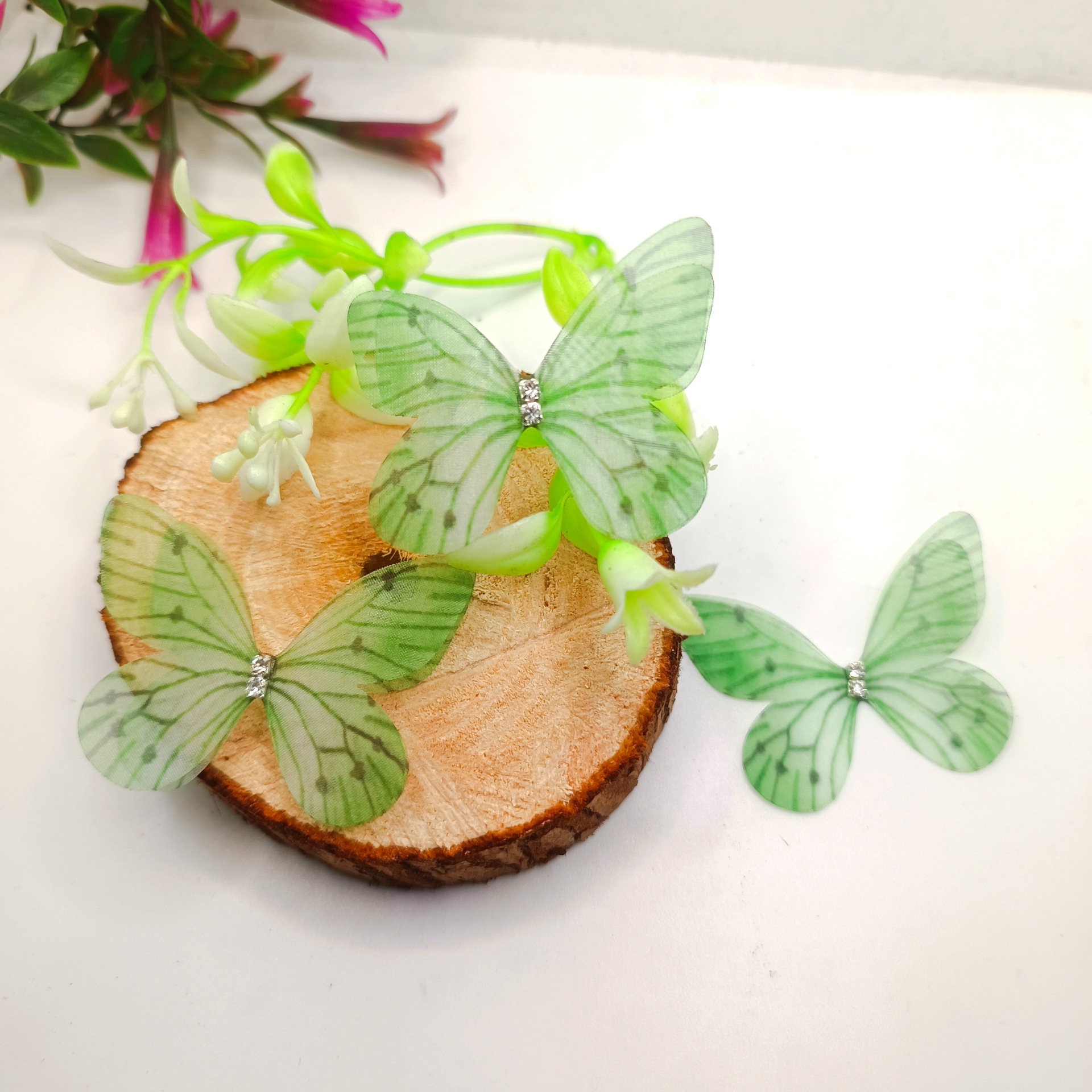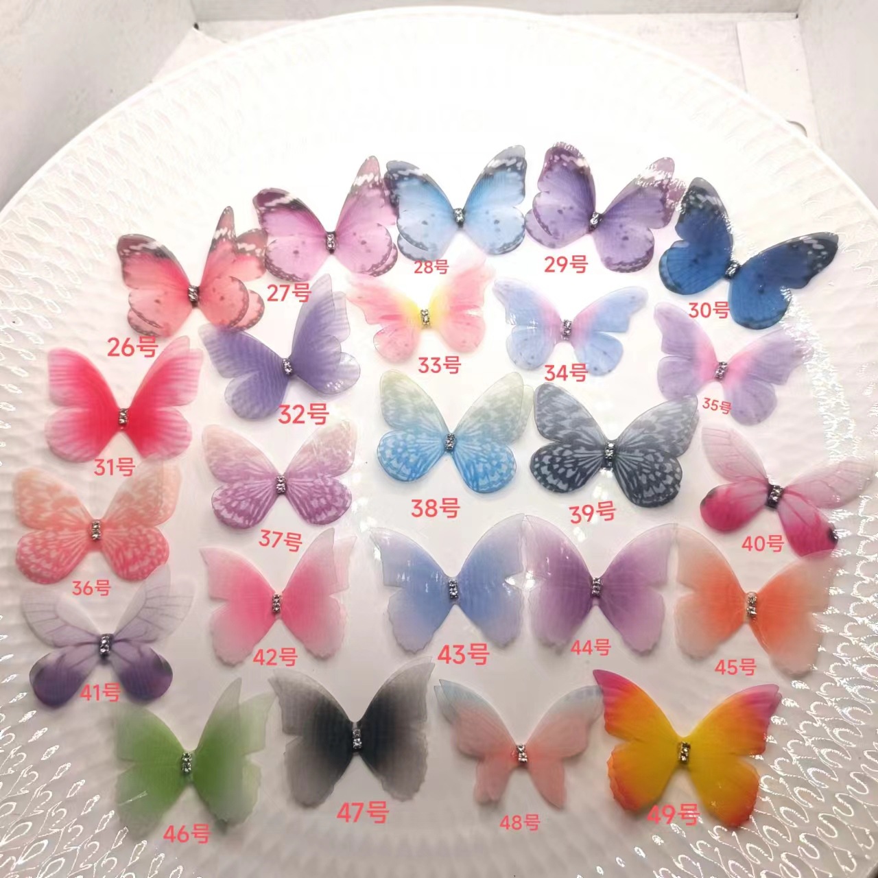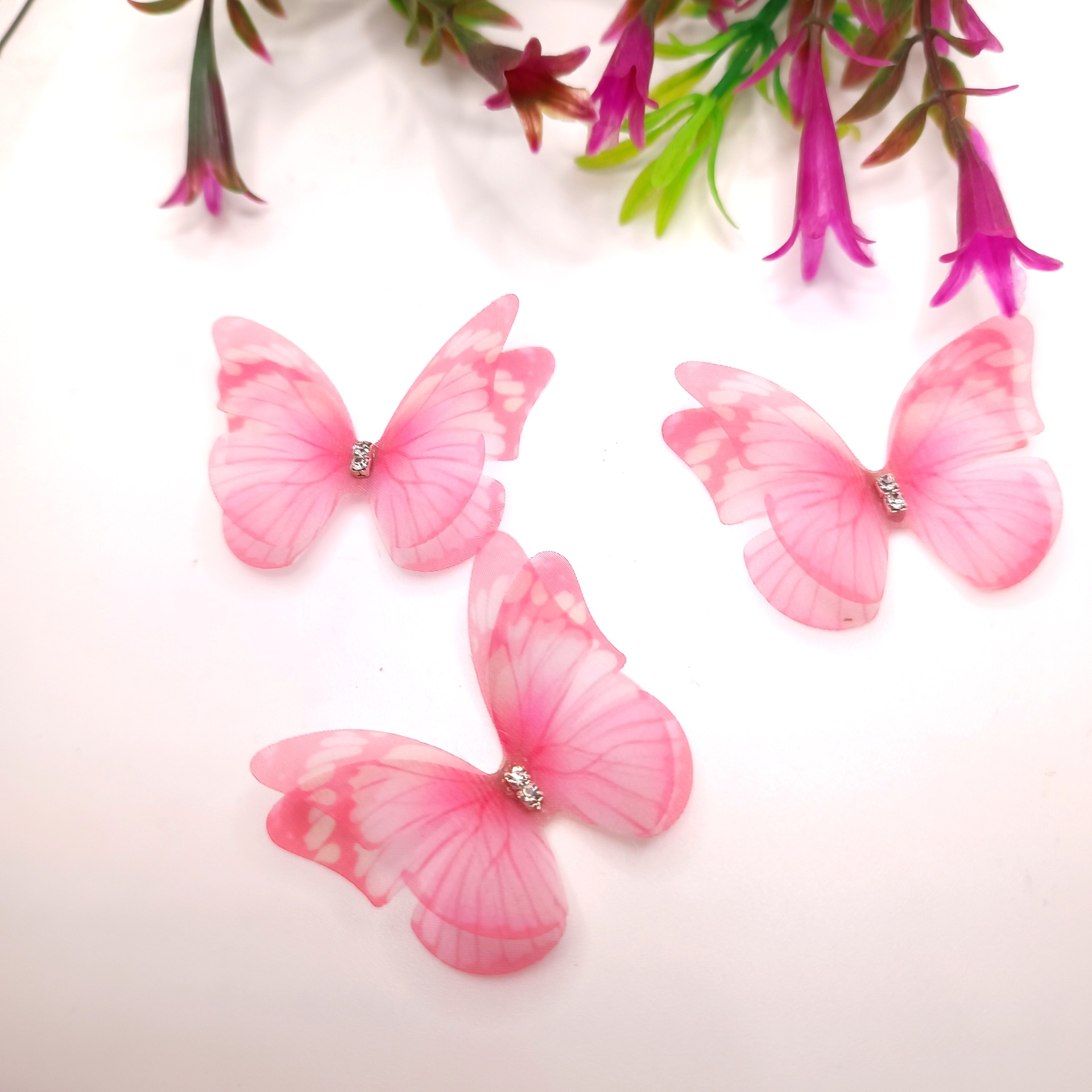 100 개의 5cm 입체 얇은 명주 그물 나비 diy 머리 장식 머리핀 헤어 액세서리 의류 장식 나비 장식 액세서리 재고 있음