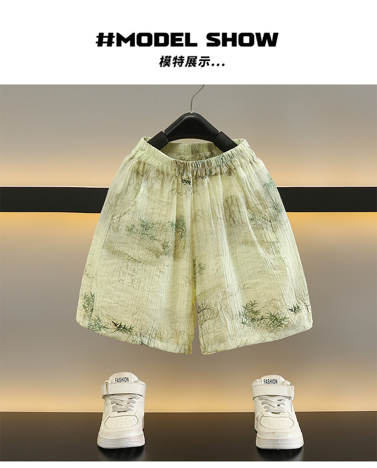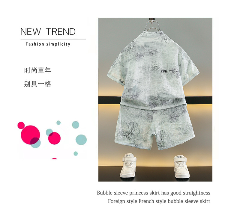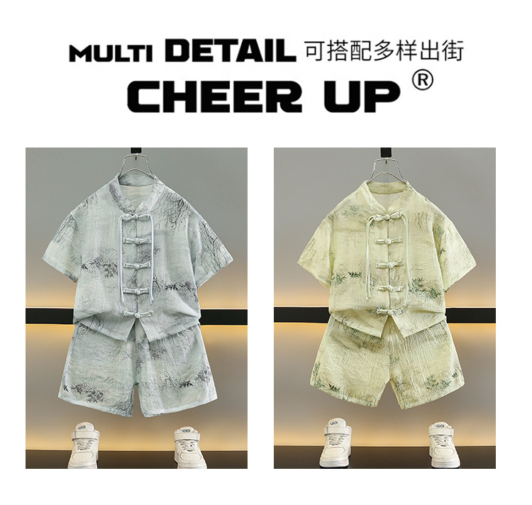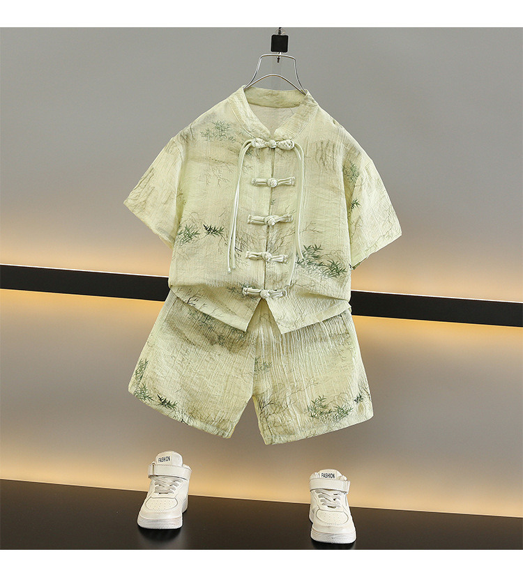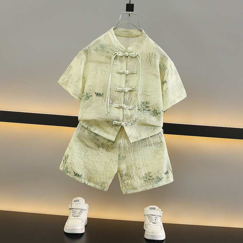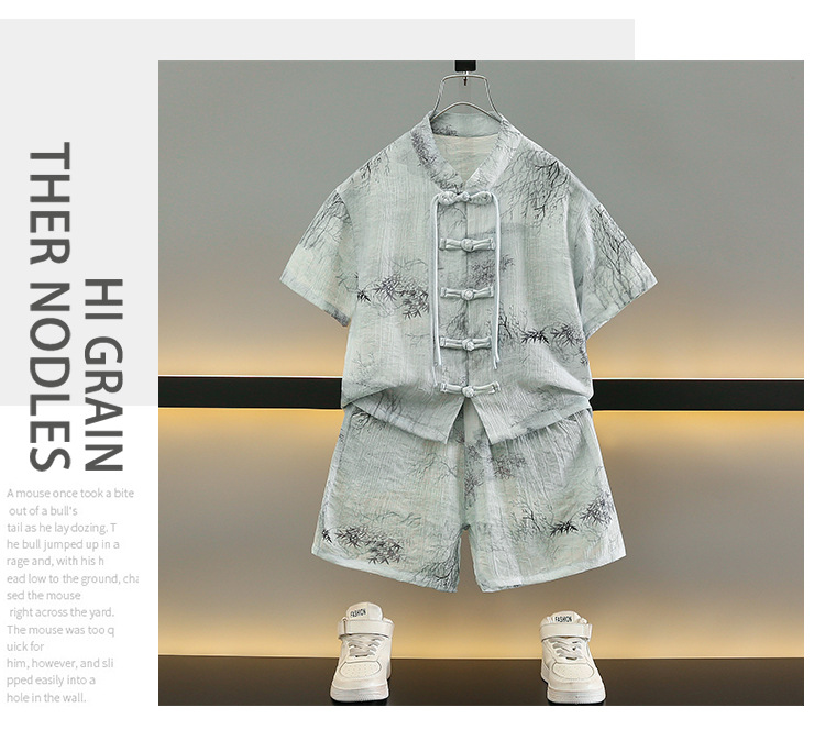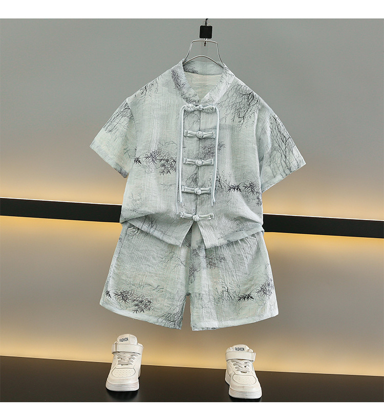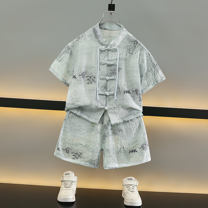 소년의 여름 새로운 중국 스타일 고대 당나라 세트 2024 새로운 여름 중국 스타일 짧은 소매 세트 어린이 아기 한푸