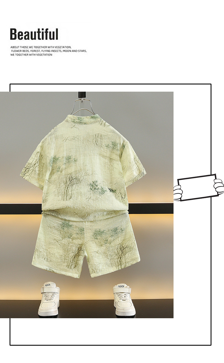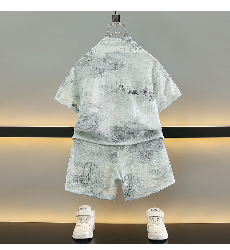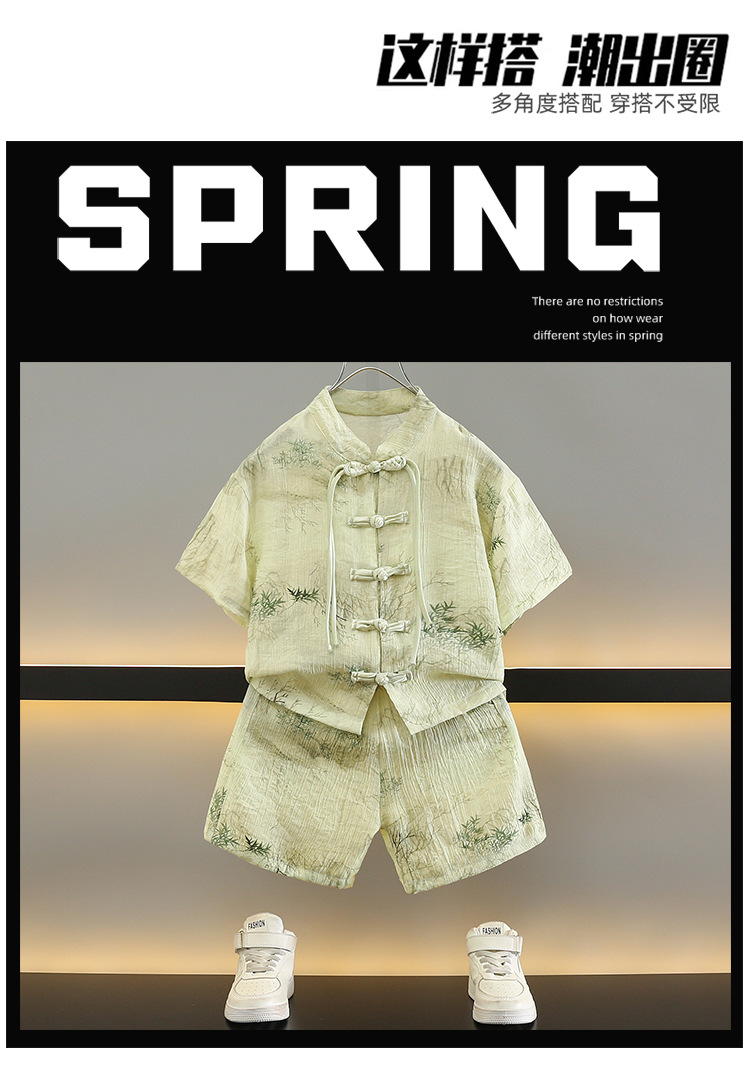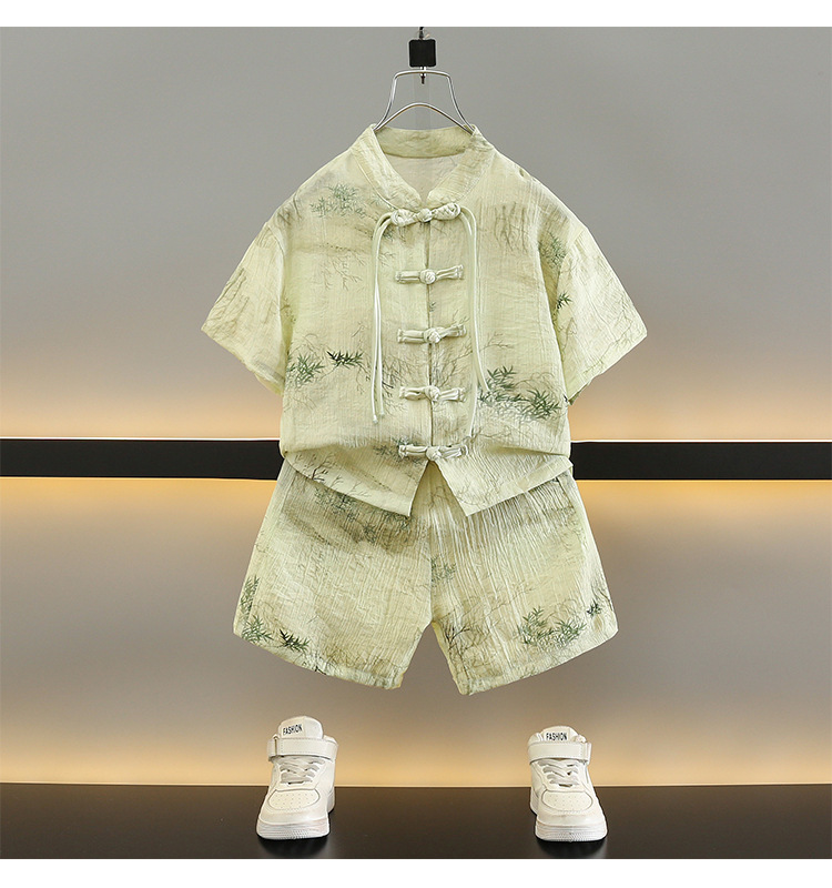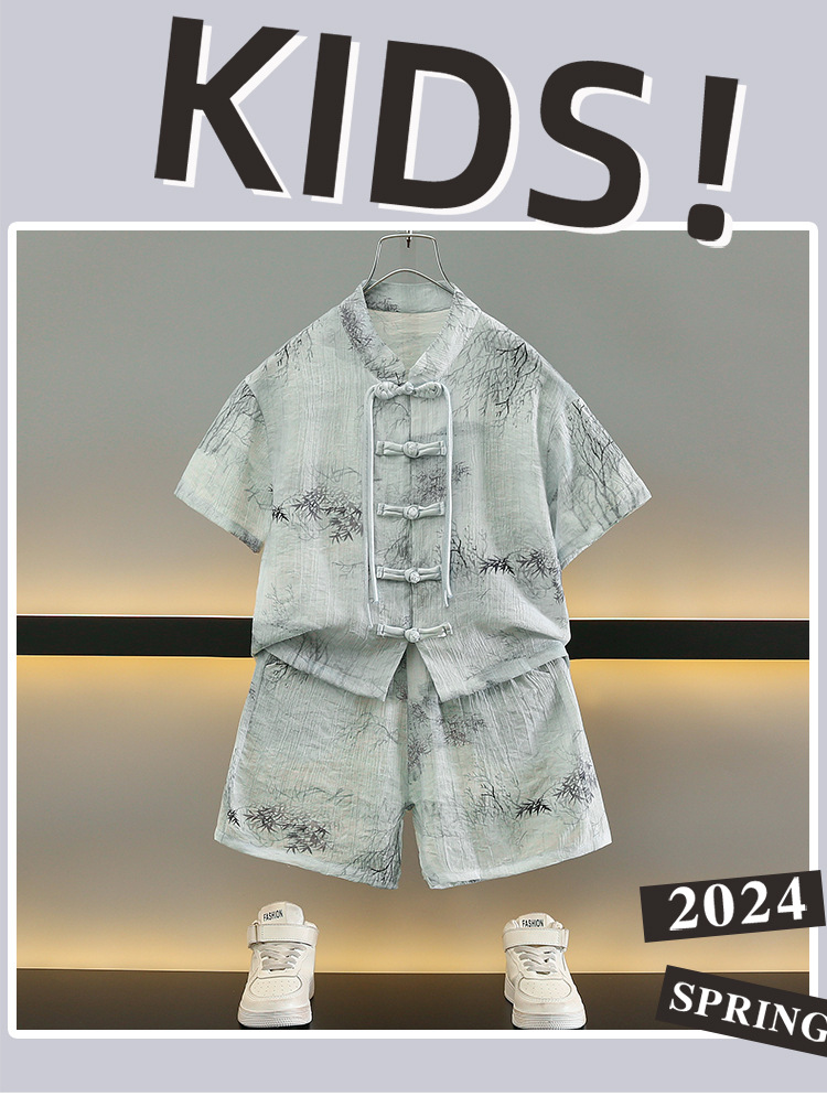 소년의 여름 새로운 중국 스타일 고대 당나라 세트 2024 새로운 여름 중국 스타일 짧은 소매 세트 어린이 아기 한푸스토어 가기