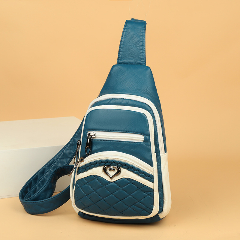 부드러운 가죽 캐주얼 가슴 가방 2024 여름 새로운 패션 올 매치 숄더 메신저 가방 여성의 가슴 파란색 배낭스토어 가기