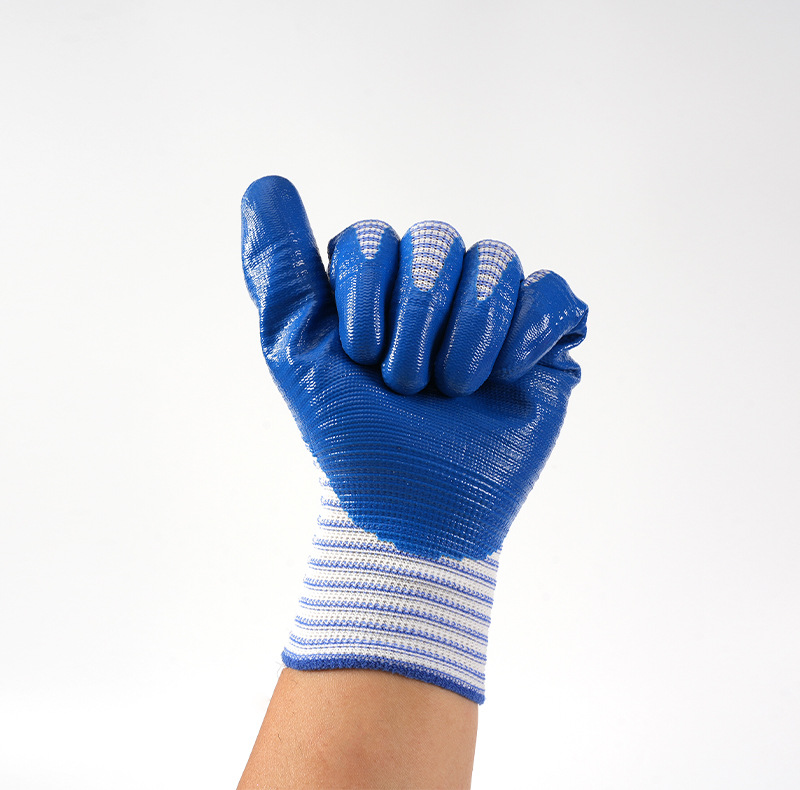 니트릴 H688 얼룩말 패턴 니트릴 장갑 나일론 담근 장갑 코팅 손바닥 반 고무 장갑 노동 보호 장갑 도매스토어 가기