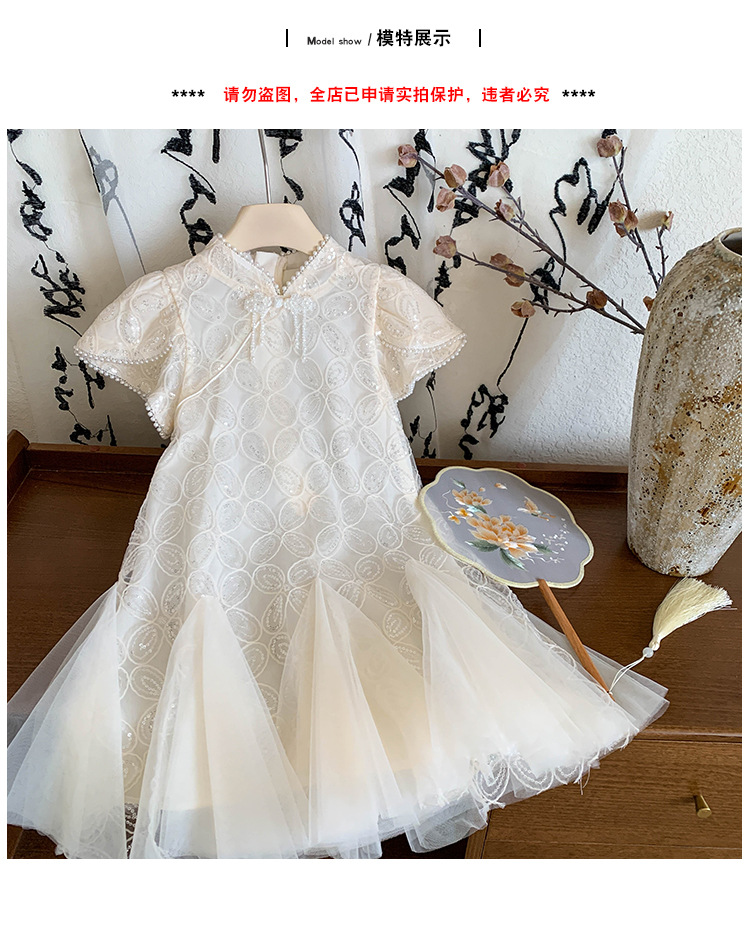 소녀 피쉬 테일 원피스 cheongsam 원피스 24 여름 어린이 어린 소녀 스팽글 새로운 중국 스타일 버클 공주 원사 원피스스토어 가기