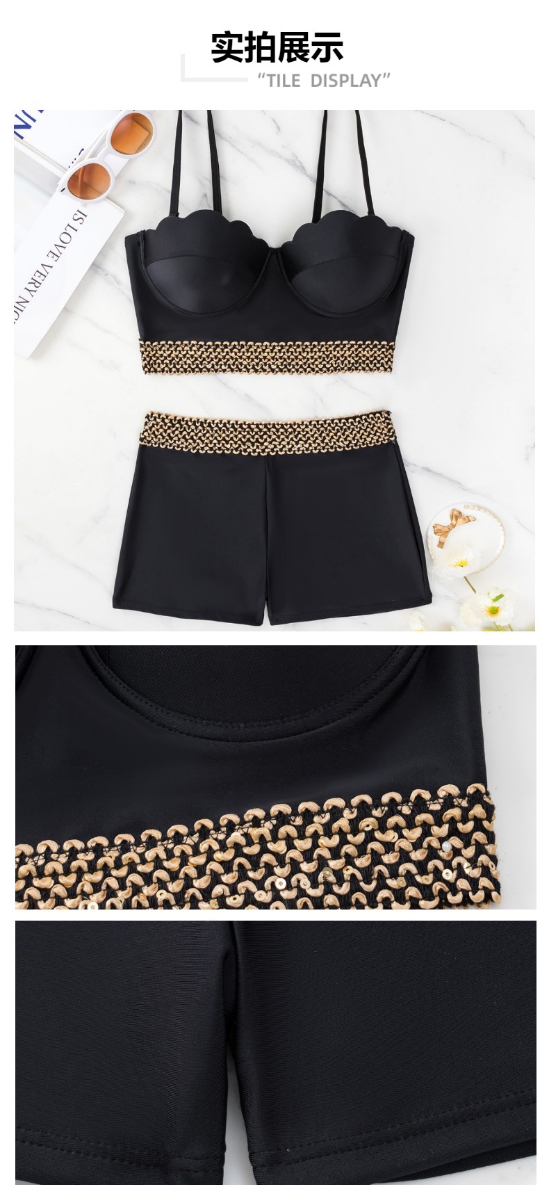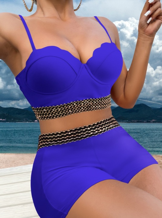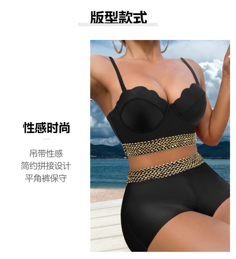 섹시한 3 점 수영복 스타일 스트랩 스티칭 컬러 매칭 하이 허리 복서 반바지 패션 아마존 폭발 국경 특수 수영복스토어 가기