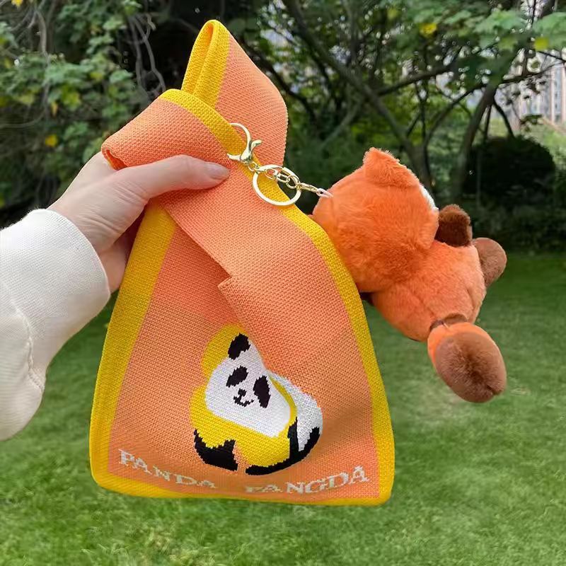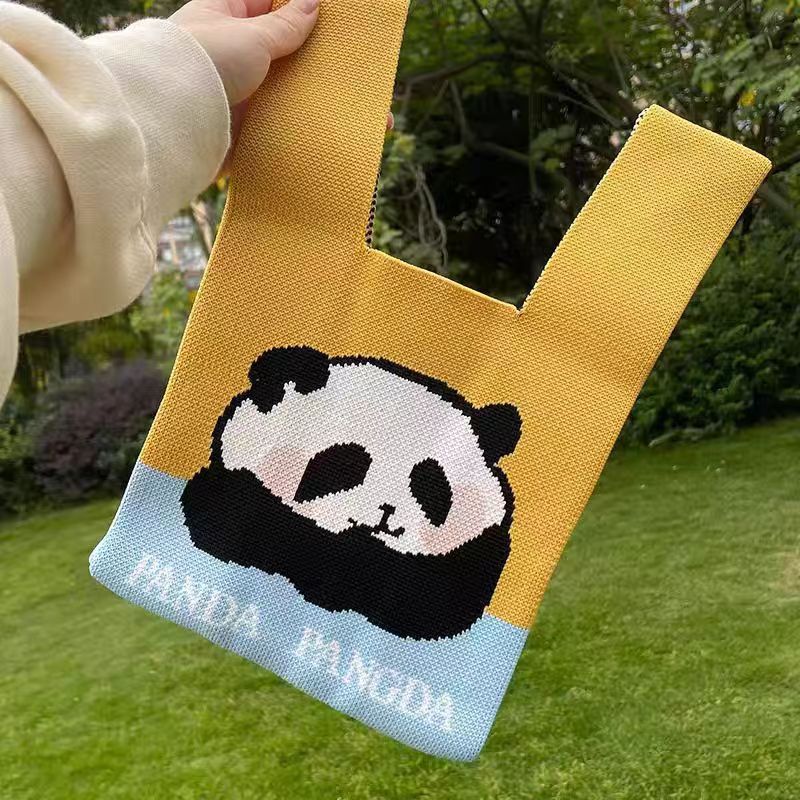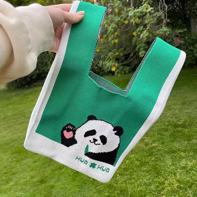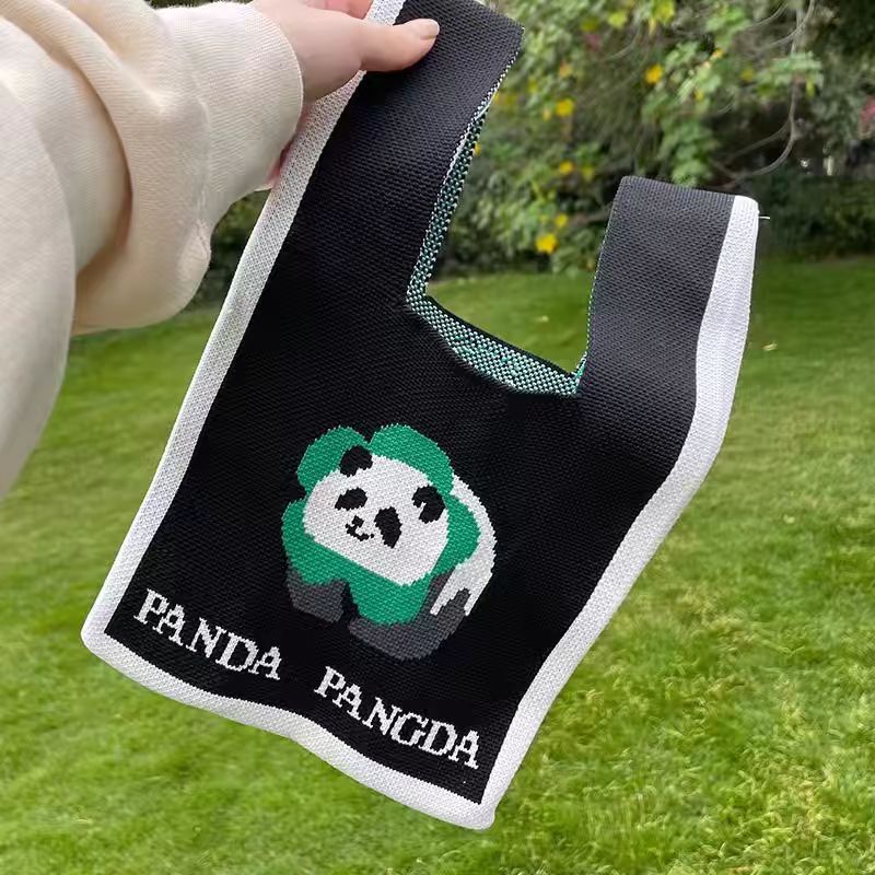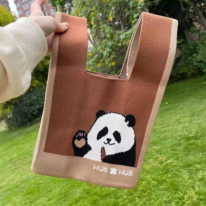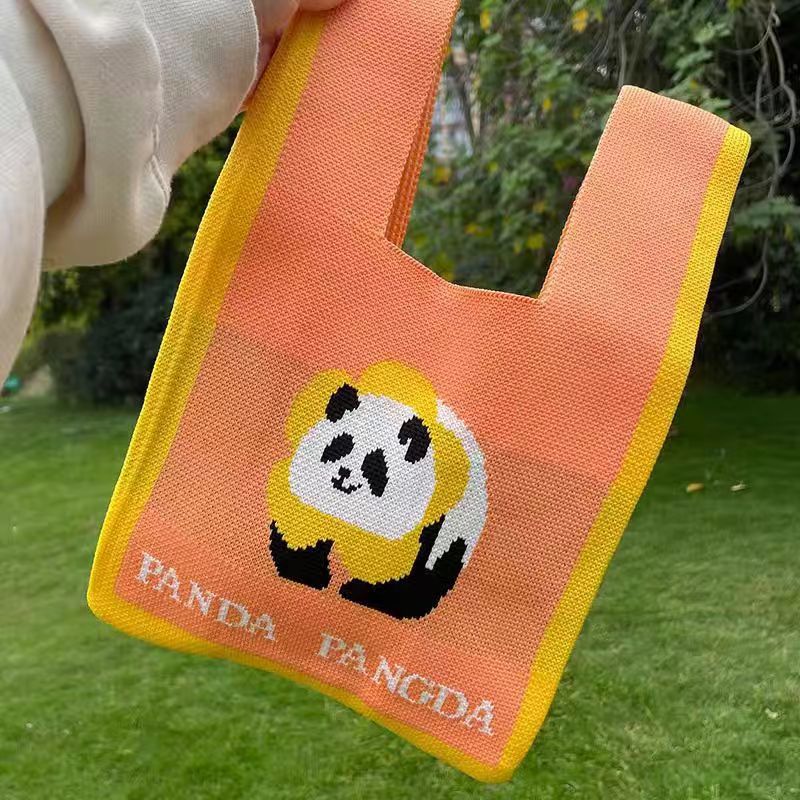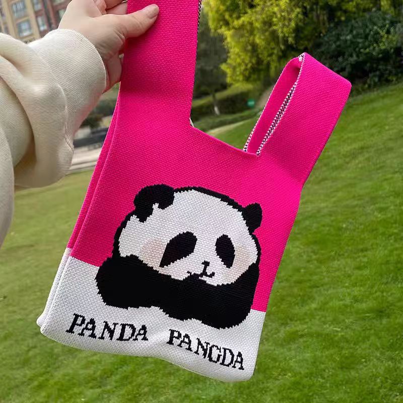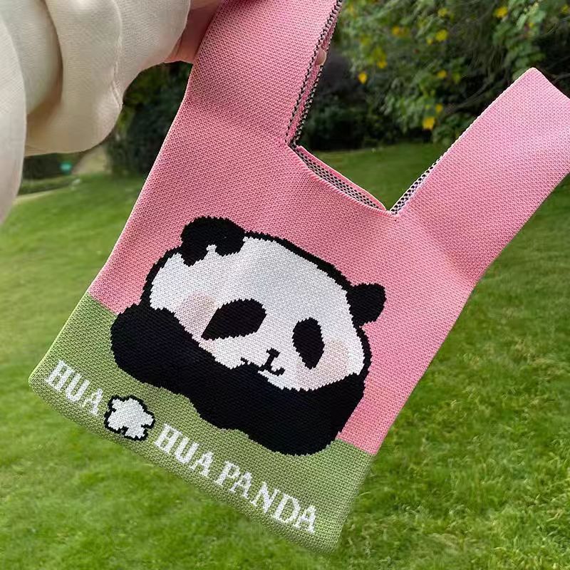 새로운 청두 할아버지 귀여운 팬더 꽃 선물 가방 여성 핸드백 짠 속옷 선물 니트 가방스토어 가기