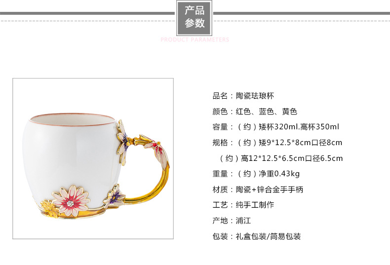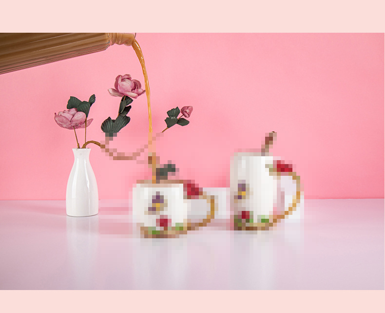 손으로 그린 세라믹 마크 페어 컵 로즈 에나멜 컵 아침 식사 컵 오트밀 향기 차 컵 숟가락 결혼 선물