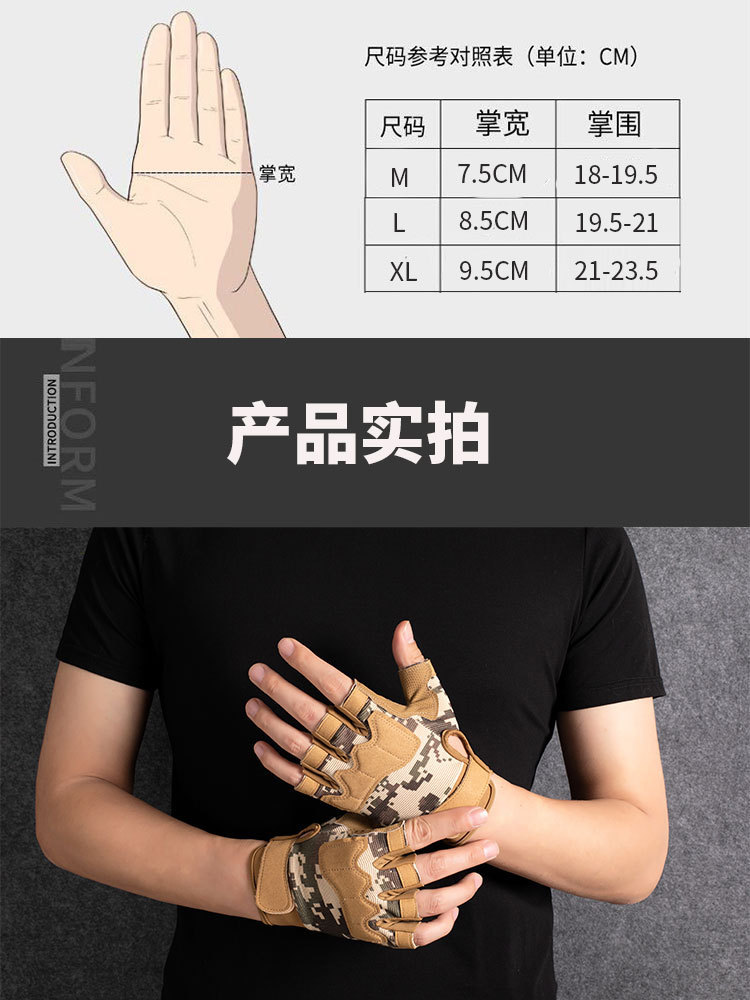 하프 핑거 낙하산 스포츠 장갑 남녀 봄과 여름 야외 승마 보호 군사 팬 피트니스 미끄럼 방지 전술 장갑