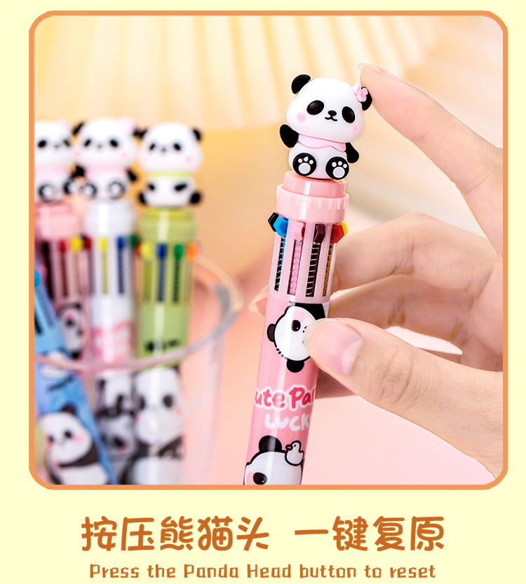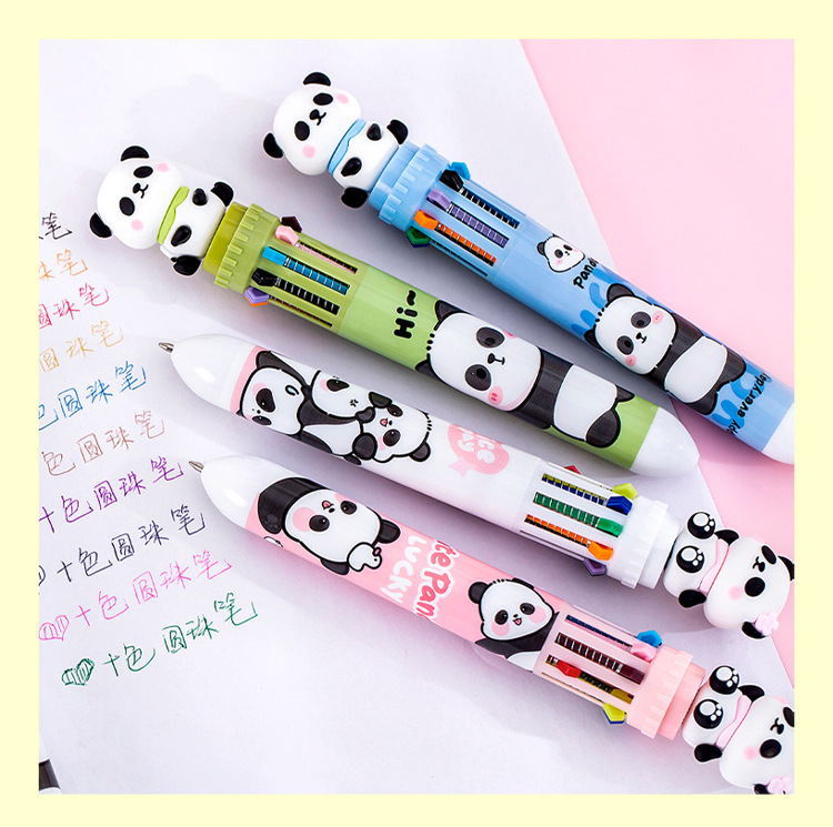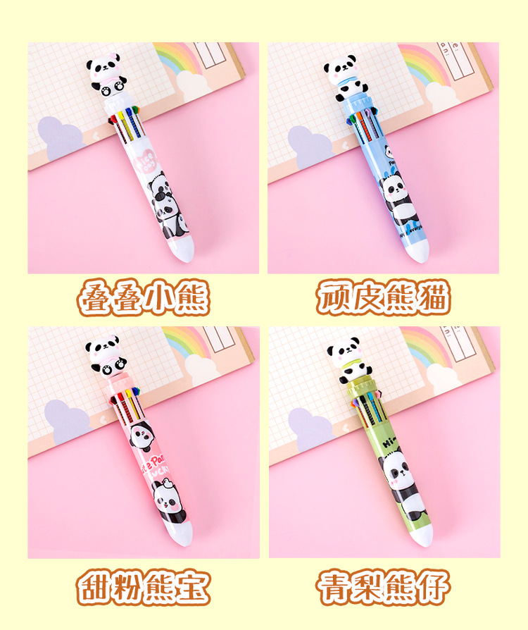 창조적 인 만화 팬더 10 색 볼펜 학생 다기능 10 색 단색 손 계정 마킹 펜 서명 펜