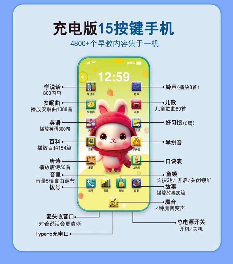 어린이 조기 교육 교육 휴대 전화 아기 다기능 학습 기계 조기 교육 음악 시뮬레이션 전화 소년 소녀 장난감스토어 가기
