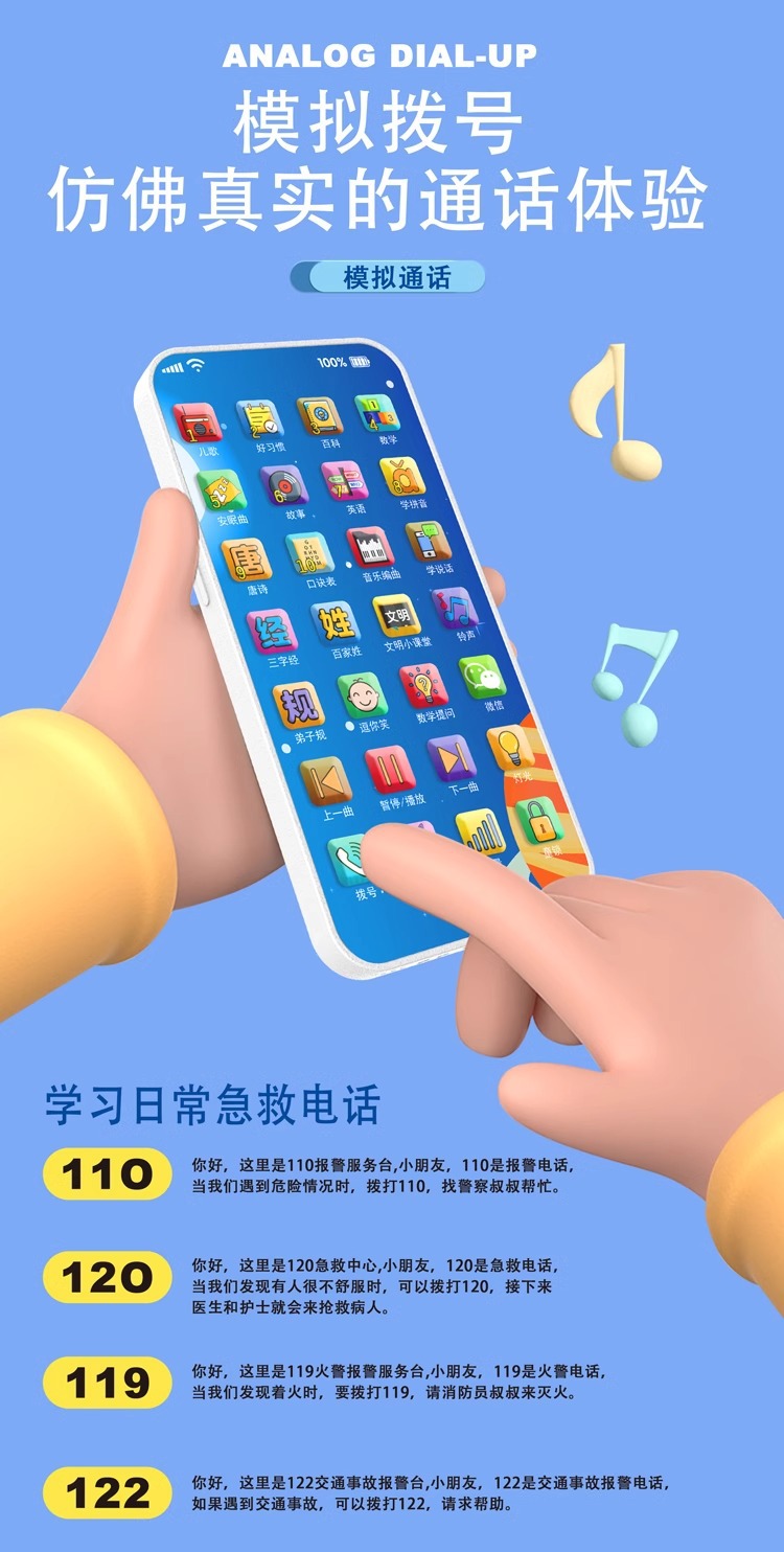 어린이 조기 교육 교육 휴대 전화 아기 다기능 학습 기계 조기 교육 음악 시뮬레이션 전화 소년 소녀 장난감