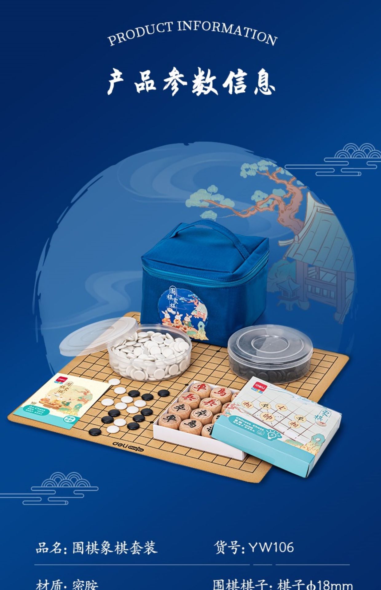 델리 YW106 세트 어린이 초보자 세트 체스 고방 퍼즐 2 대 1 휴대용 체스스토어 가기