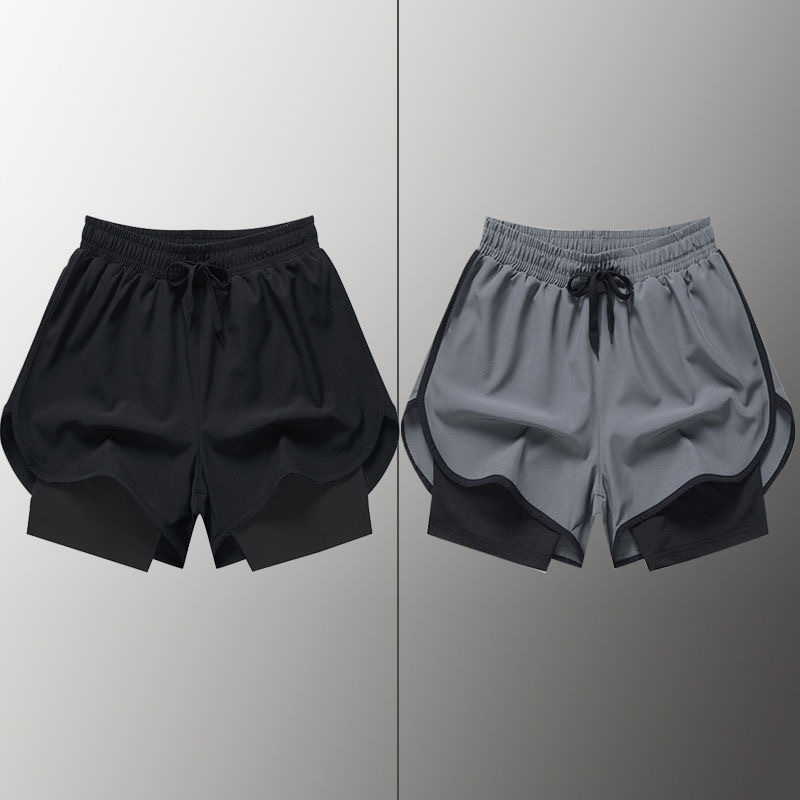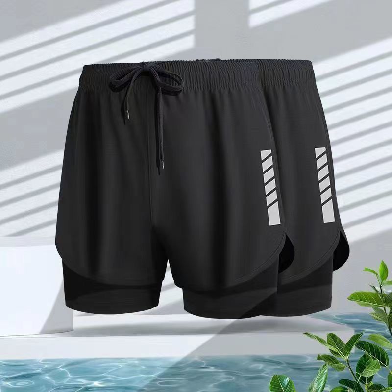 수영 트렁크 남자 안티 당황스러운 더블 레이어 빠른 건조 수영 라이닝 소년 느슨한 캐주얼 5 점 스포츠 달리기 짧은 바지스토어 가기