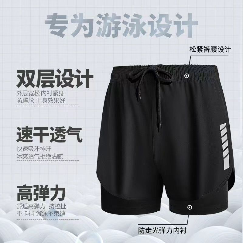 수영 트렁크 남자 안티 당황스러운 더블 레이어 빠른 건조 수영 라이닝 소년 느슨한 캐주얼 5 점 스포츠 달리기 짧은 바지