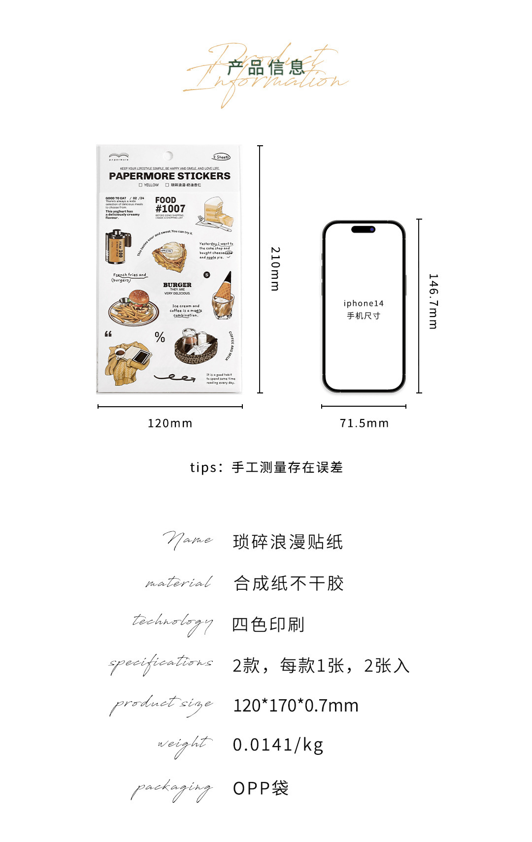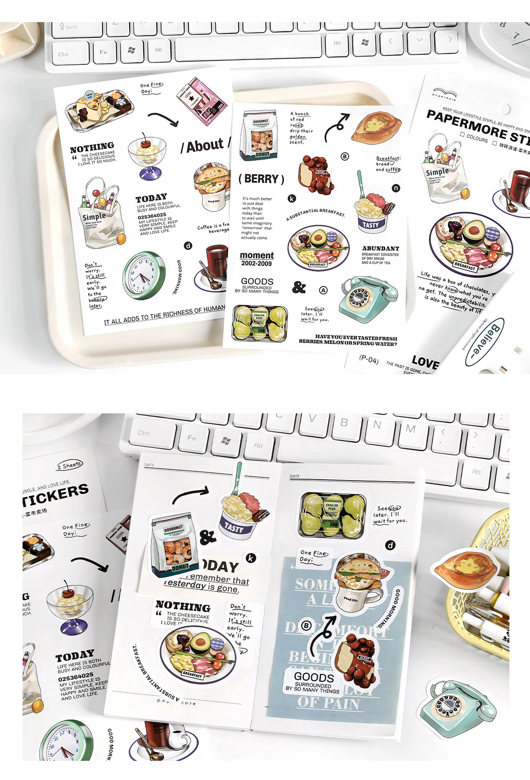 PaperMore 자체 접착 스티커 사소한 낭만적 인 시리즈 가벼운 복고풍 음식 작은 스티커 손 계정 장식 콜라주스토어 가기
