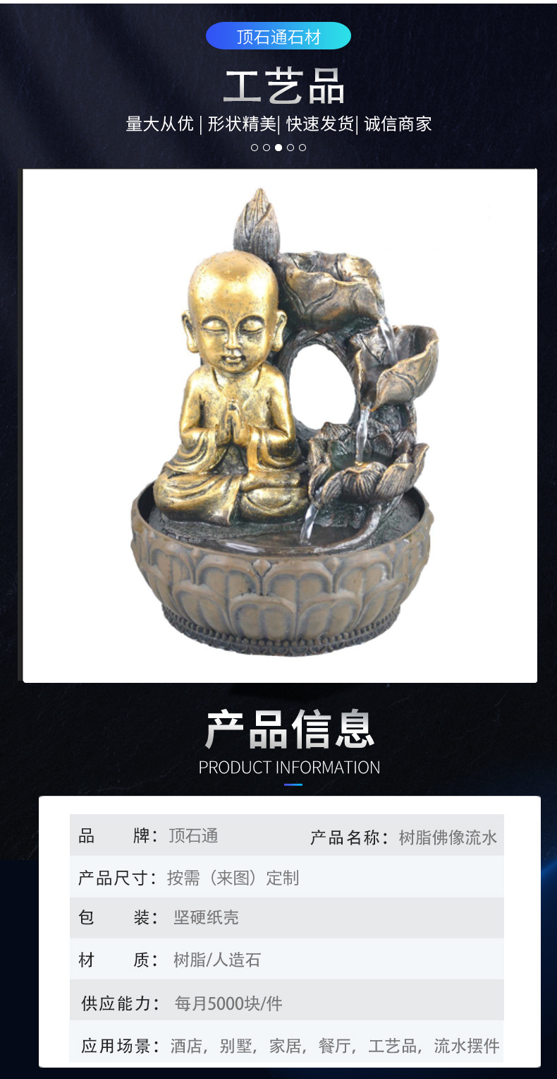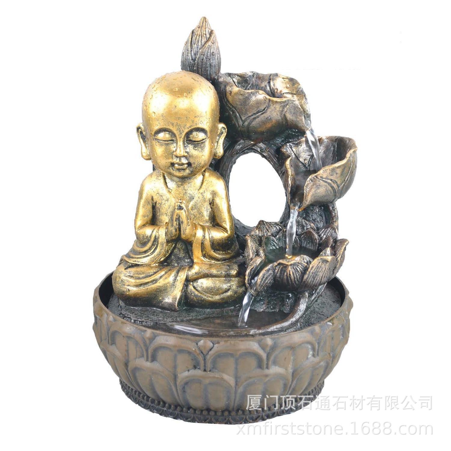데스크탑 장식 물 분수 풍수 볼 휠 거실 가습기 동남 아시아 홈 불상 수지 물