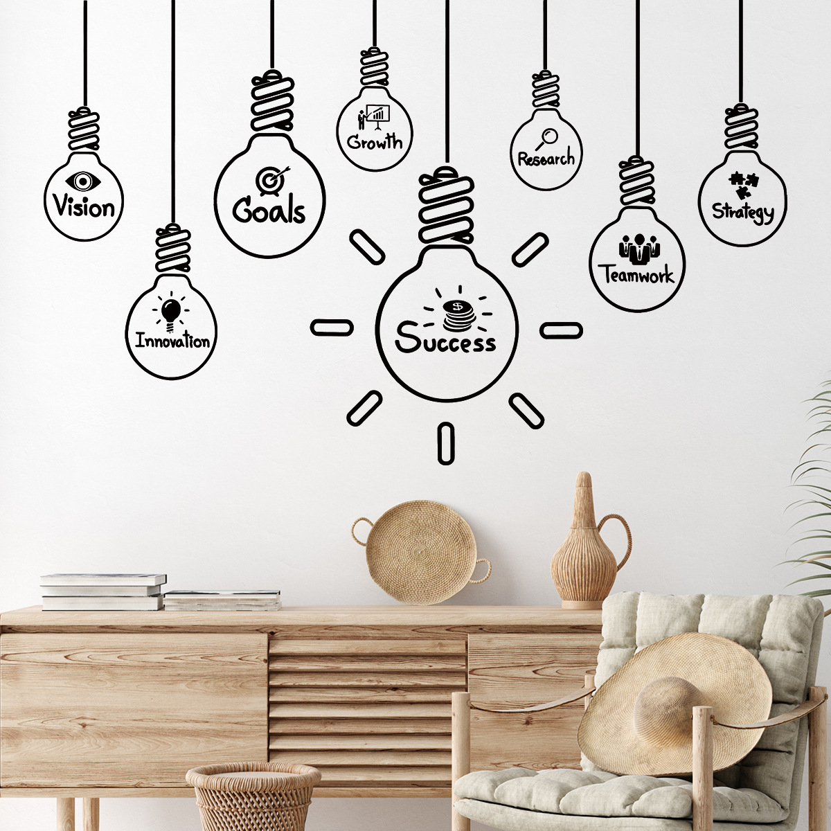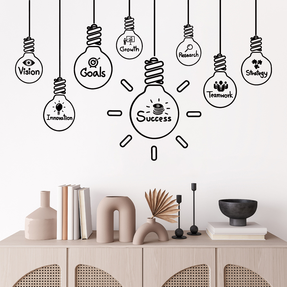 BR93736 만화 창조적 인 영감 전구 자체 접착 벽 스티커 거실 침실 방 배경 벽 장식 스티커스토어 가기