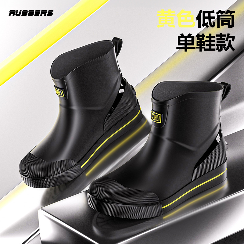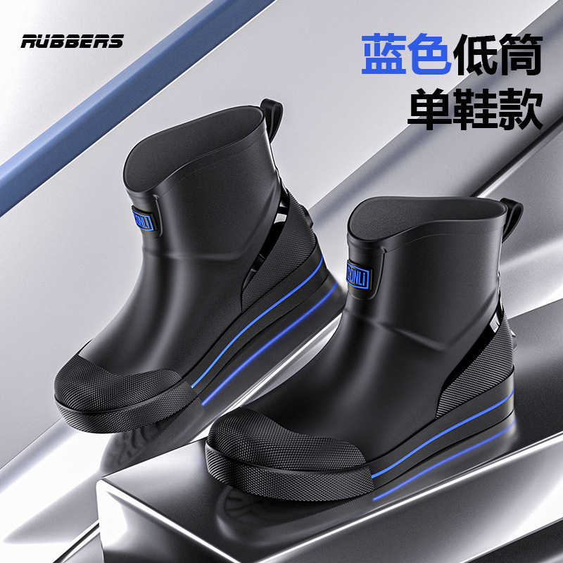 남성용 유럽 및 미국 스타일 중간 길이 레인부츠, 미끄럼 방지 방수 짧은 고무 밑창 낚시용 신발, 두꺼운 방수 기능스토어 가기