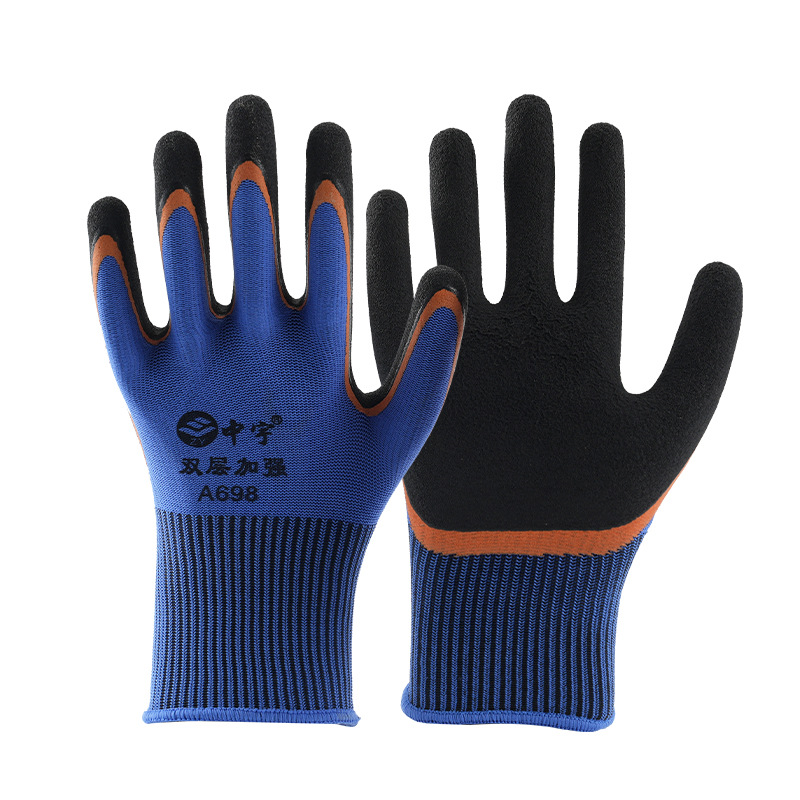 플랫 더블 레이어 라텍스 내마모성 장갑 미끄럼 편안한 통기성 산업 건설 현장 작업 장갑 공장 도매스토어 가기