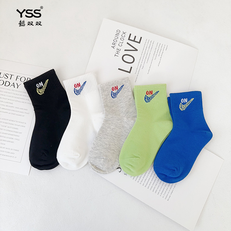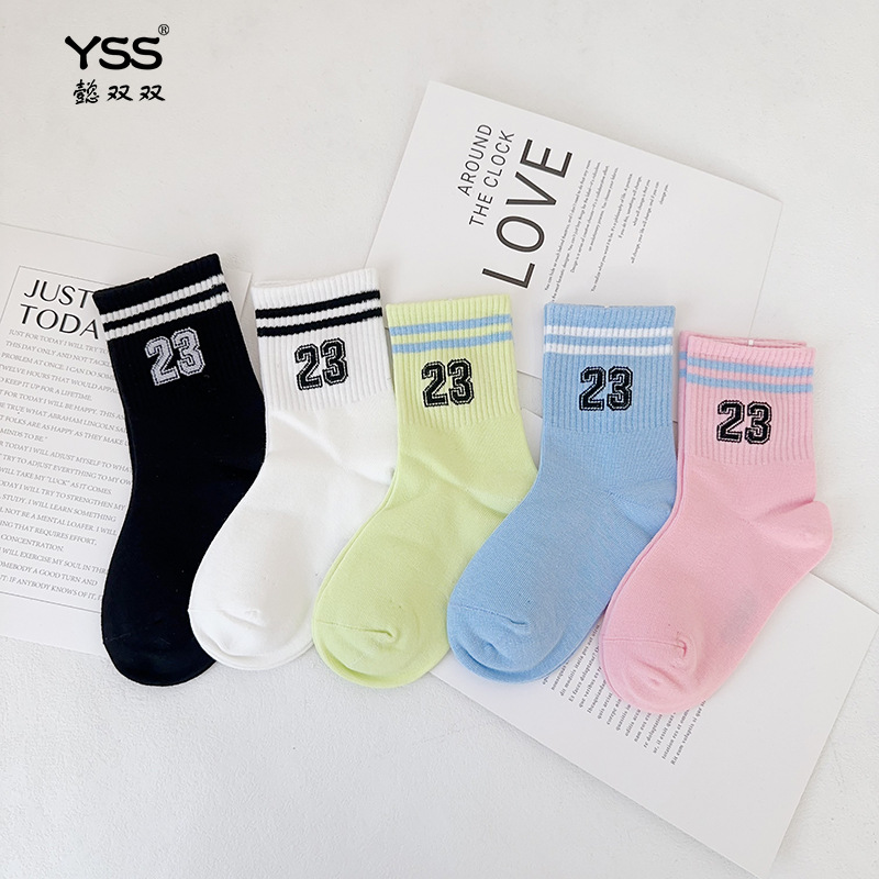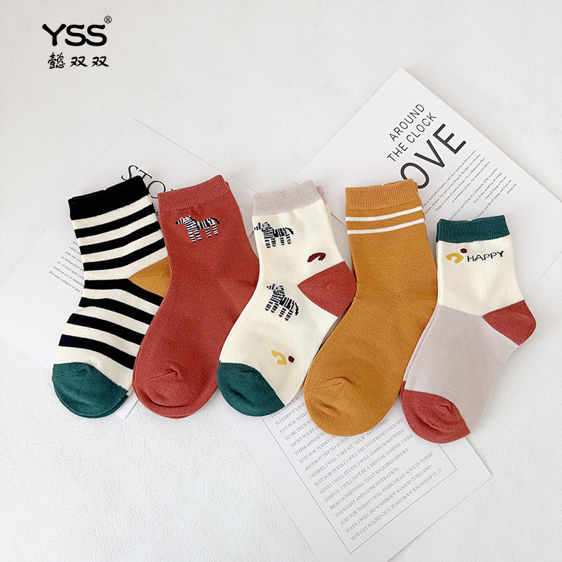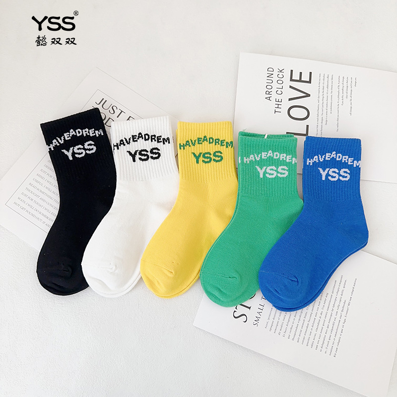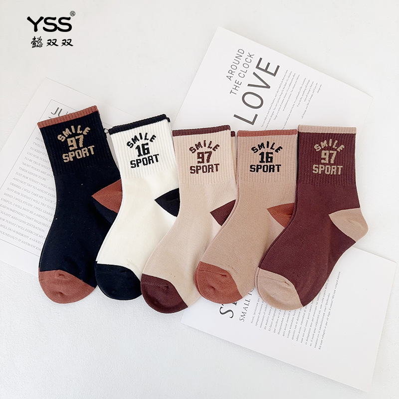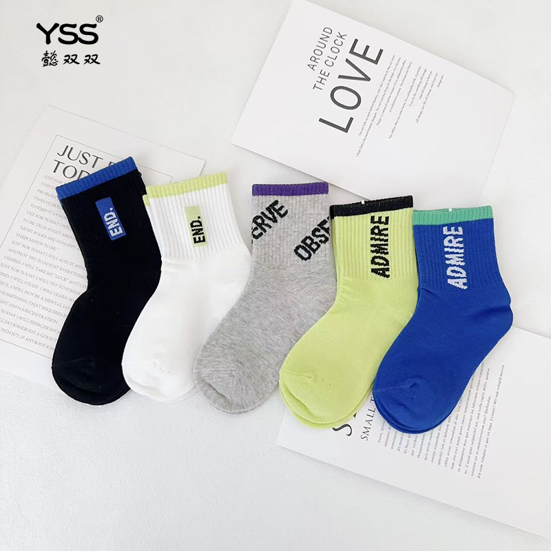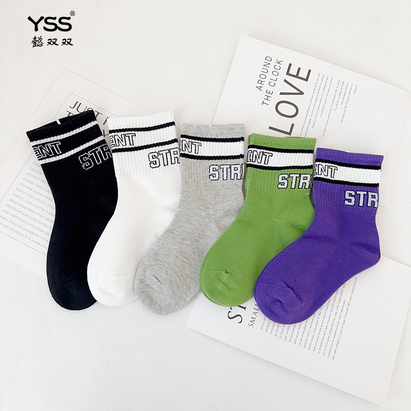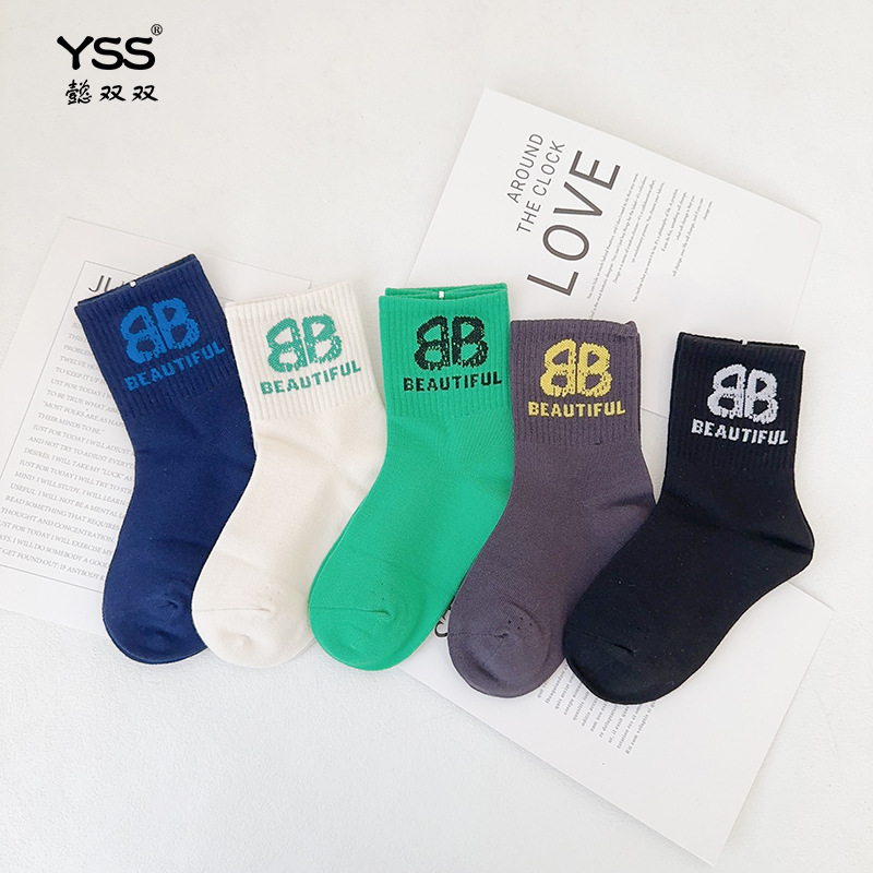 어린이 더블 양말 가을과 겨울 한국 패션 브랜드 중반 종아리 양말 코튼 소년 소녀 스포츠 양말 학생면 양말스토어 가기