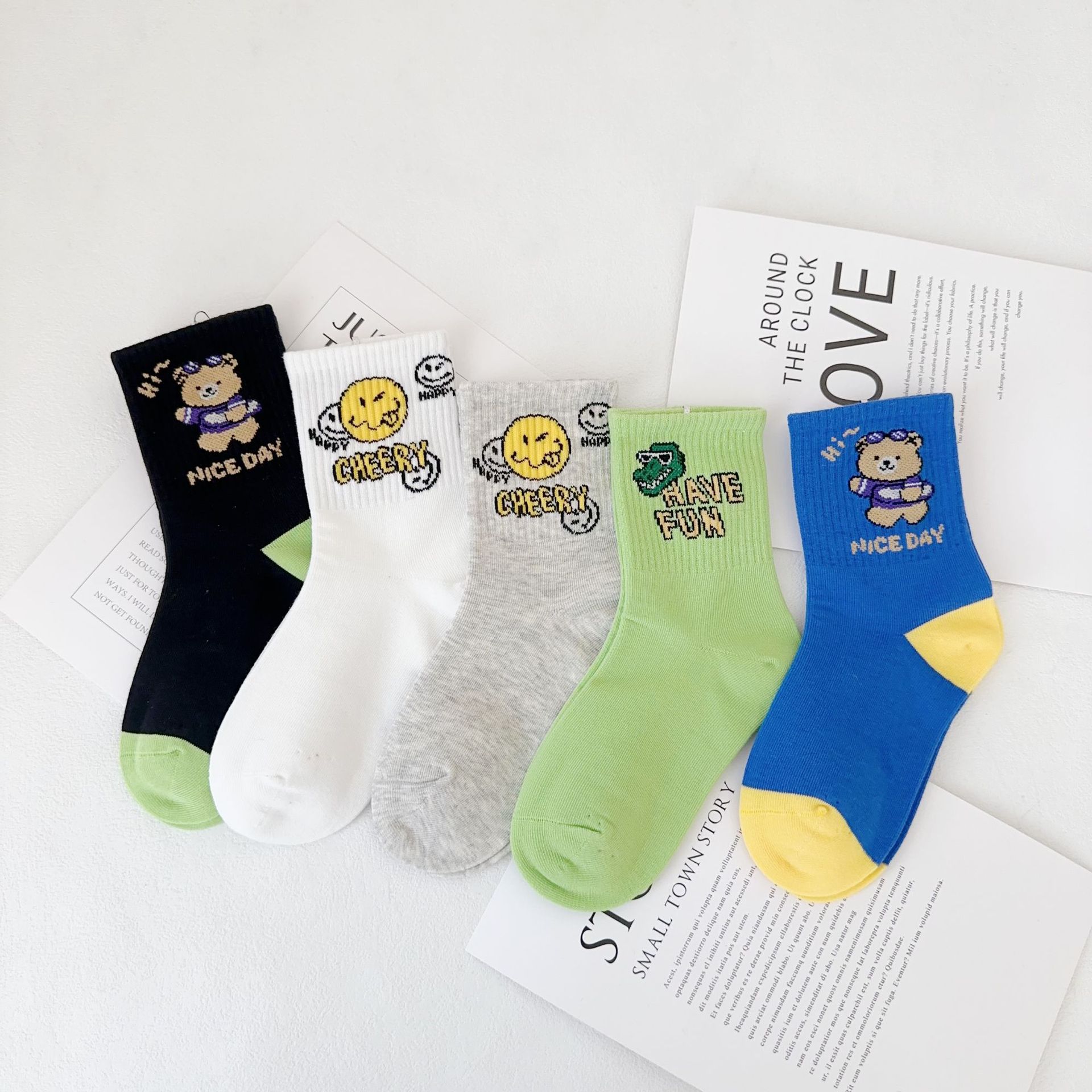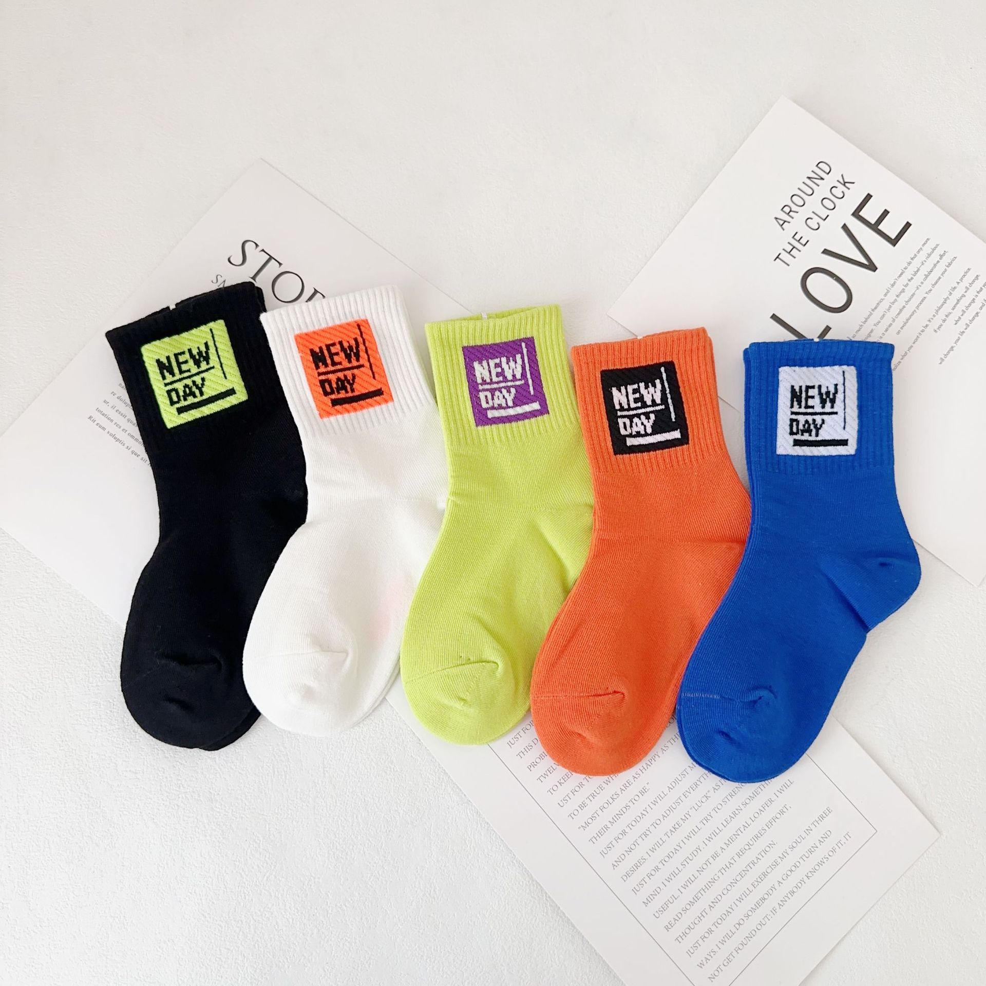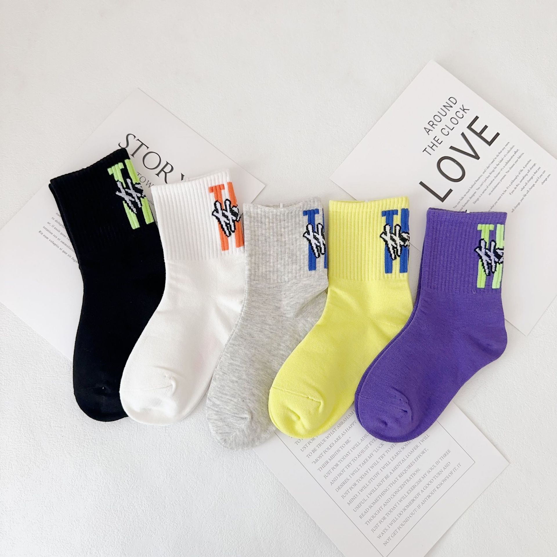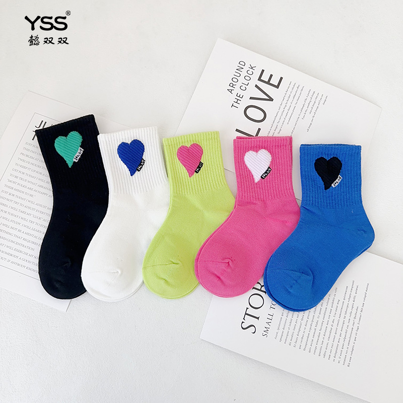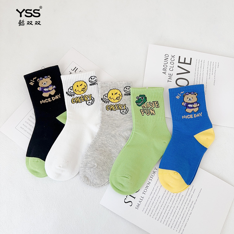 어린이 더블 양말 가을과 겨울 한국 패션 브랜드 중반 종아리 양말 코튼 소년 소녀 스포츠 양말 학생면 양말스토어 가기