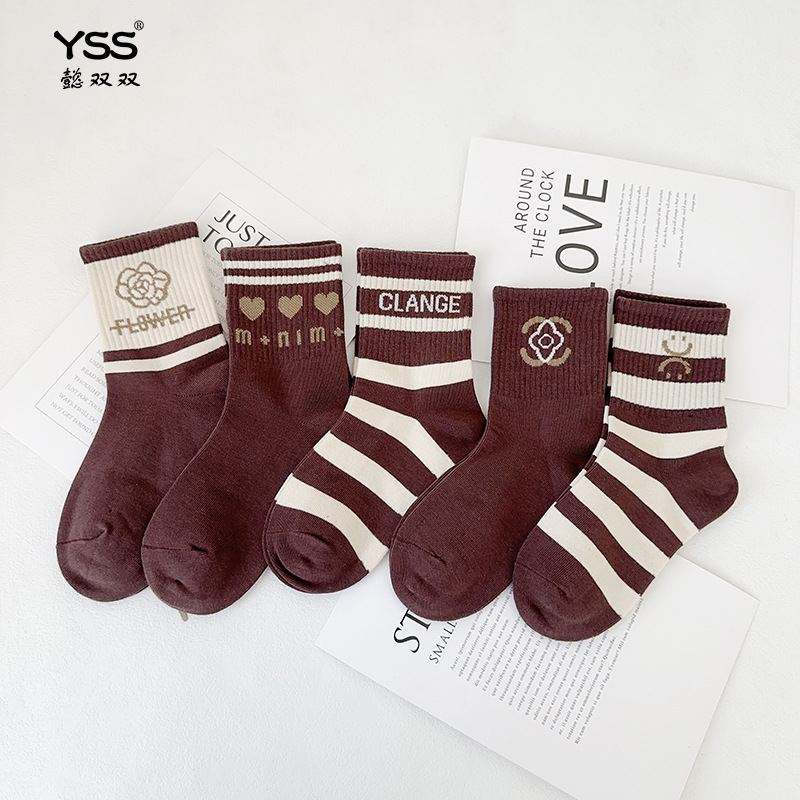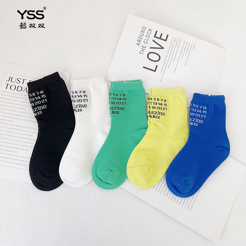 어린이 더블 양말 가을과 겨울 한국 패션 브랜드 중반 종아리 양말 코튼 소년 소녀 스포츠 양말 학생면 양말