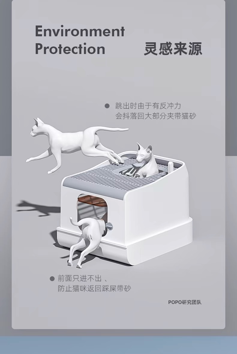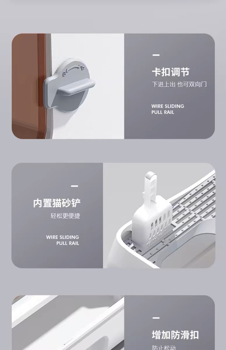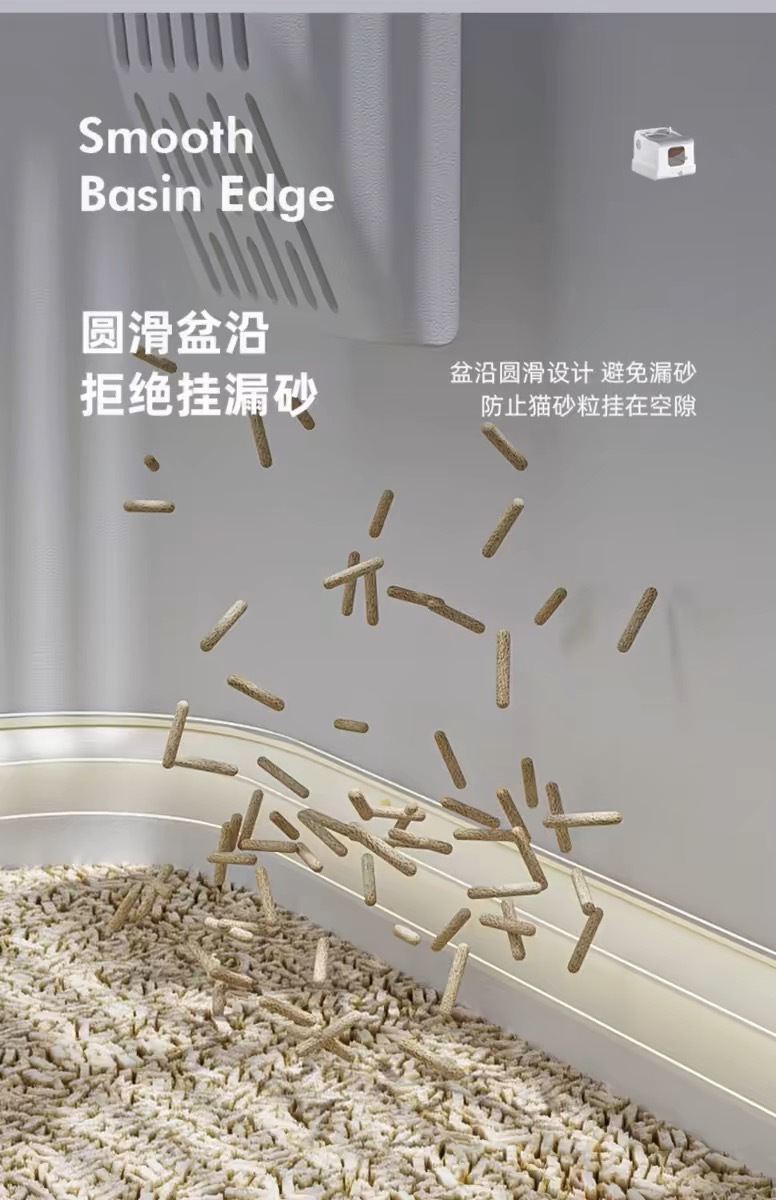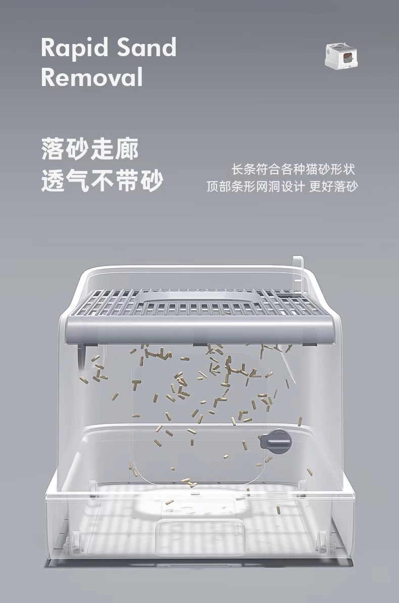• 전면 입구 및 출구 (표준 누출 방지 모래) + 고양이 쓰레기 패드