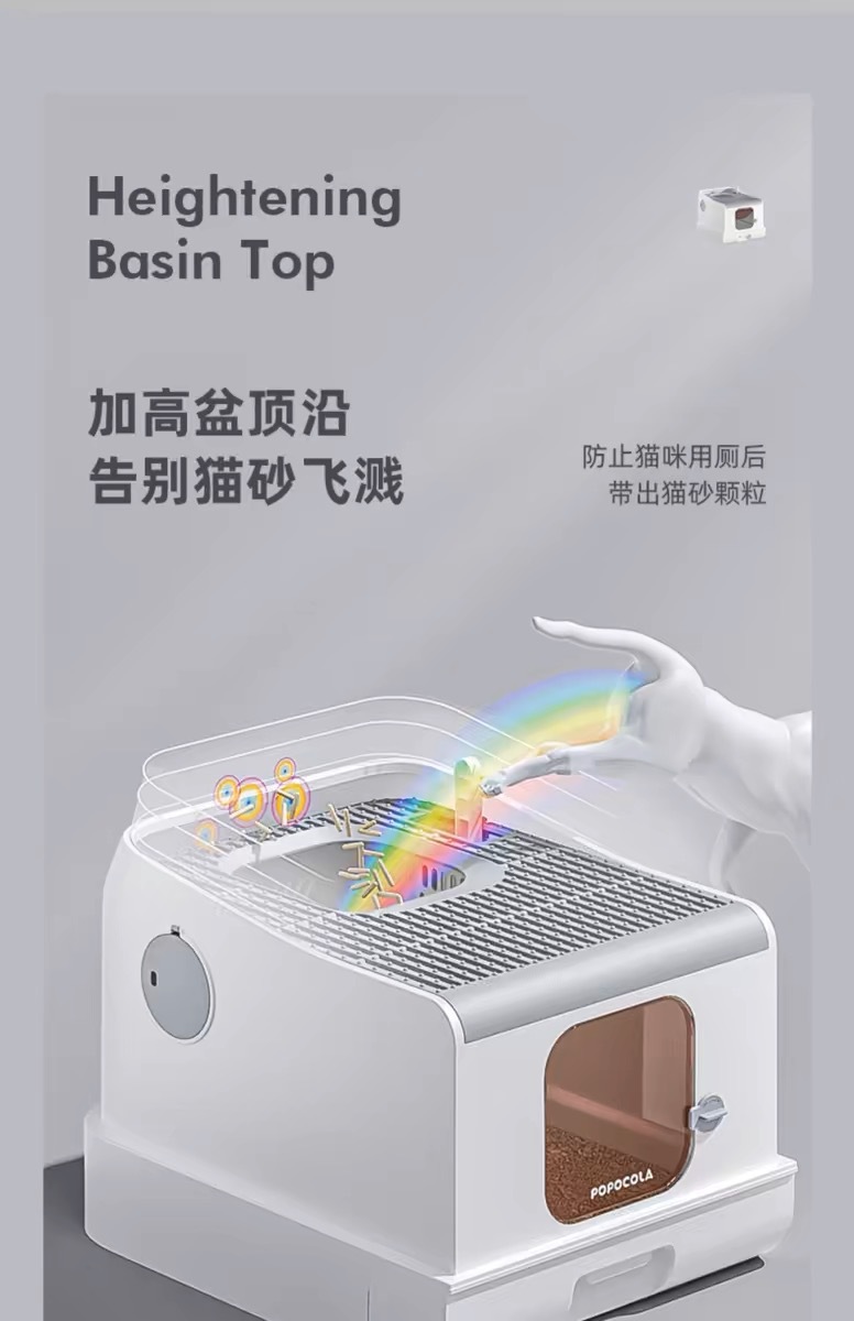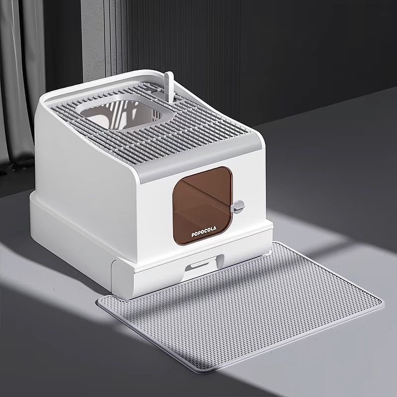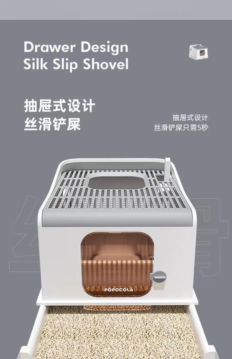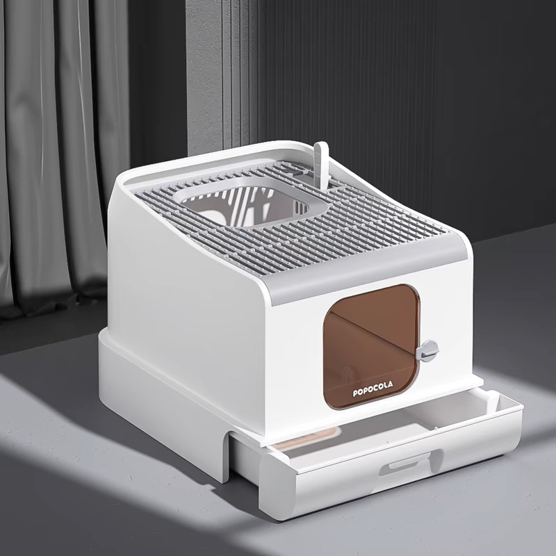 완전히 밀폐 된 새로운 고양이 쓰레기 상자 대형 서랍 푸시 인 고양이 화장실 전면 푸시 아웃 스플래시 방지 식품 그릇 탈취제