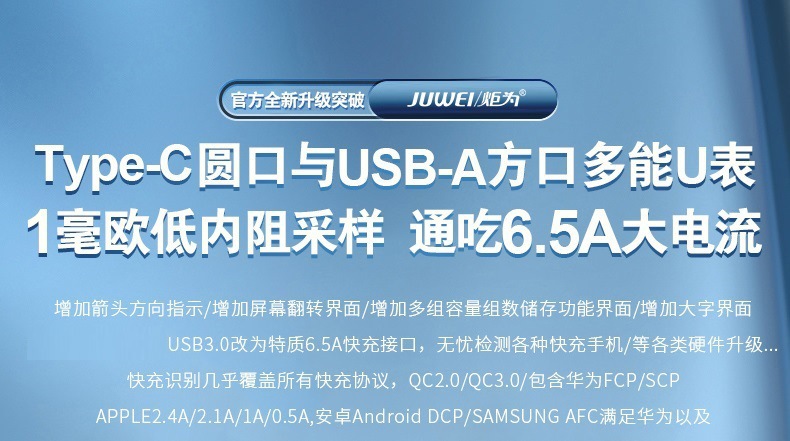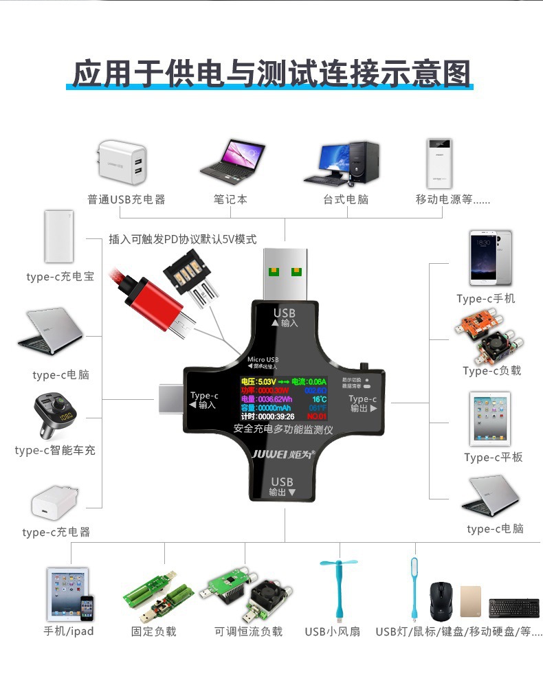 Ju Wei Type-C PD 빠른 충전 usb 테스터 충전기 감지기 DC 디지털 전압계 전류계