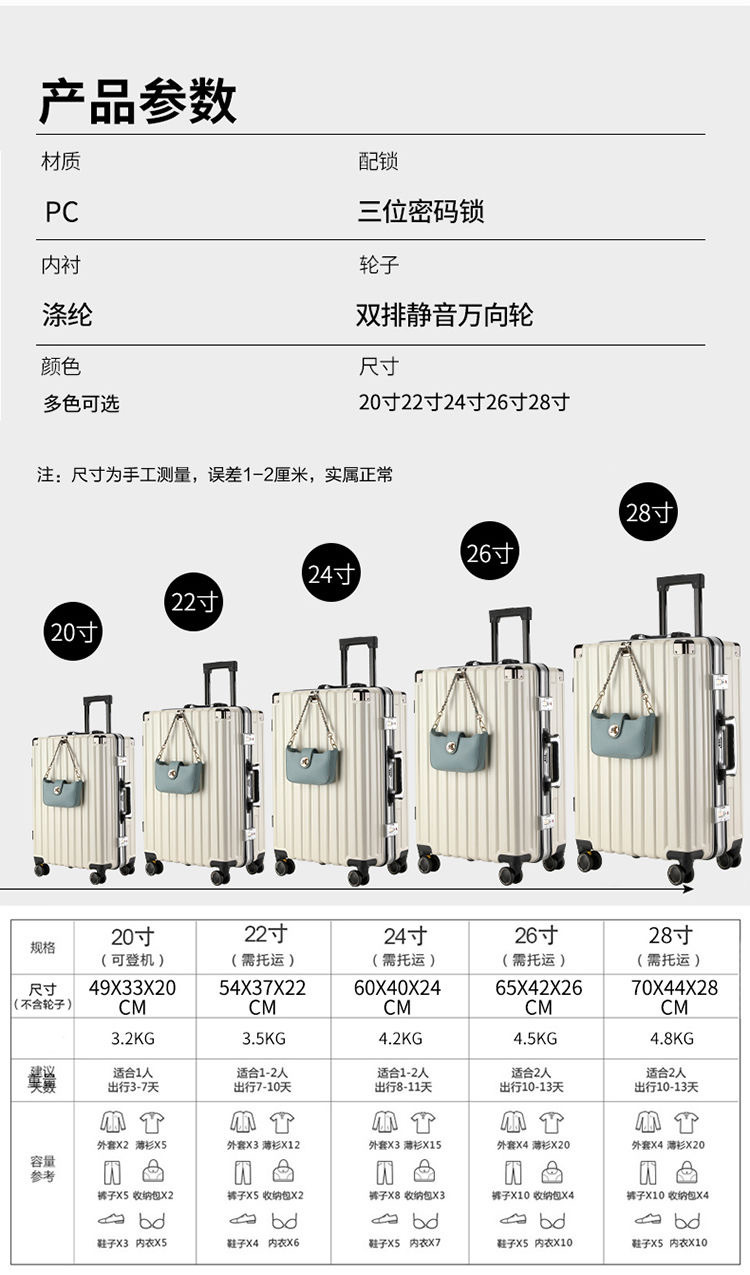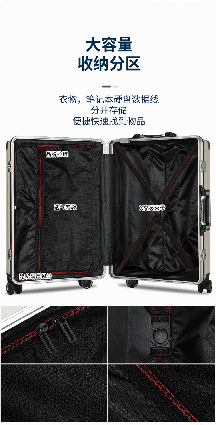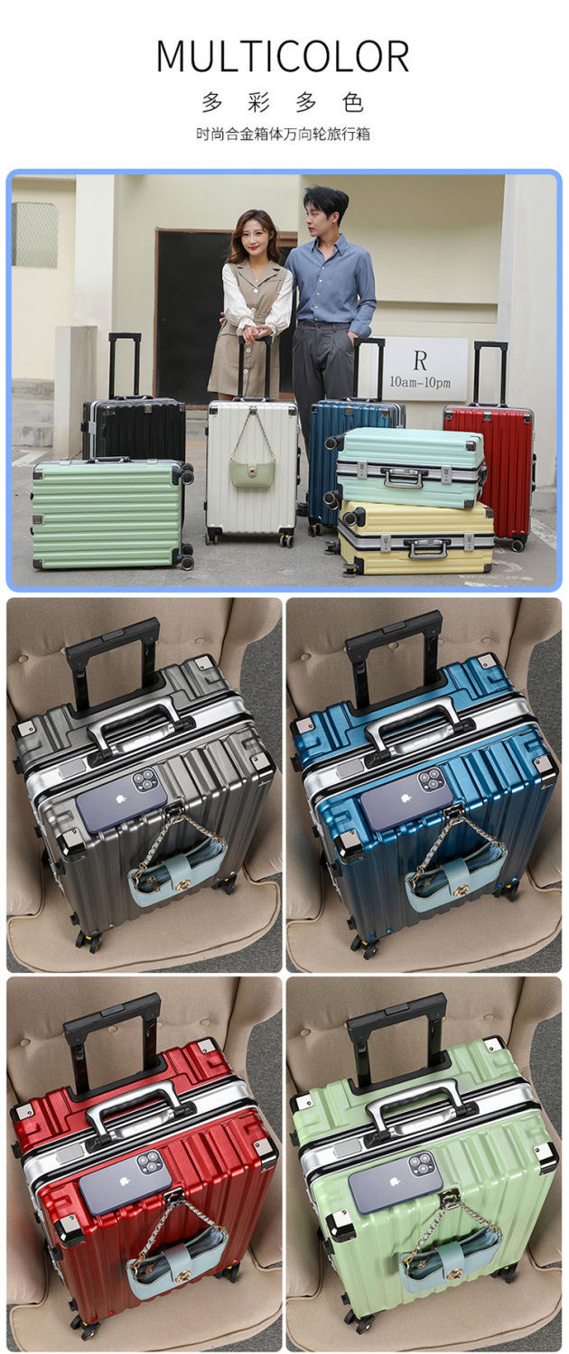 제조업체의 새로운 범용 휠 트롤리 케이스 유니섹스 알루미늄 프레임 가방 학생 내구성 수하물 도매스토어 가기