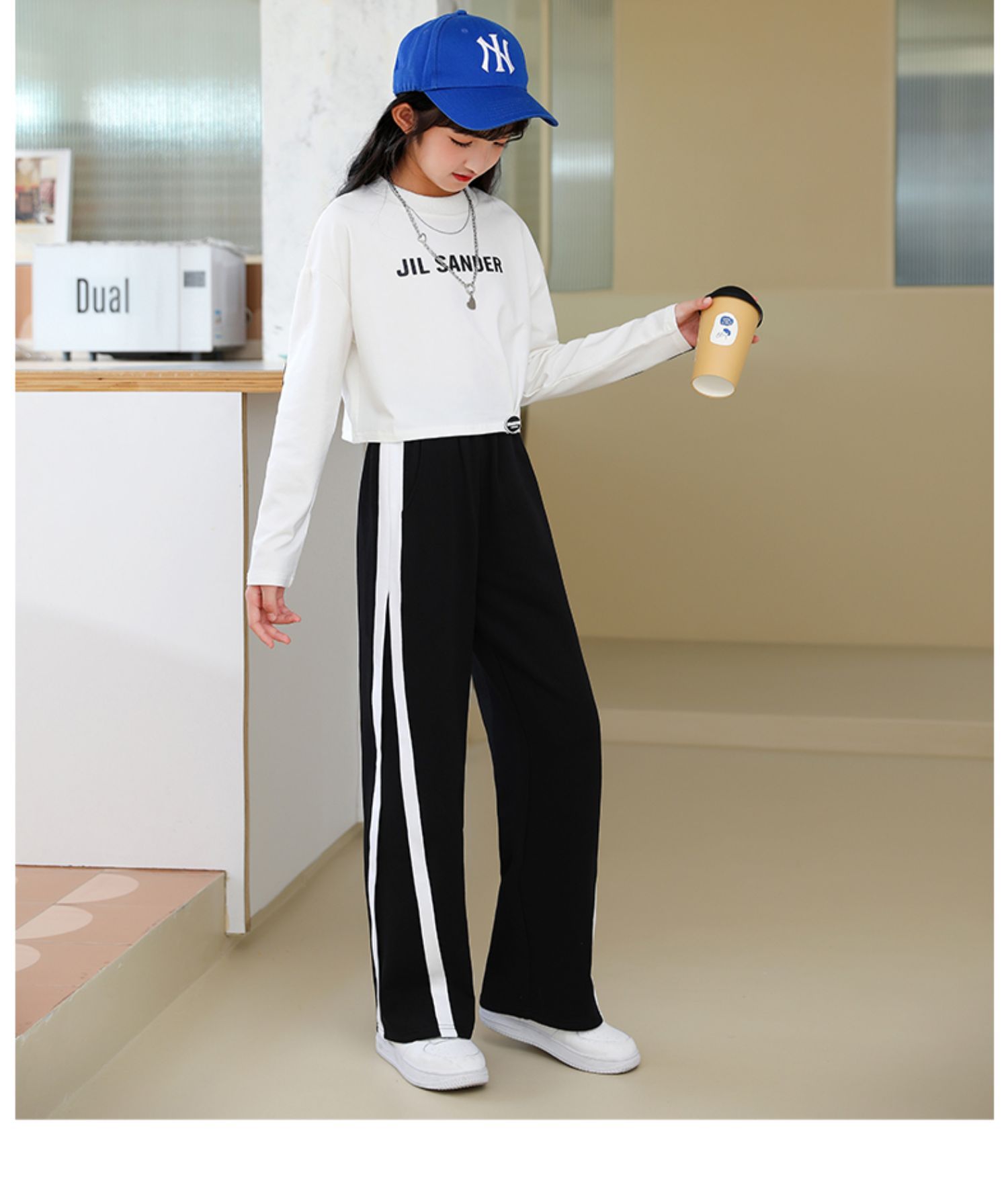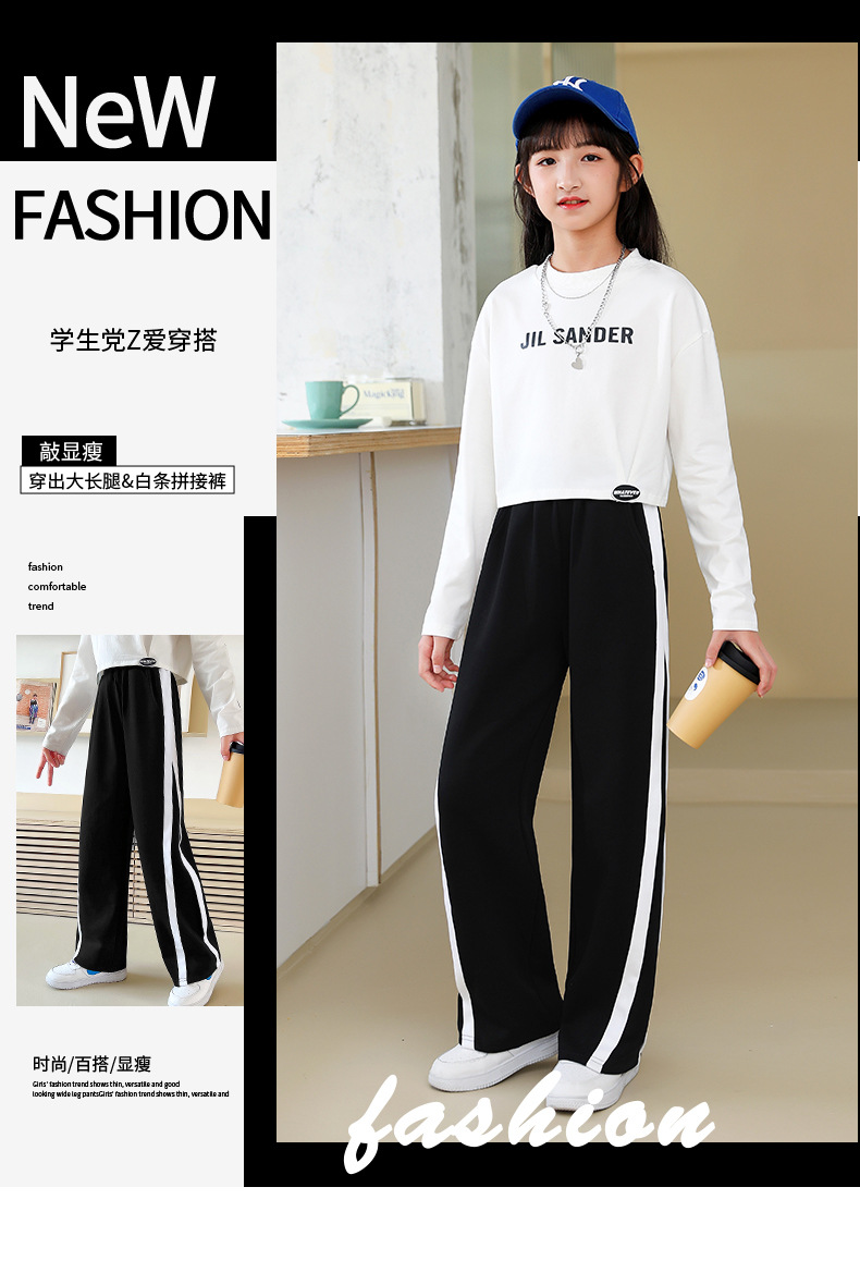 소녀의 넓은 다리 바지 어린이 소녀 여름 바지 더 오래된 어린이 봄과 여름 바지 스포츠 바지 검은 스웨트 팬츠 여름 얇은스토어 가기