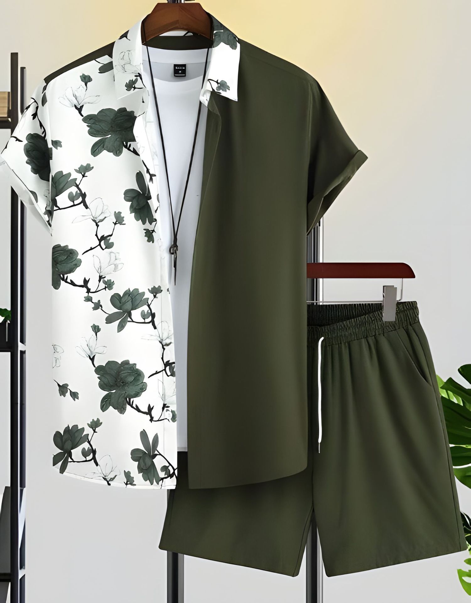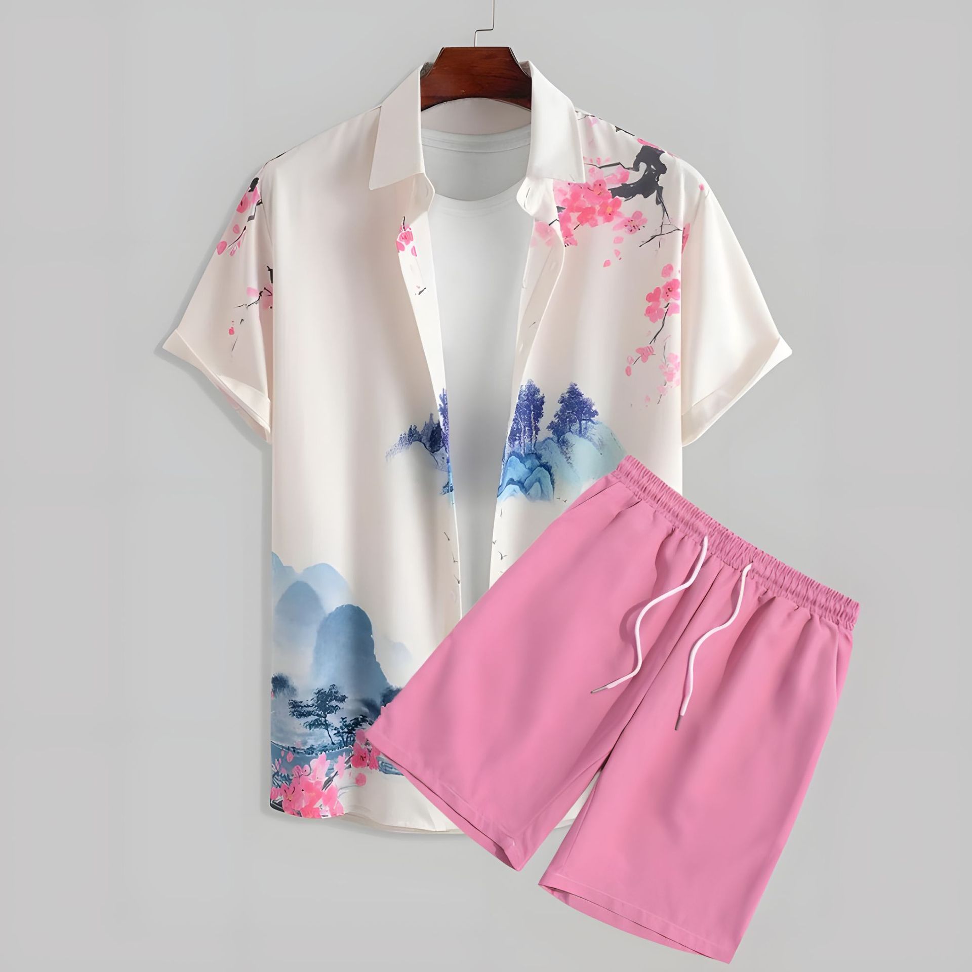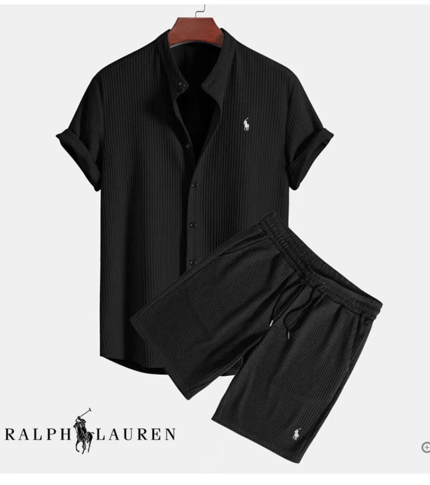 2024 유럽 및 미국 여름 스트리트 패션 흑백 스트라이프 하와이안 비치 남성 셔츠 세트 유럽 및 미국 스타일스토어 가기