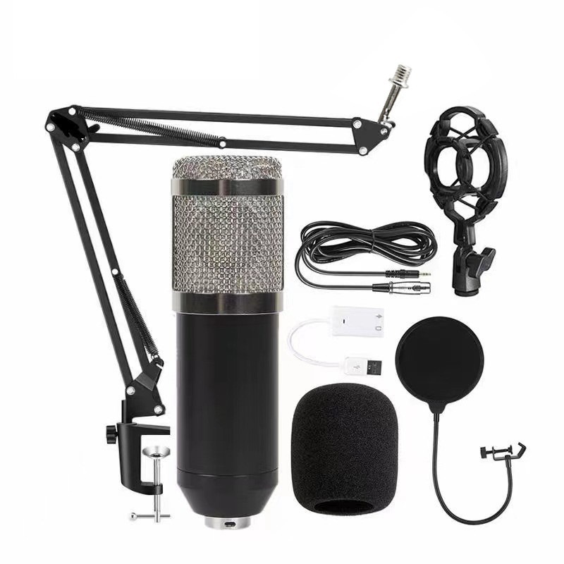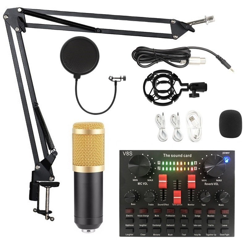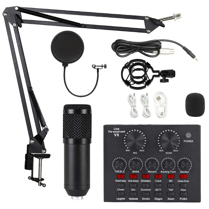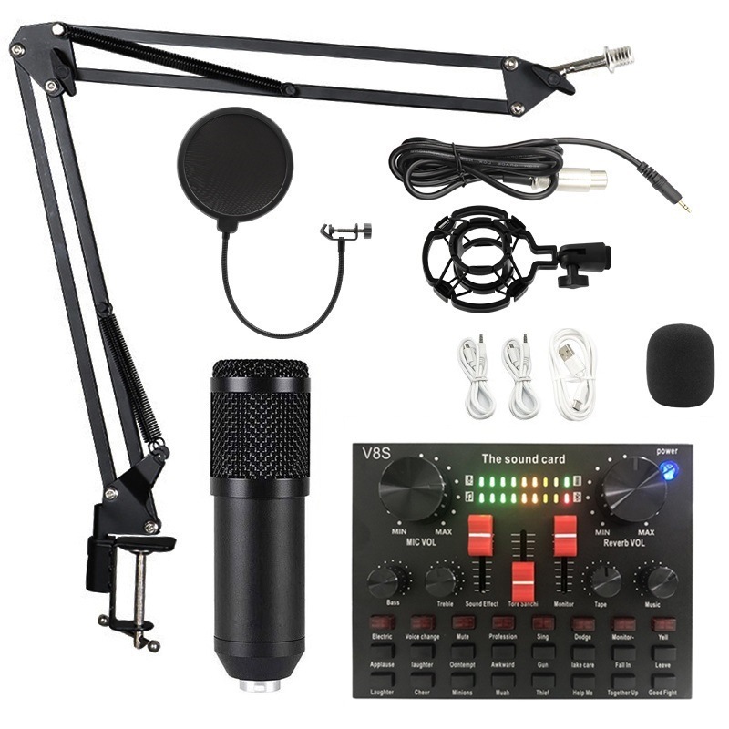 금속 BM800 콘덴서 마이크 V8 사운드 카드 휴대 전화 컴퓨터 앵커 K 노래 녹음 라이브 방송 스탠드 세트