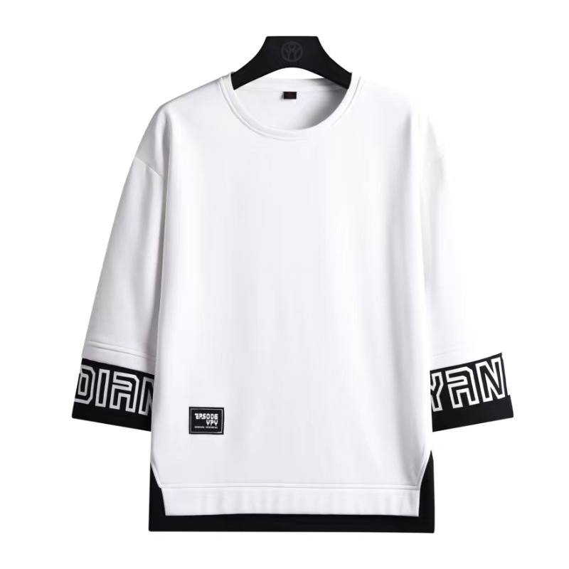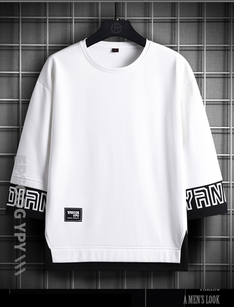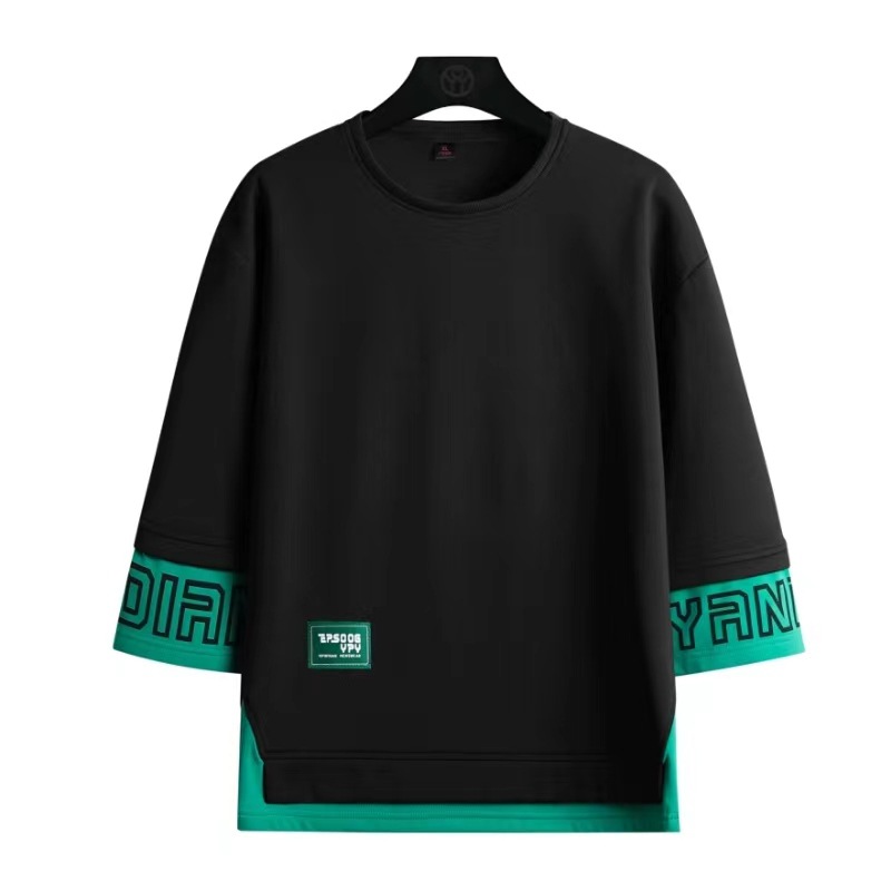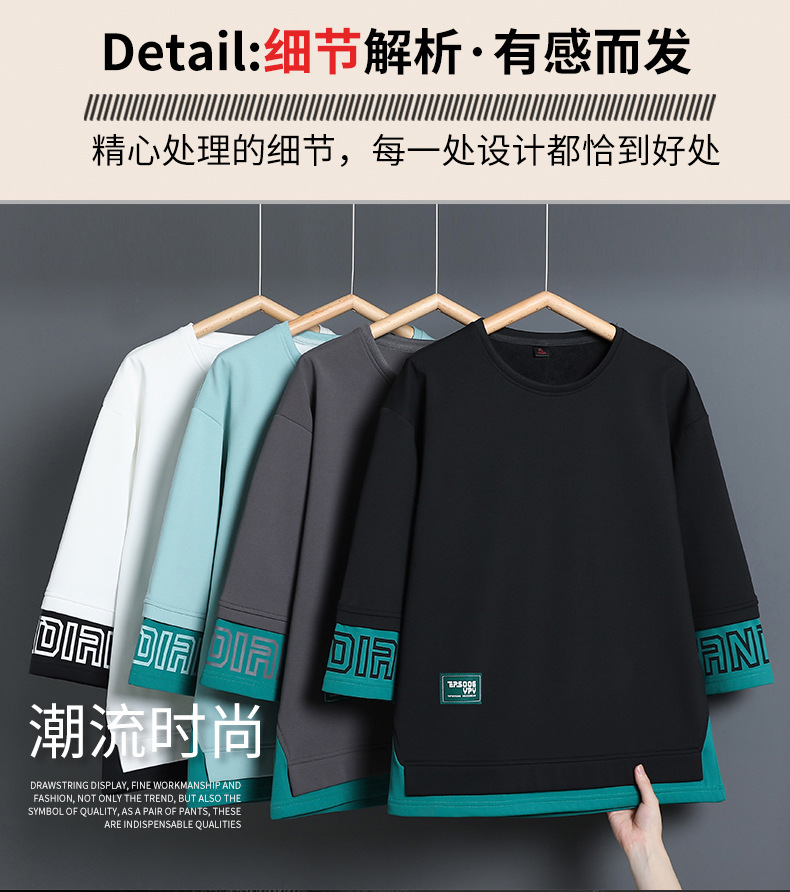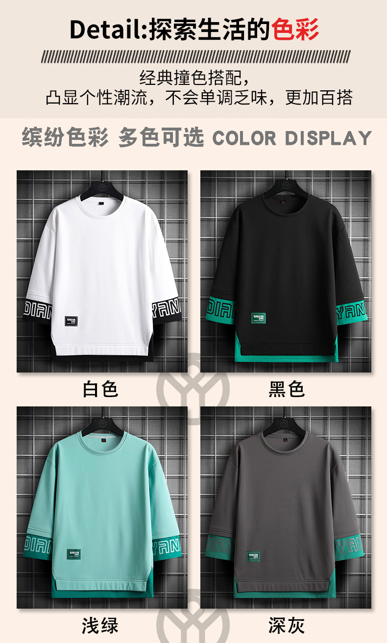 대외 무역 남자 긴팔 둥근 목 티셔츠 한국 스타일 컬러 매칭 가짜 투피스 단색 3/4 소매 가을 뉴 플러스 사이즈 남성 의류스토어 가기