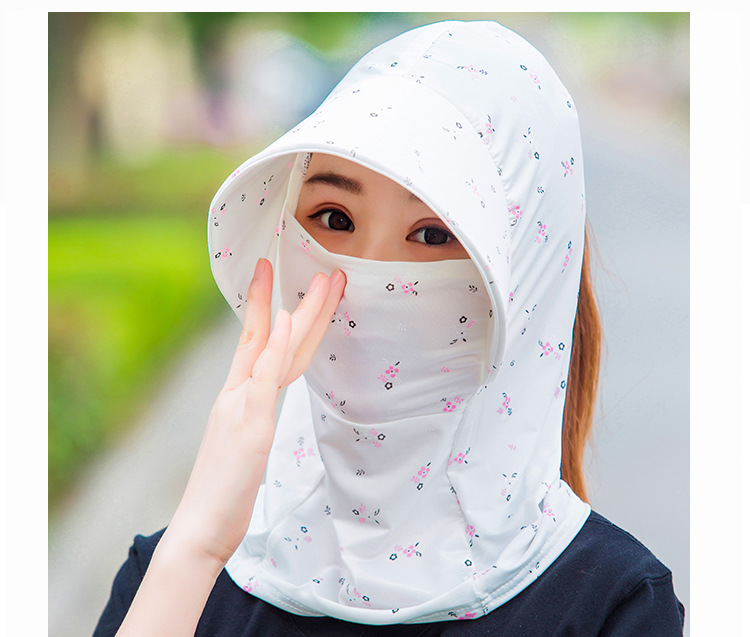 태양 모자 여성 봄과 여름 큰 테두리 태양 모자 야외 사이클링 커버 얼굴 태양 모자 마스크 통합 목 보호 아이스 실크