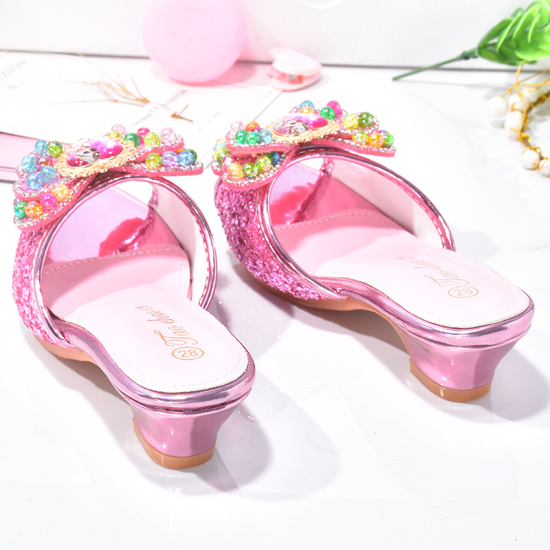 냉동 블루 어린이 슬리퍼 여름 소녀 하이힐 야외 미끄럼 방지 공주 크리스탈 신발 어린이 샌들
