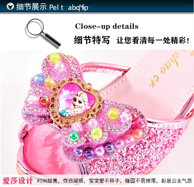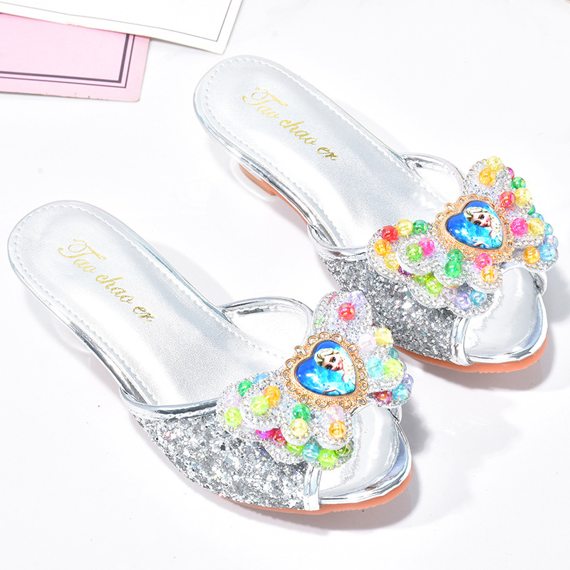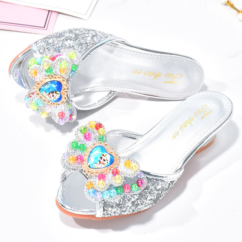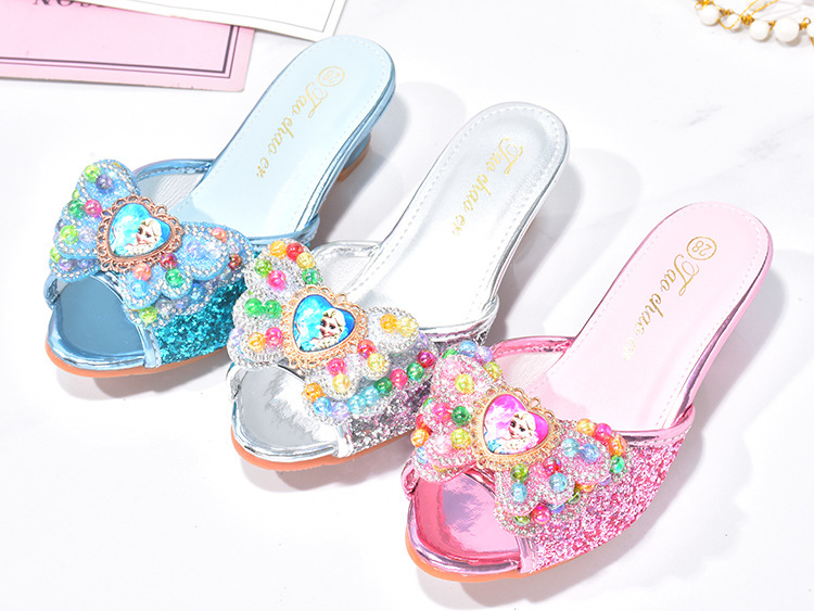 냉동 블루 어린이 슬리퍼 여름 소녀 하이힐 야외 미끄럼 방지 공주 크리스탈 신발 어린이 샌들스토어 가기