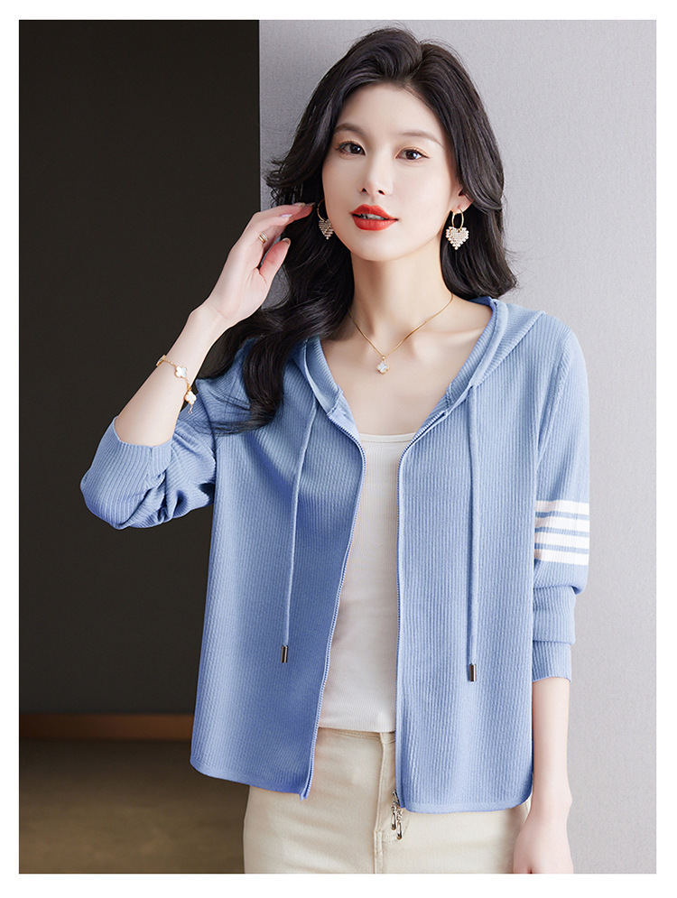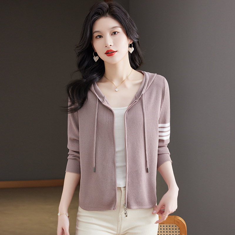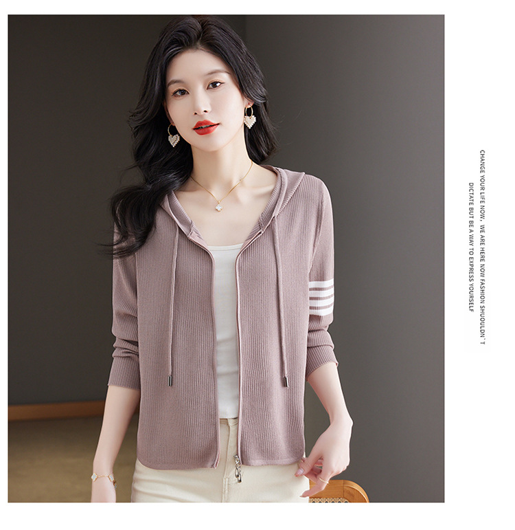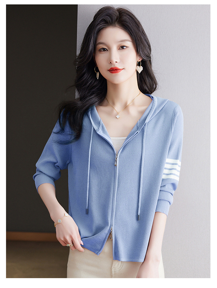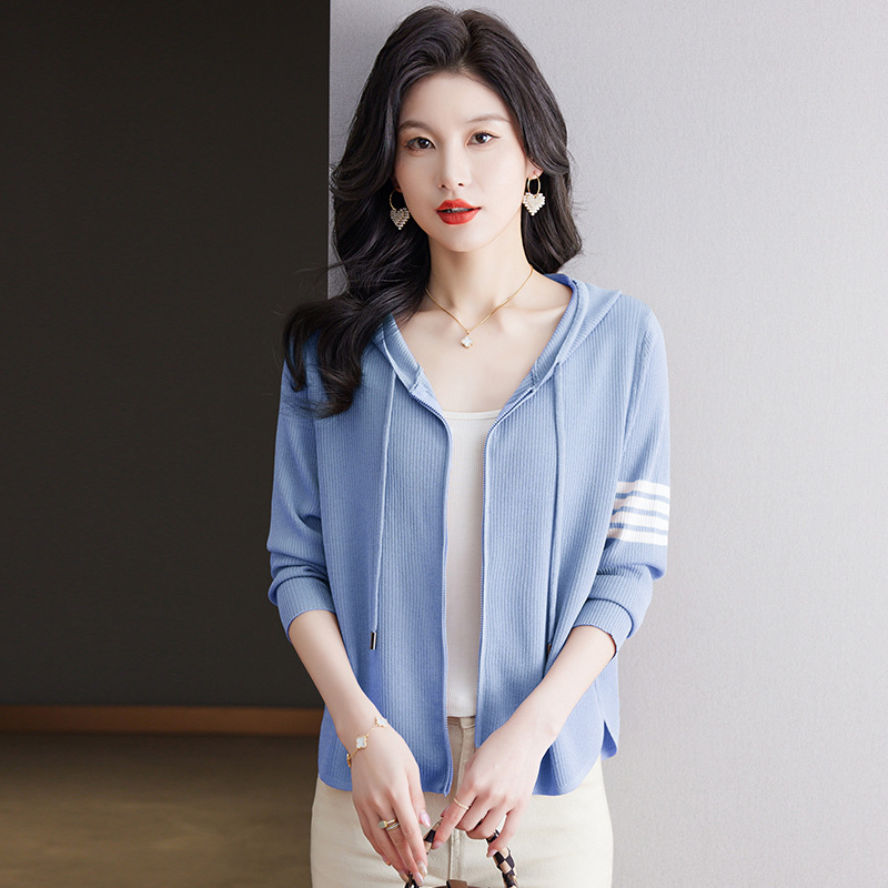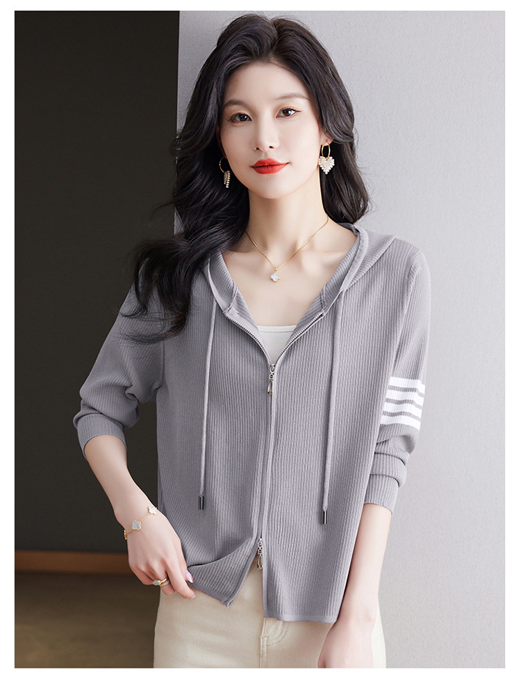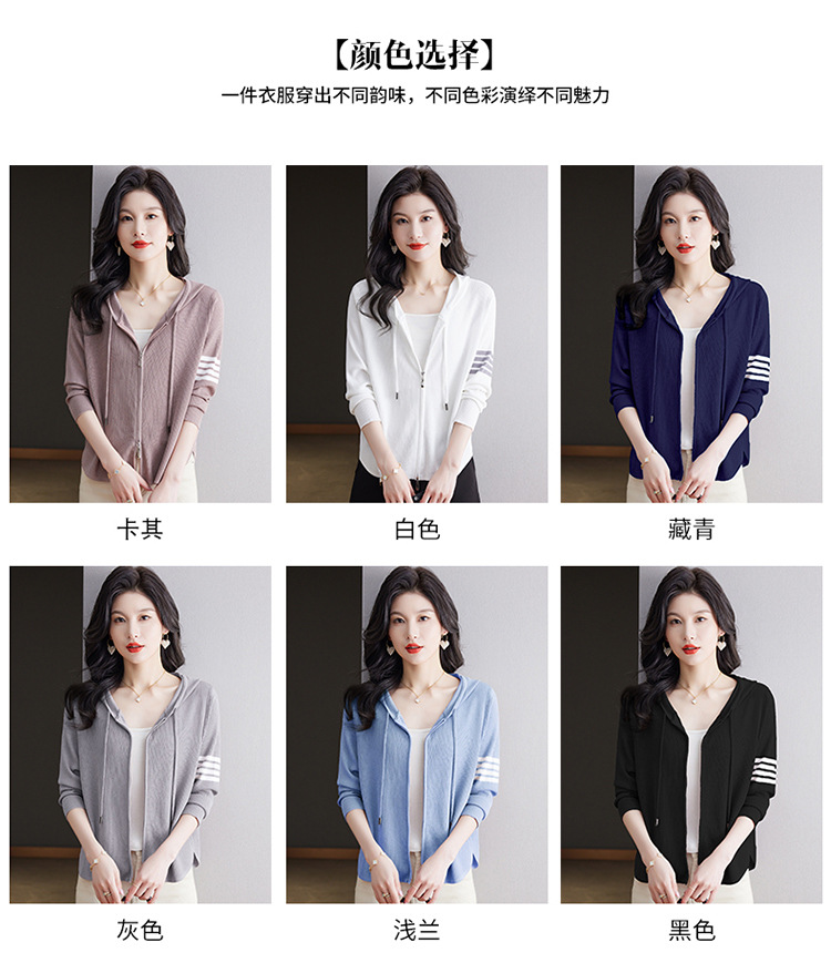 새로운 여름 아이스 실크 후드 스웨터 외부 태양 보호 코트를 2024 여성을위한 멀 베리 실크 더블 지퍼 니트 카디건