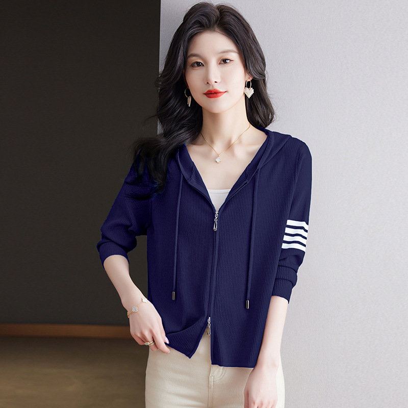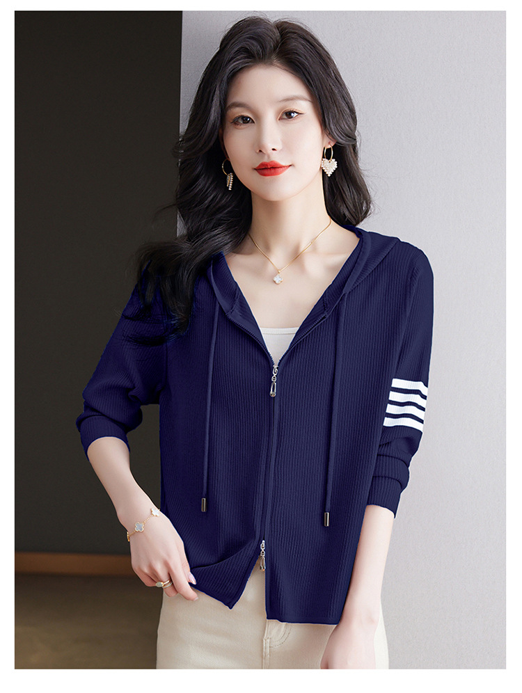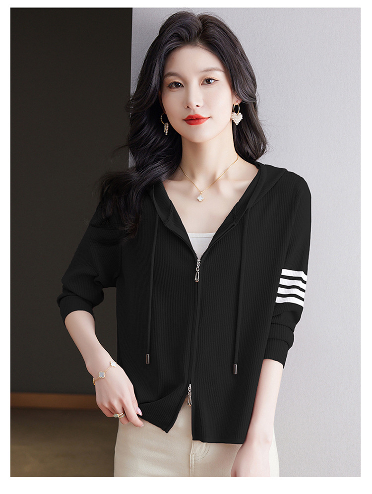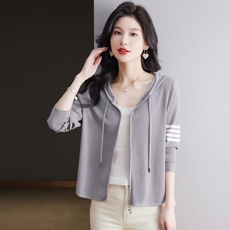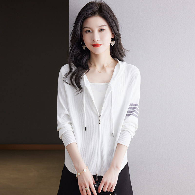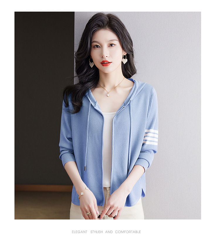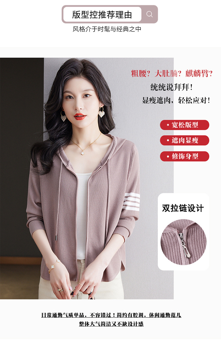 새로운 여름 아이스 실크 후드 스웨터 외부 태양 보호 코트를 2024 여성을위한 멀 베리 실크 더블 지퍼 니트 카디건