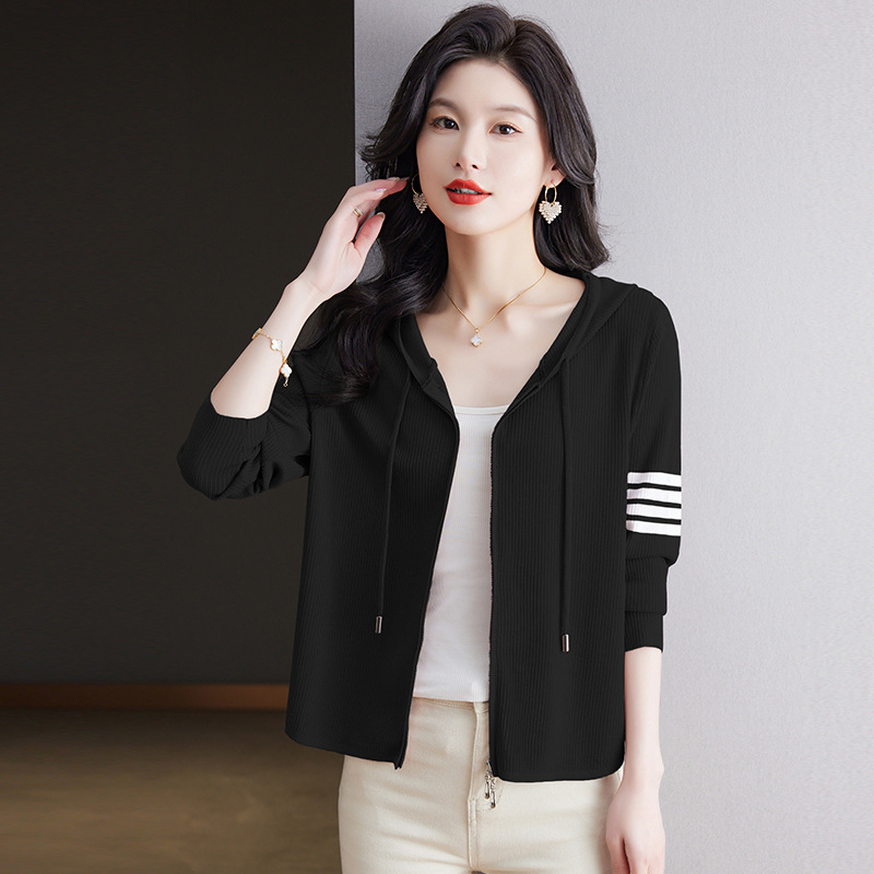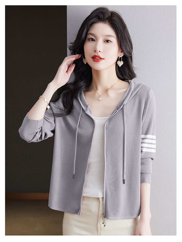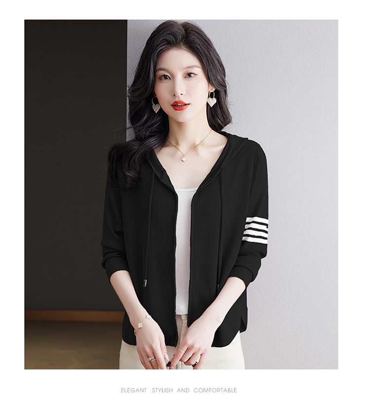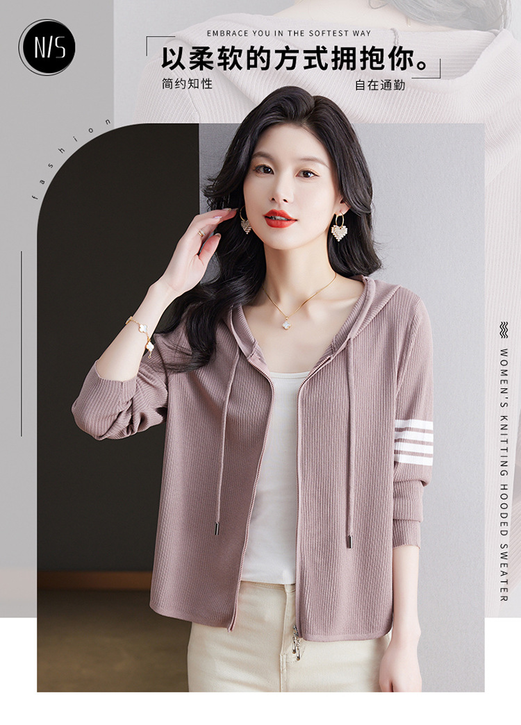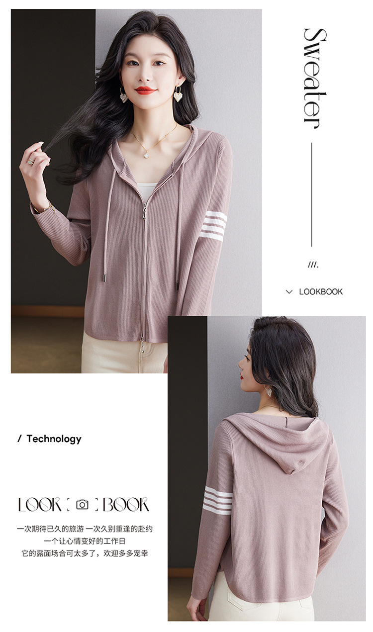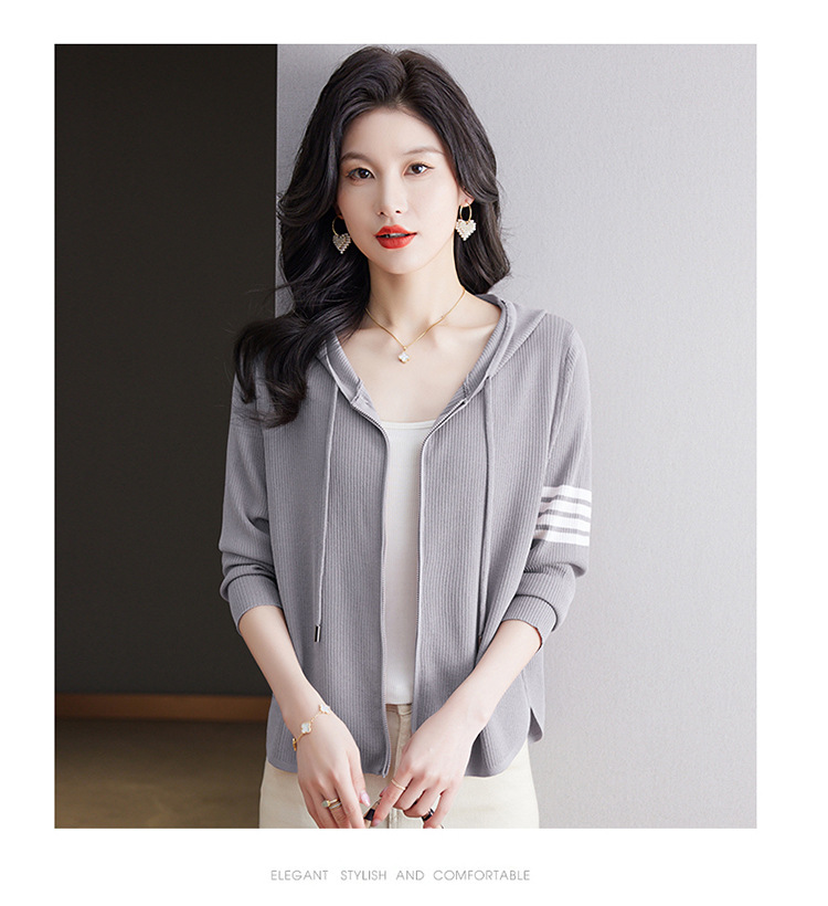 새로운 여름 아이스 실크 후드 스웨터 외부 태양 보호 코트를 2024 여성을위한 멀 베리 실크 더블 지퍼 니트 카디건