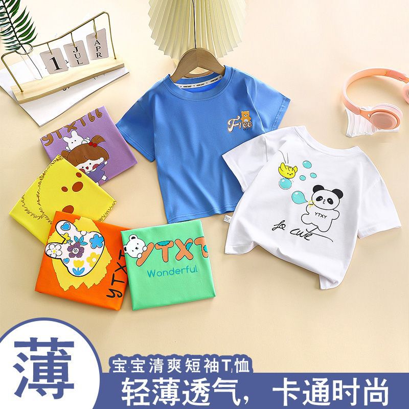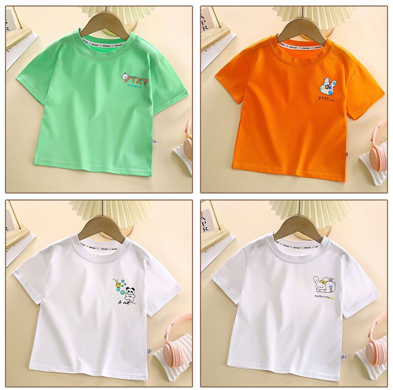 여름 어린이 반팔 소녀 겉옷 올 매치 티셔츠 소년 한국식 튀긴 거리 반팔 셔츠 아기 아동복 도매스토어 가기