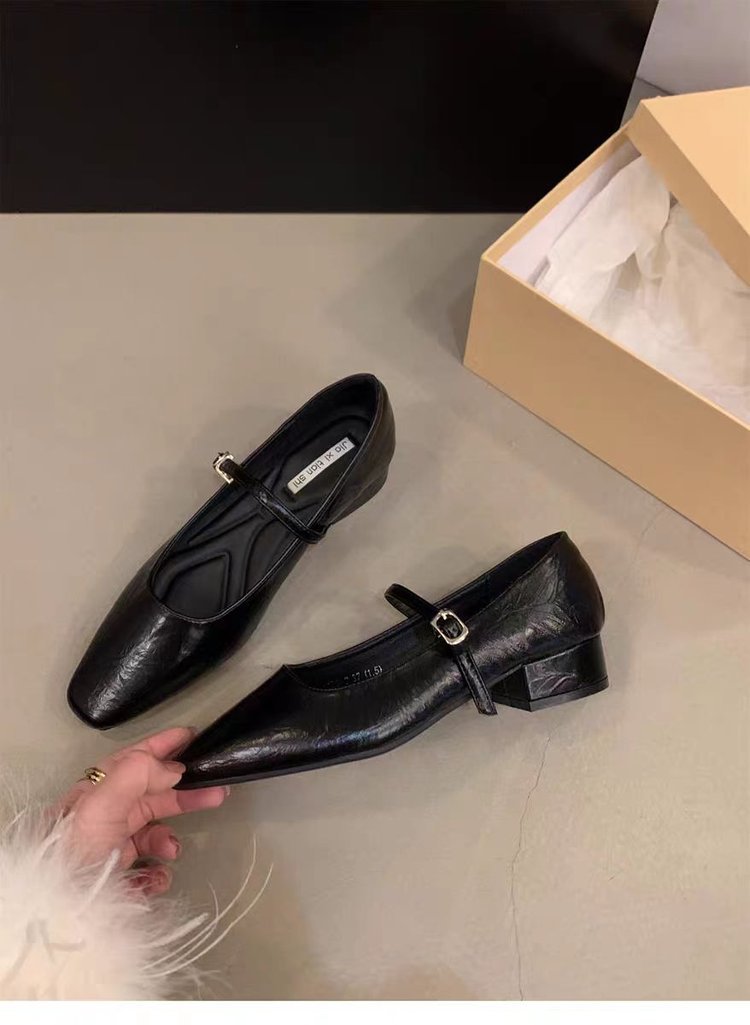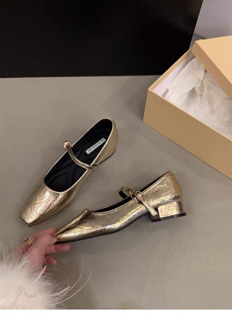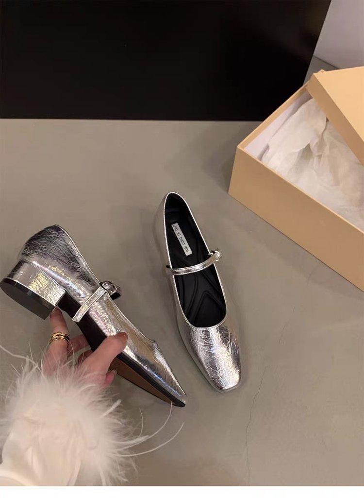 청키 힐 실버 메리 제인 싱글 레이어 신발 새로운 봄과 가을 스퀘어 토 프랑스 스타일의 봄 원피스 이브닝 슈즈를 2024 여성 신발스토어 가기