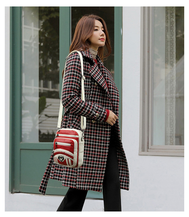 여성 가방 2024 봄과 여름 새로운 어깨 메신저 가방 중년 여성 가방 대비 컬러 다층 가죽 대용량 소형 가방