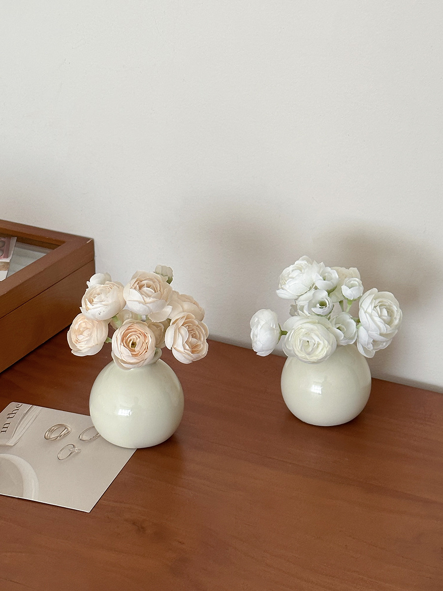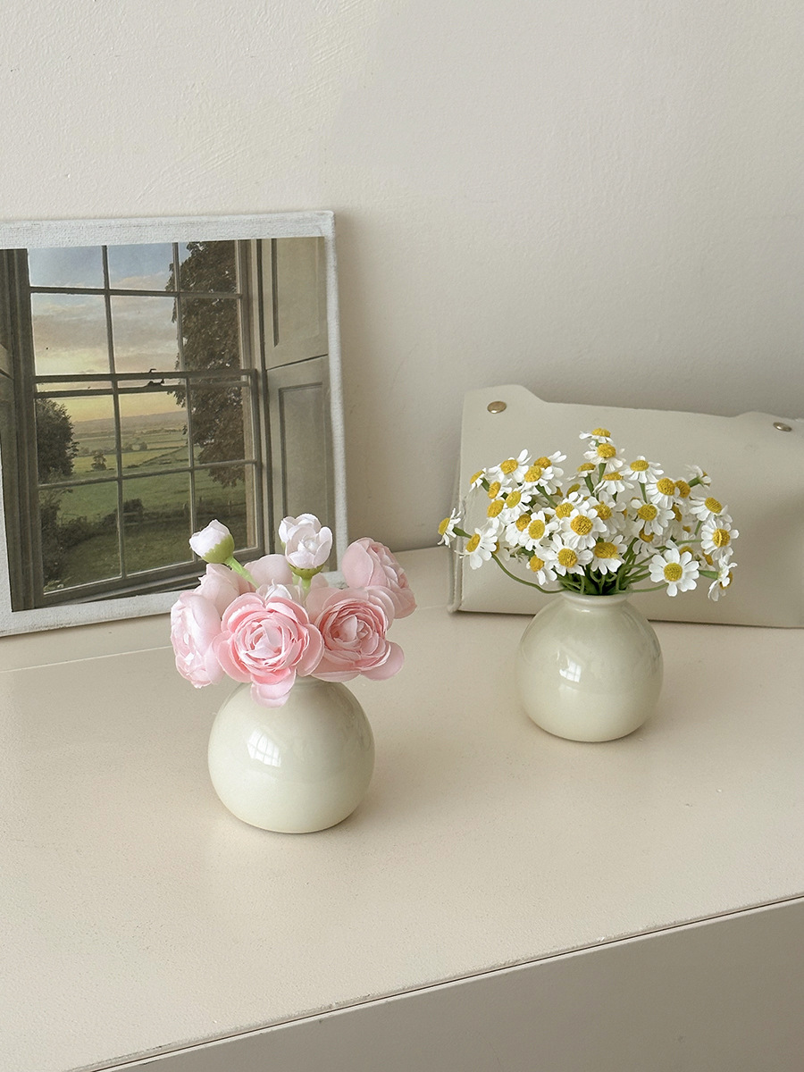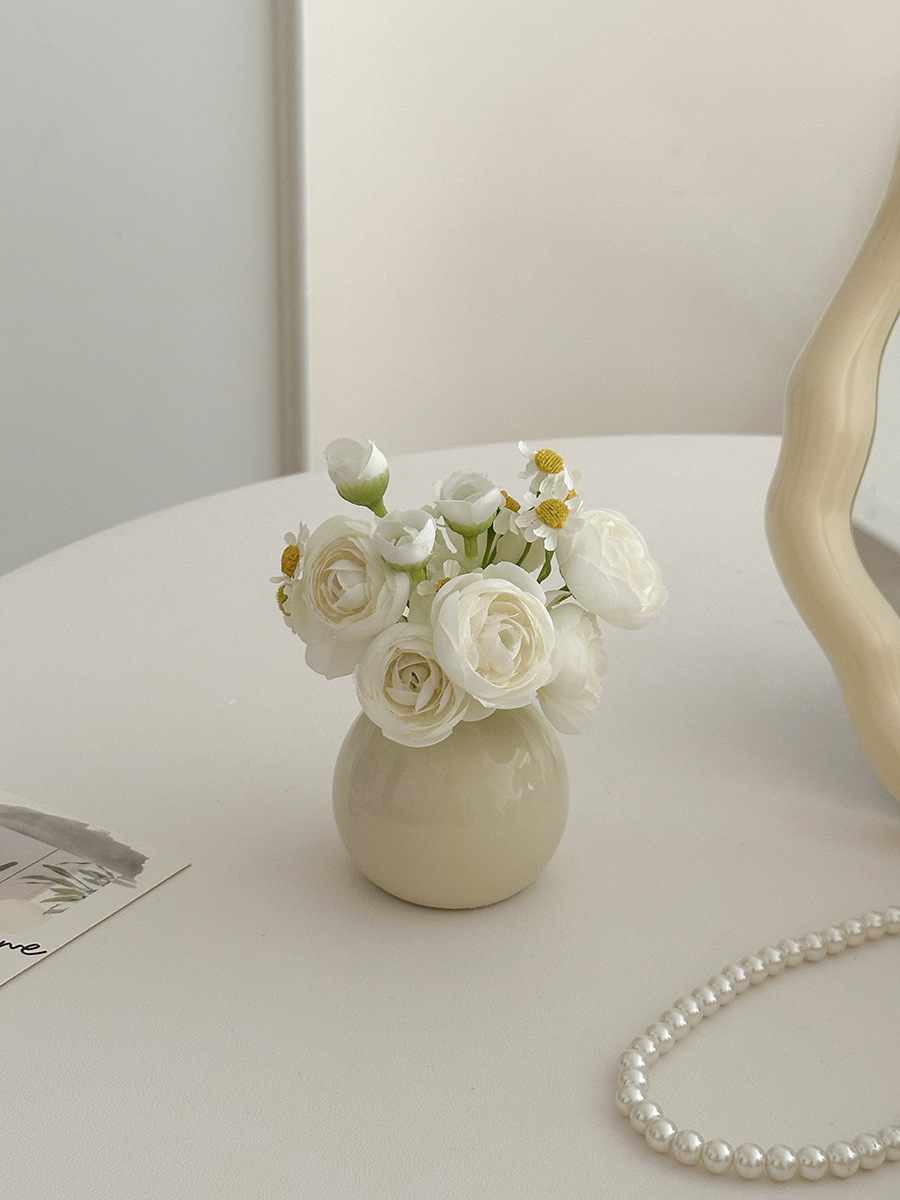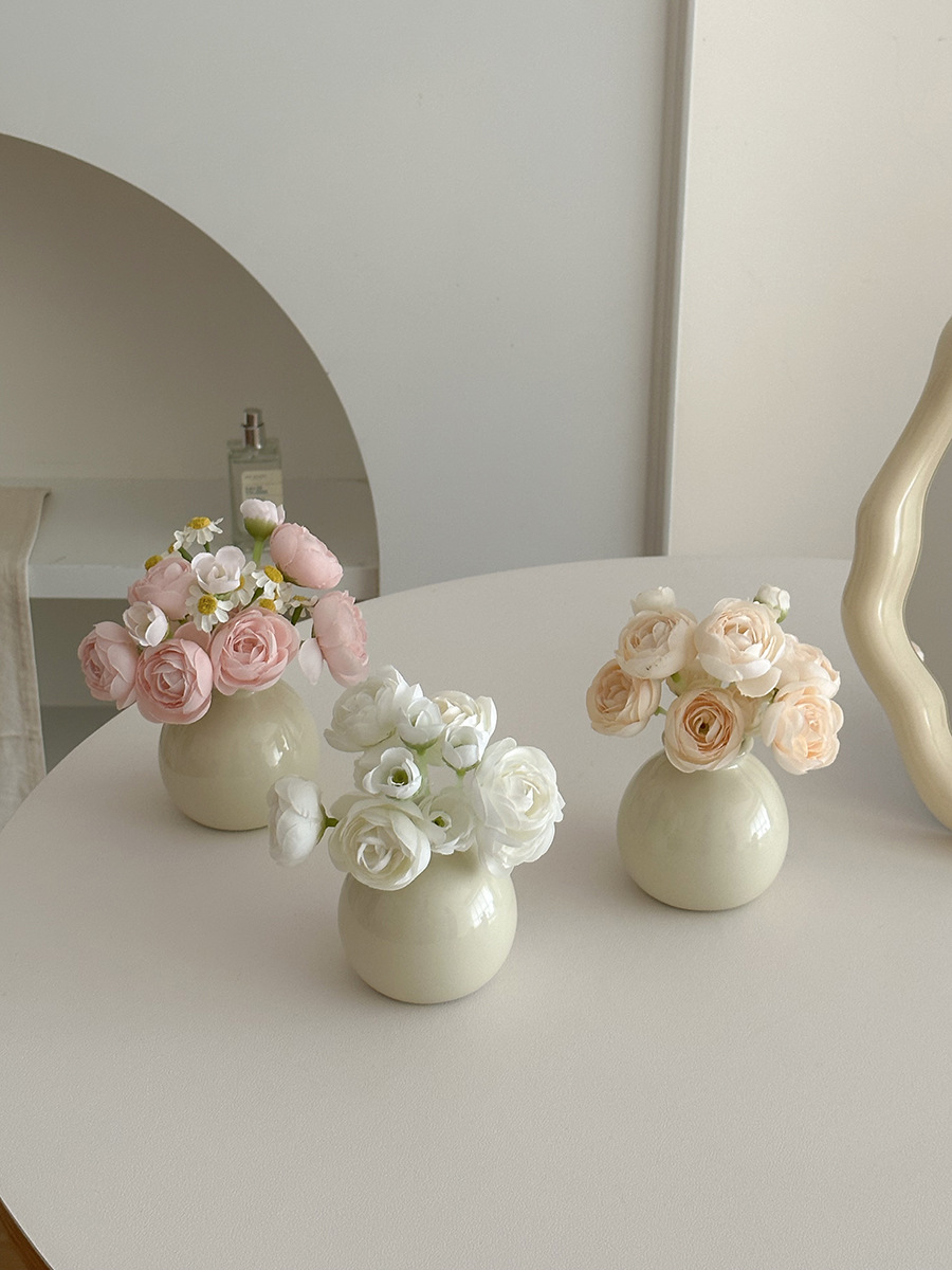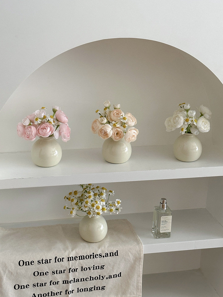 • 유백색 넓은 입 꽃병 + 꽃 3 피스 세트 (조합 1)