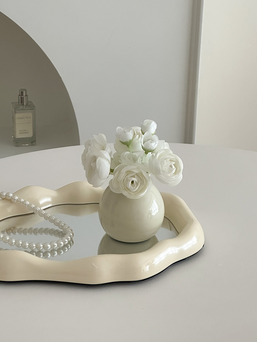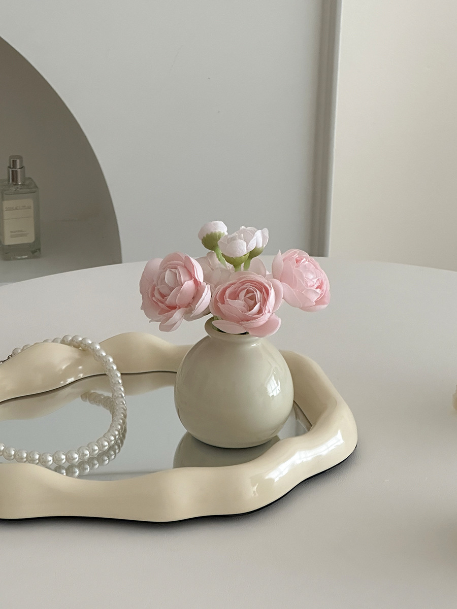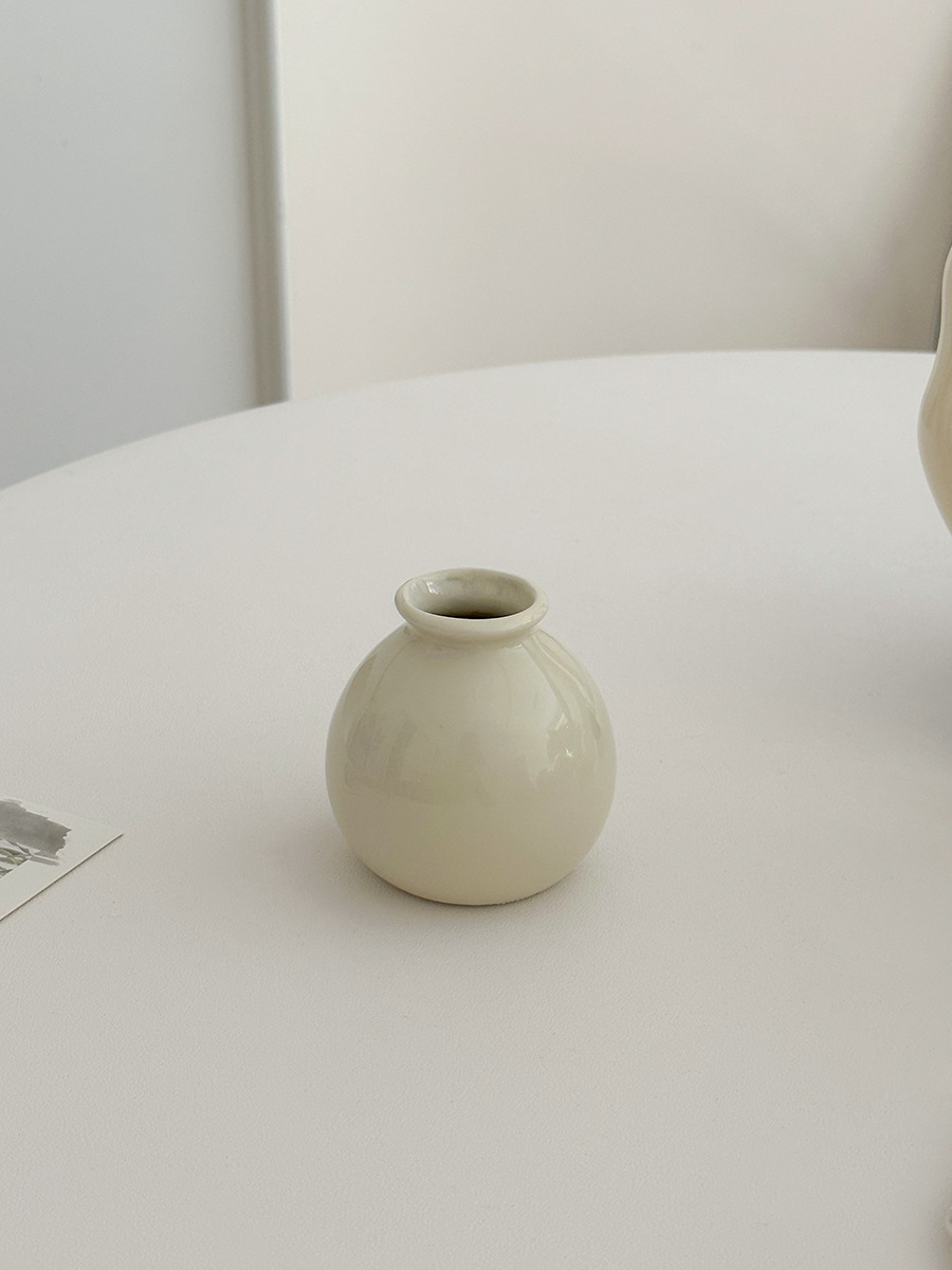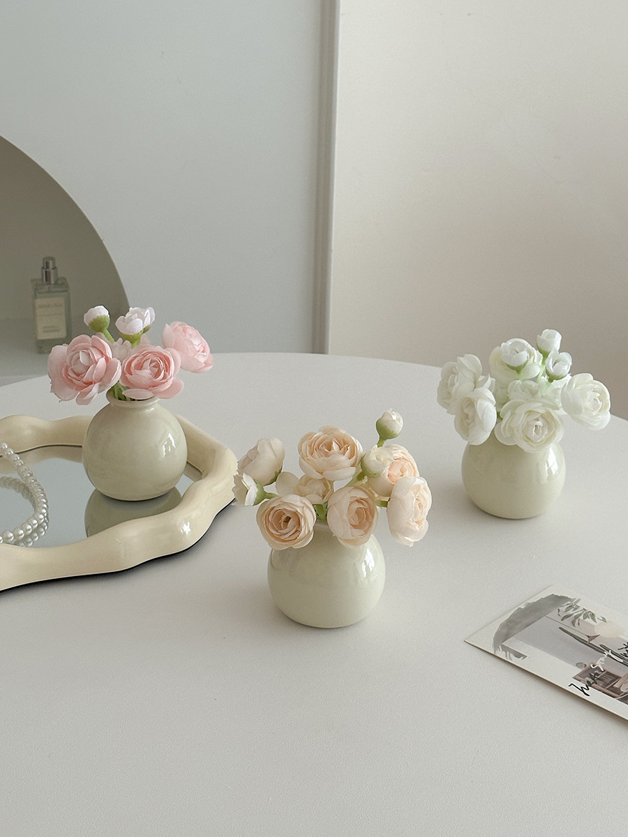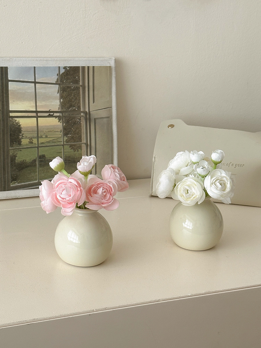 • 유백색 넓은 입 꽃병 + 꽃 3 피스 세트 (조합 1)