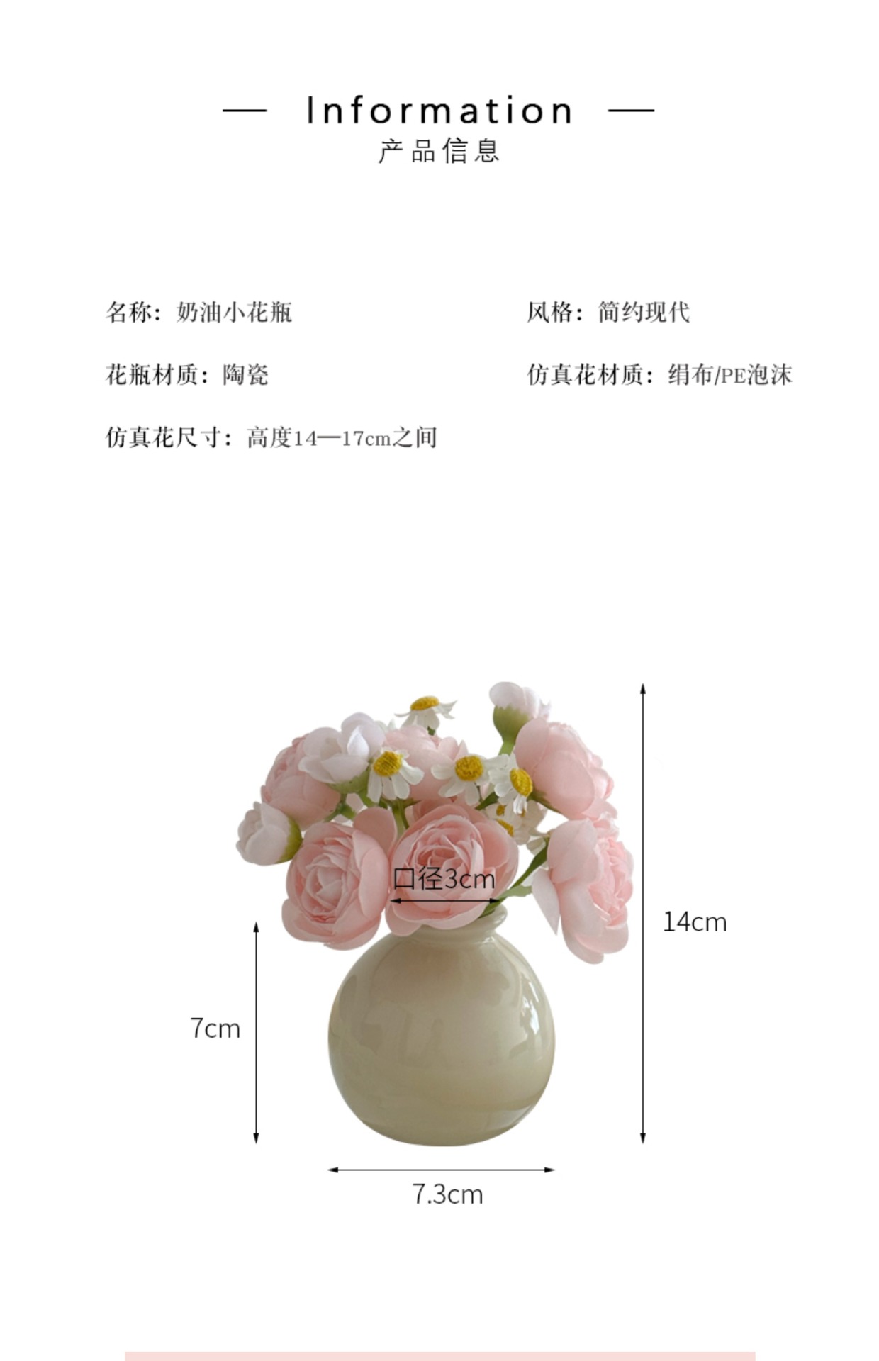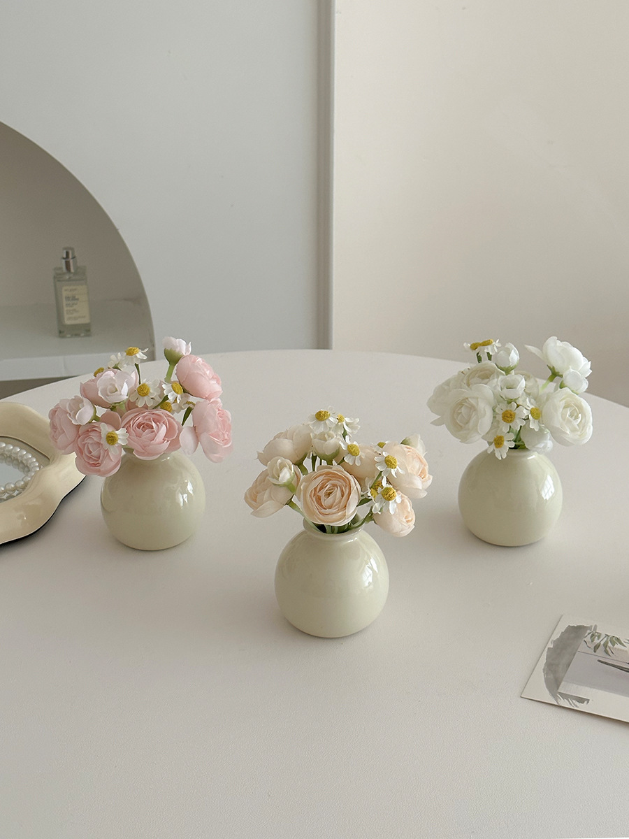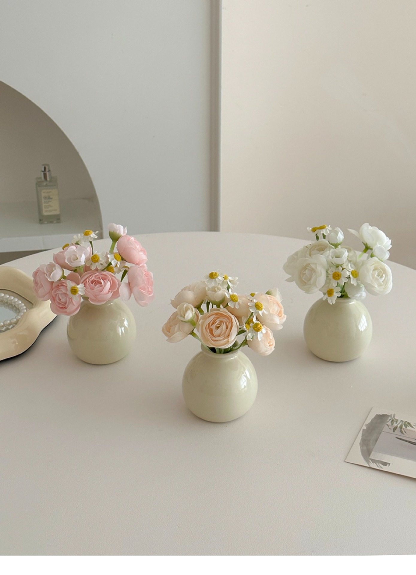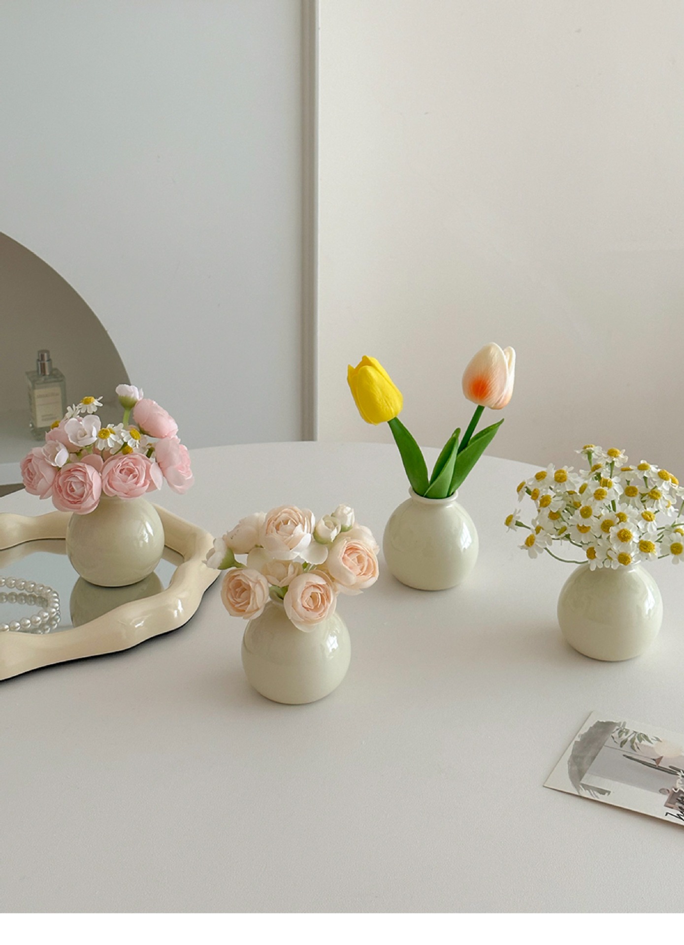 미니 세라믹 작은 꽃병 인공 꽃 세트 스타일 룸 가짜 꽃 장식 작은 데이지 말린 꽃 데스크탑 장식품
